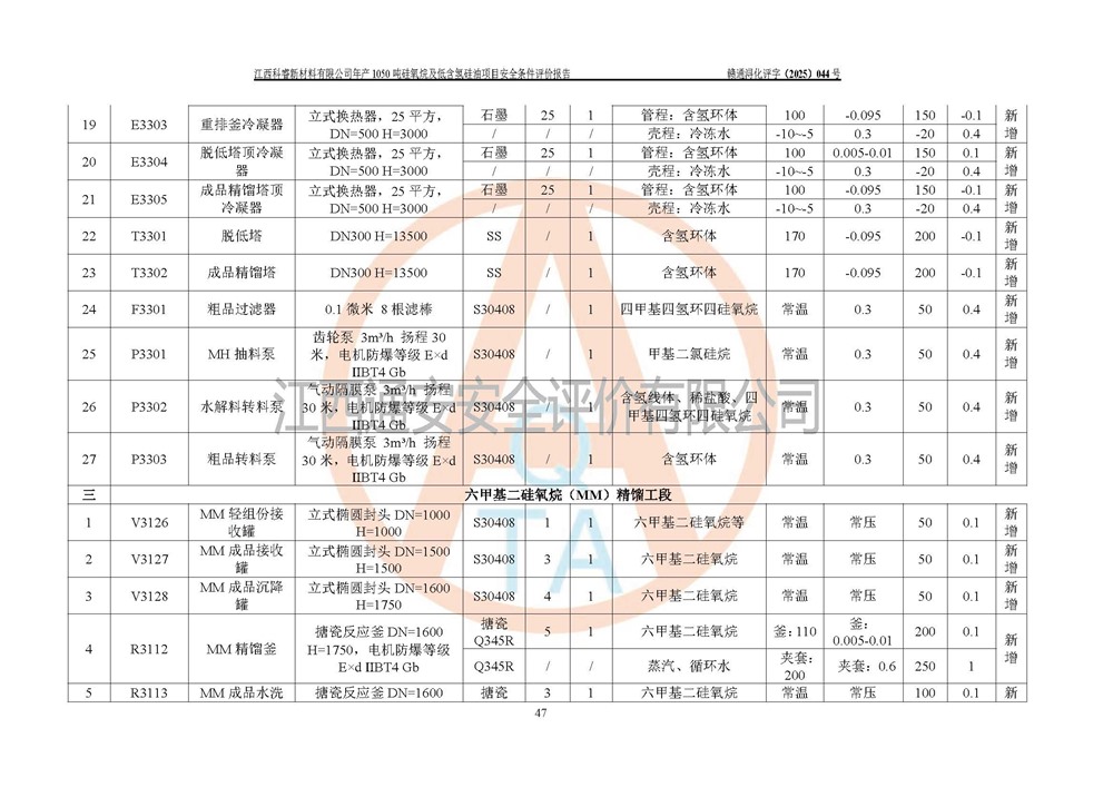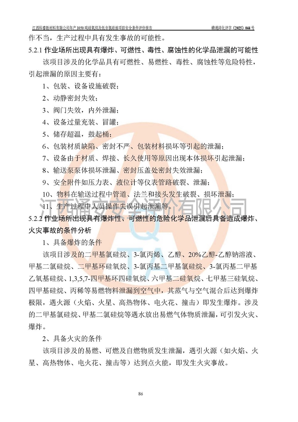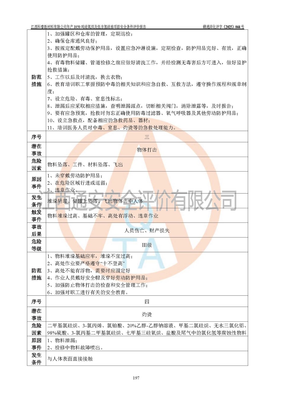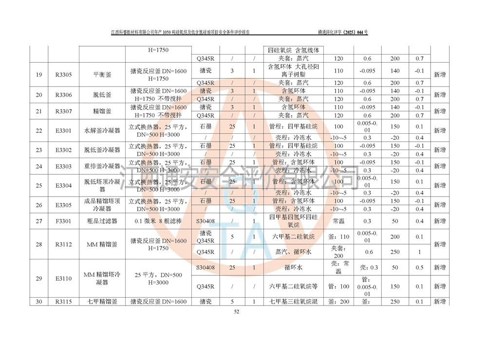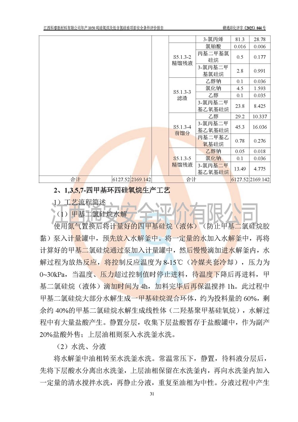 評(píng)價(jià)報(bào)告名稱 | 江西科睿新材料有限公司年產(chǎn)1050噸硅氧烷及低含氫硅油項(xiàng)目安全條件評(píng)價(jià) | |||||