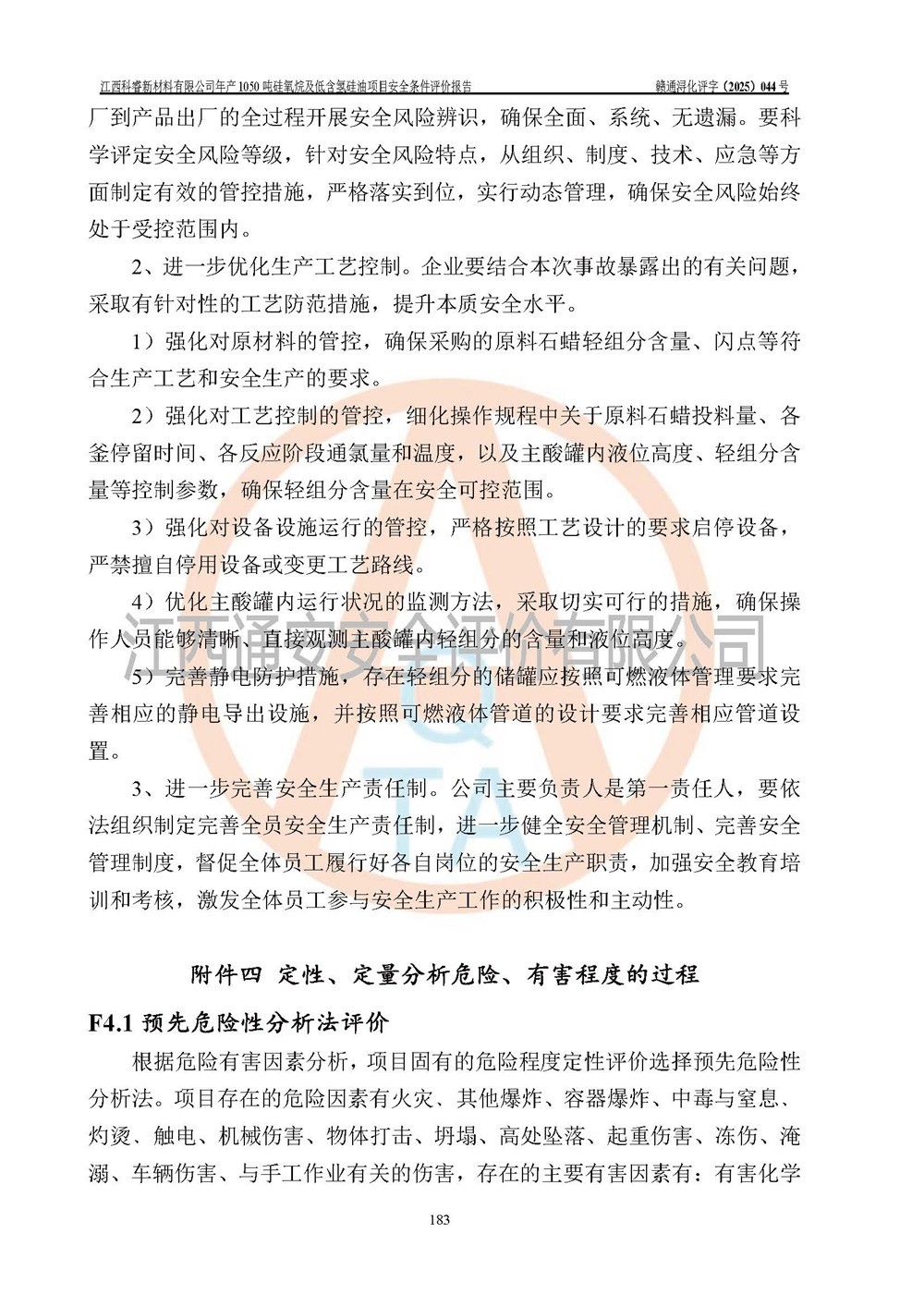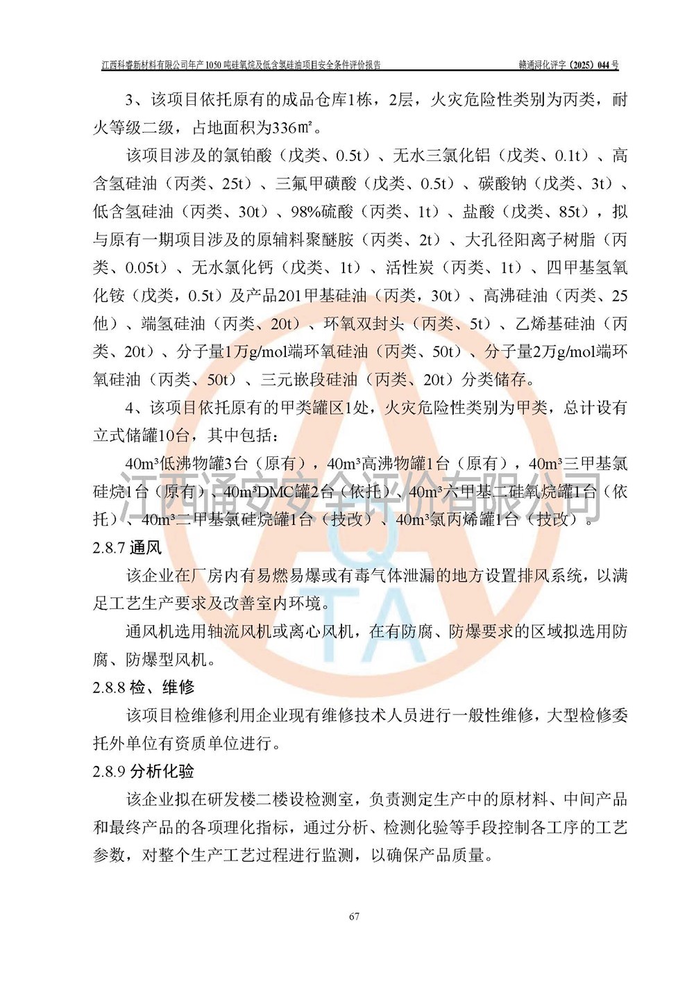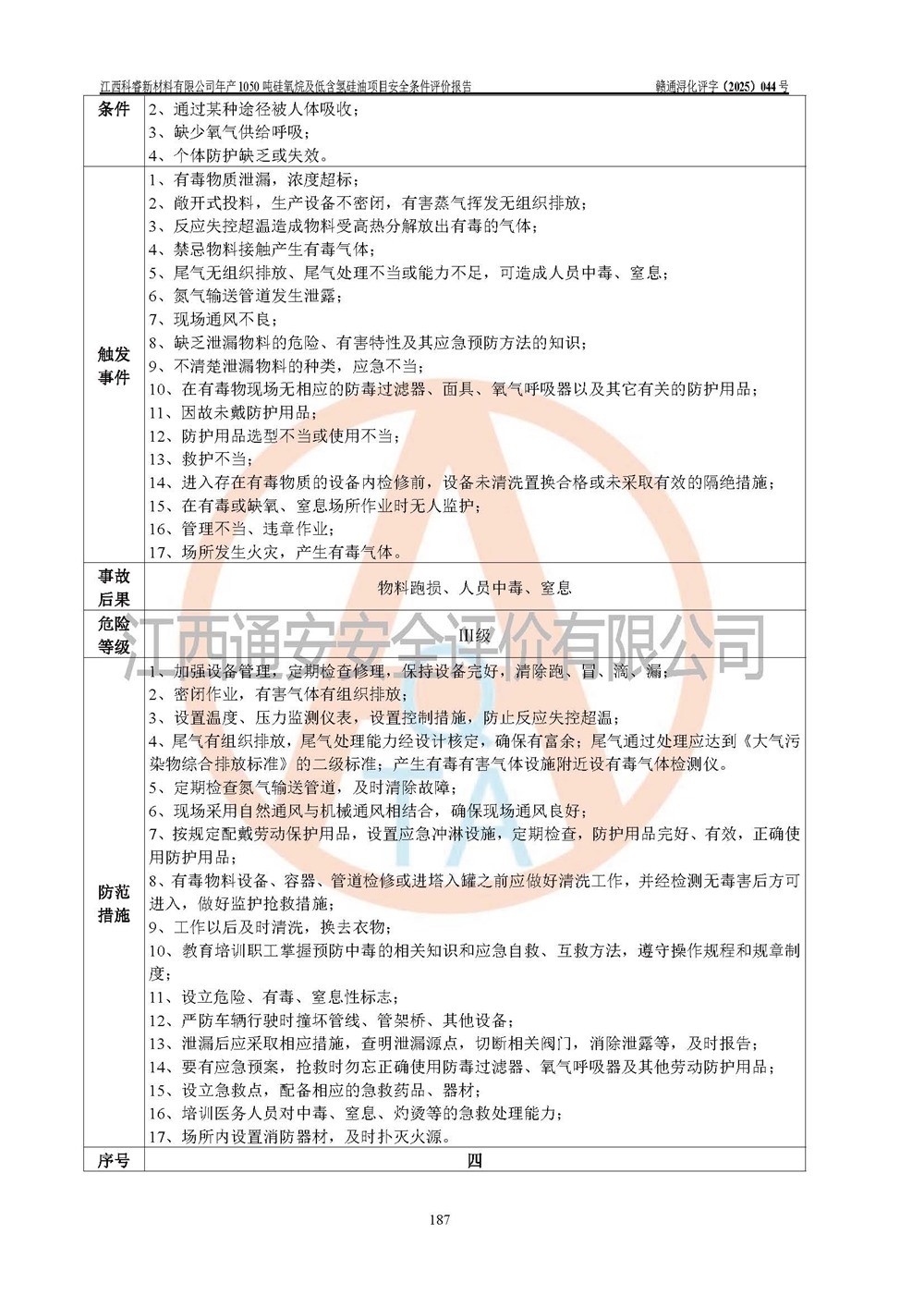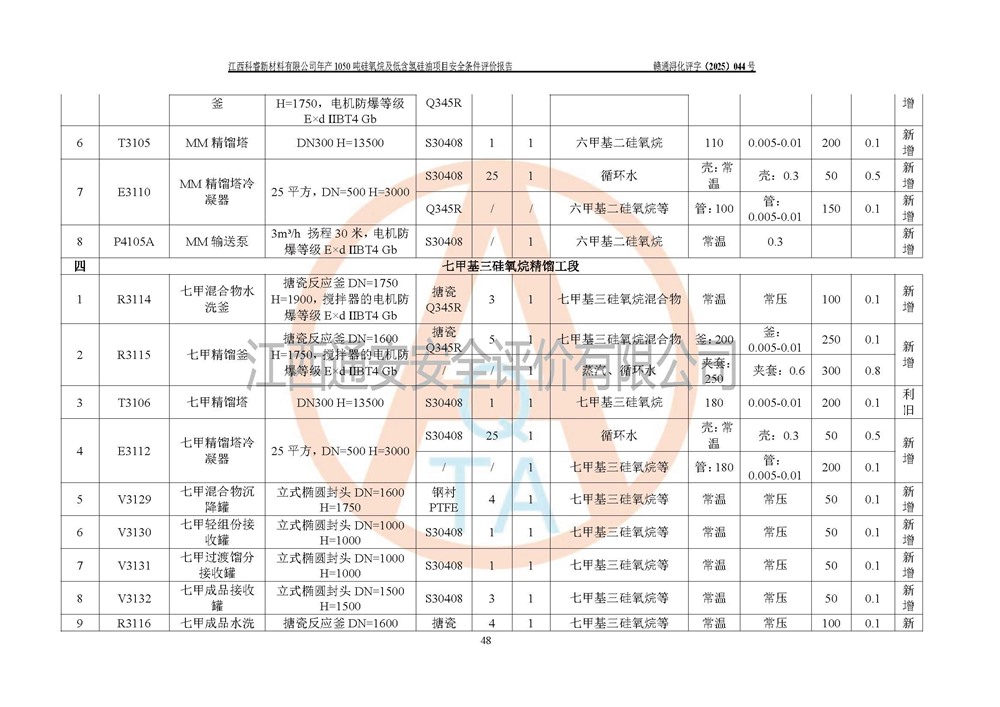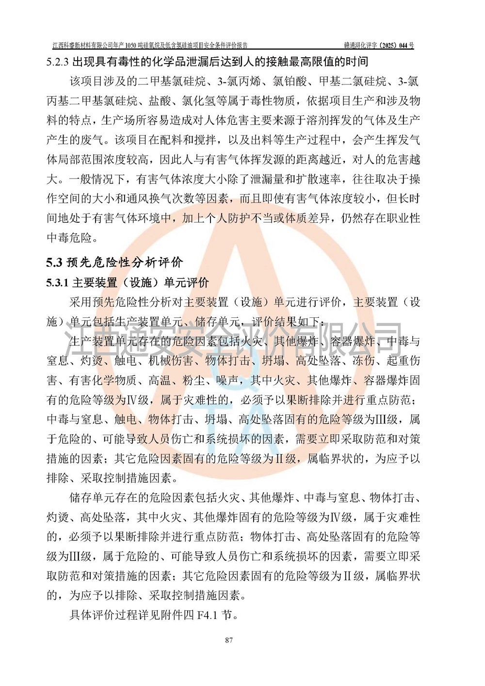 評(píng)價(jià)報(bào)告名稱 | 江西科睿新材料有限公司年產(chǎn)1050噸硅氧烷及低含氫硅油項(xiàng)目安全條件評(píng)價(jià) | |||||