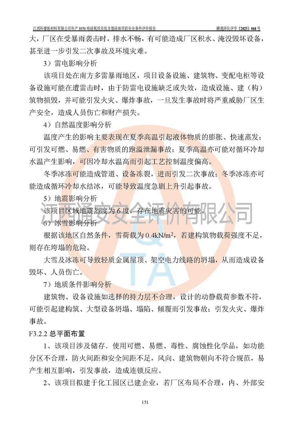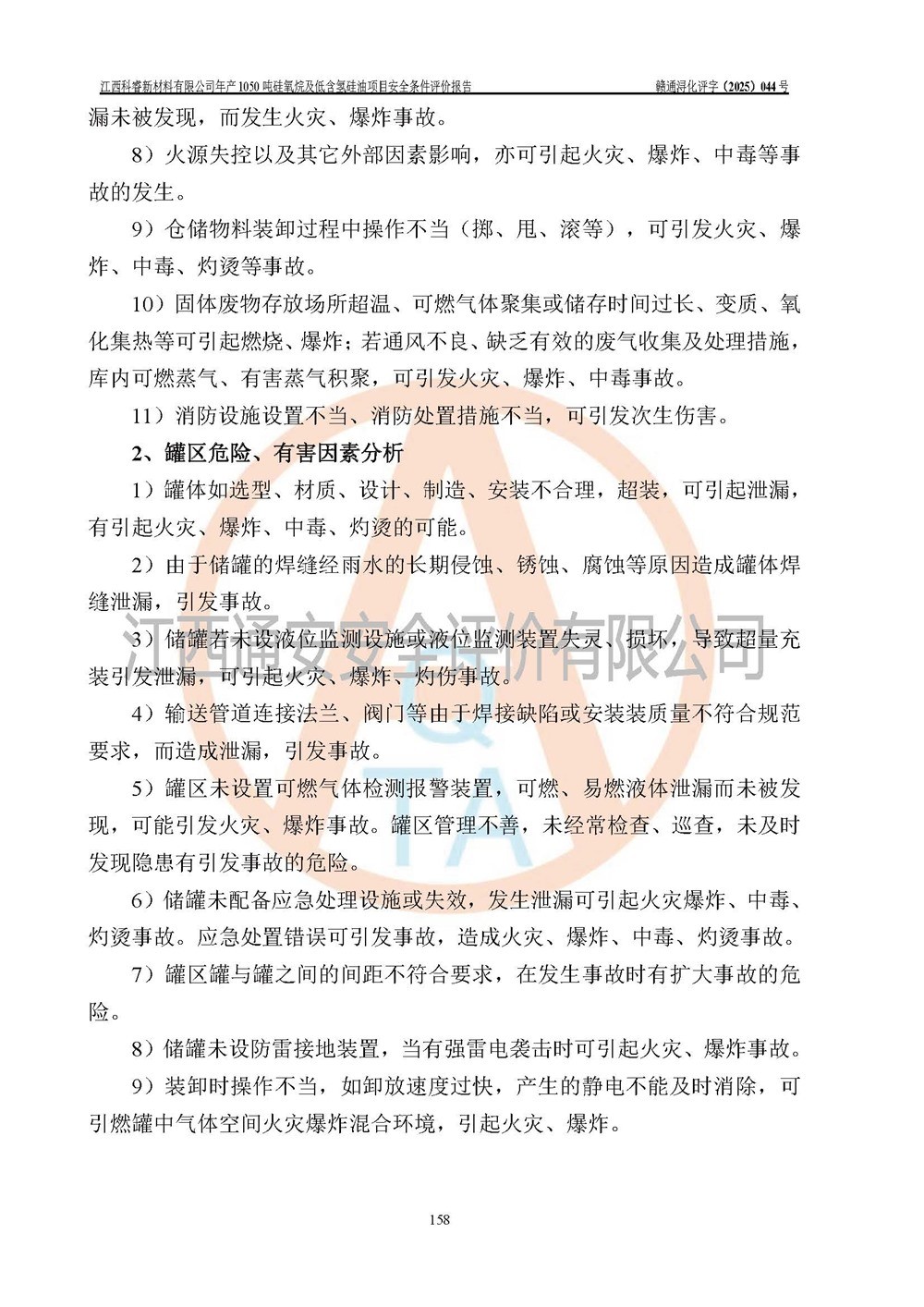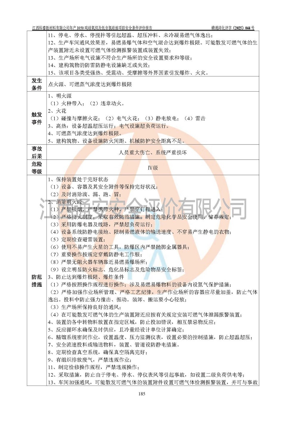 評(píng)價(jià)結(jié)論 | 江西科睿新材料有限公司年產(chǎn)1050噸硅氧烷及低含氫硅油項(xiàng)目的周邊環(huán)境、總體布局、自然環(huán)境能滿足建設(shè)安全條件;項(xiàng)目選擇的工藝過(guò)程及設(shè)備設(shè)施的安全可靠性能達(dá)到**法規(guī)、標(biāo)準(zhǔn)規(guī)定要求;項(xiàng)目存在的危險(xiǎn)有害因素可控,在落實(shí)本評(píng)價(jià)報(bào)告提出的有關(guān)安全對(duì)策措施后,其危險(xiǎn)有害程度能達(dá)到可以接受的程度,項(xiàng)目建設(shè)能夠?qū)崿F(xiàn)安全運(yùn)行的目標(biāo)。 | |||||