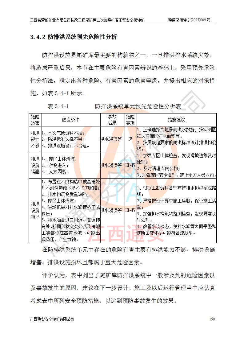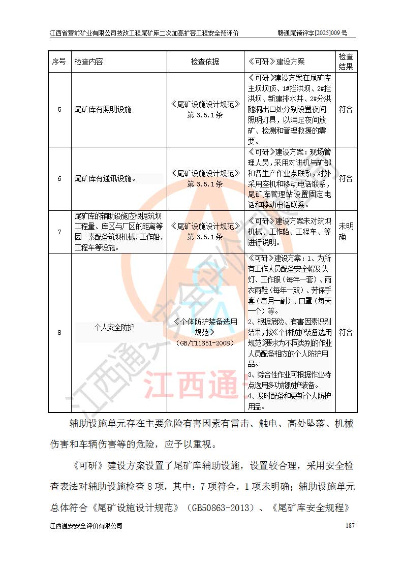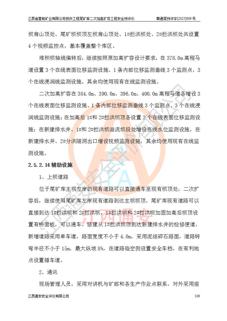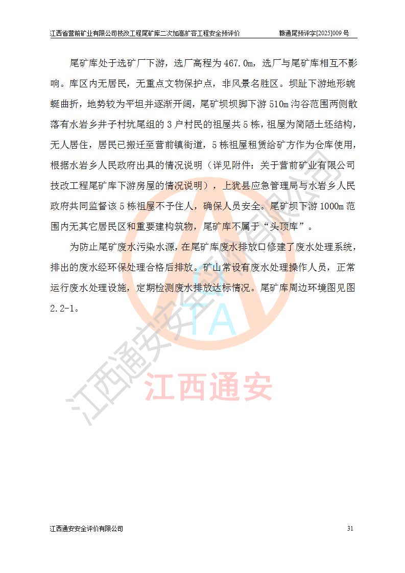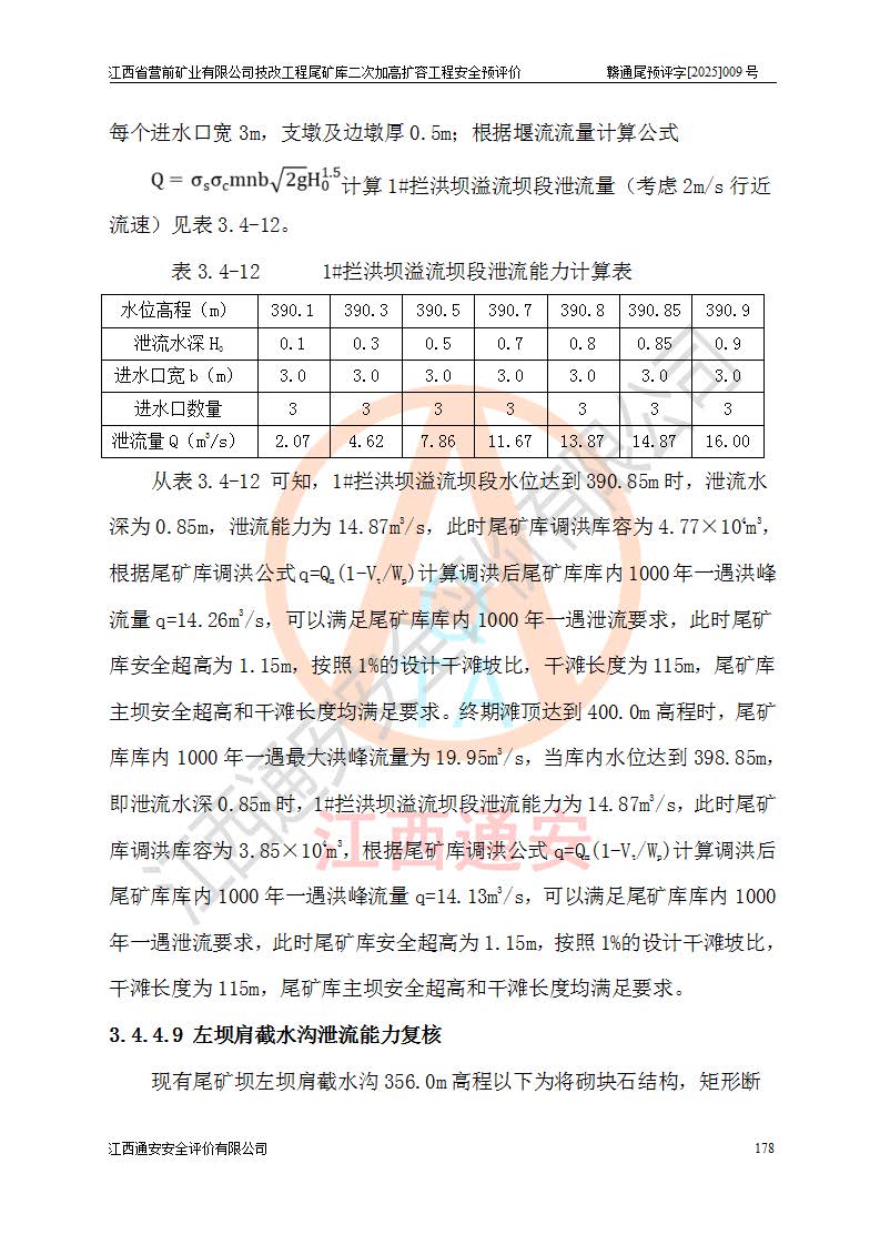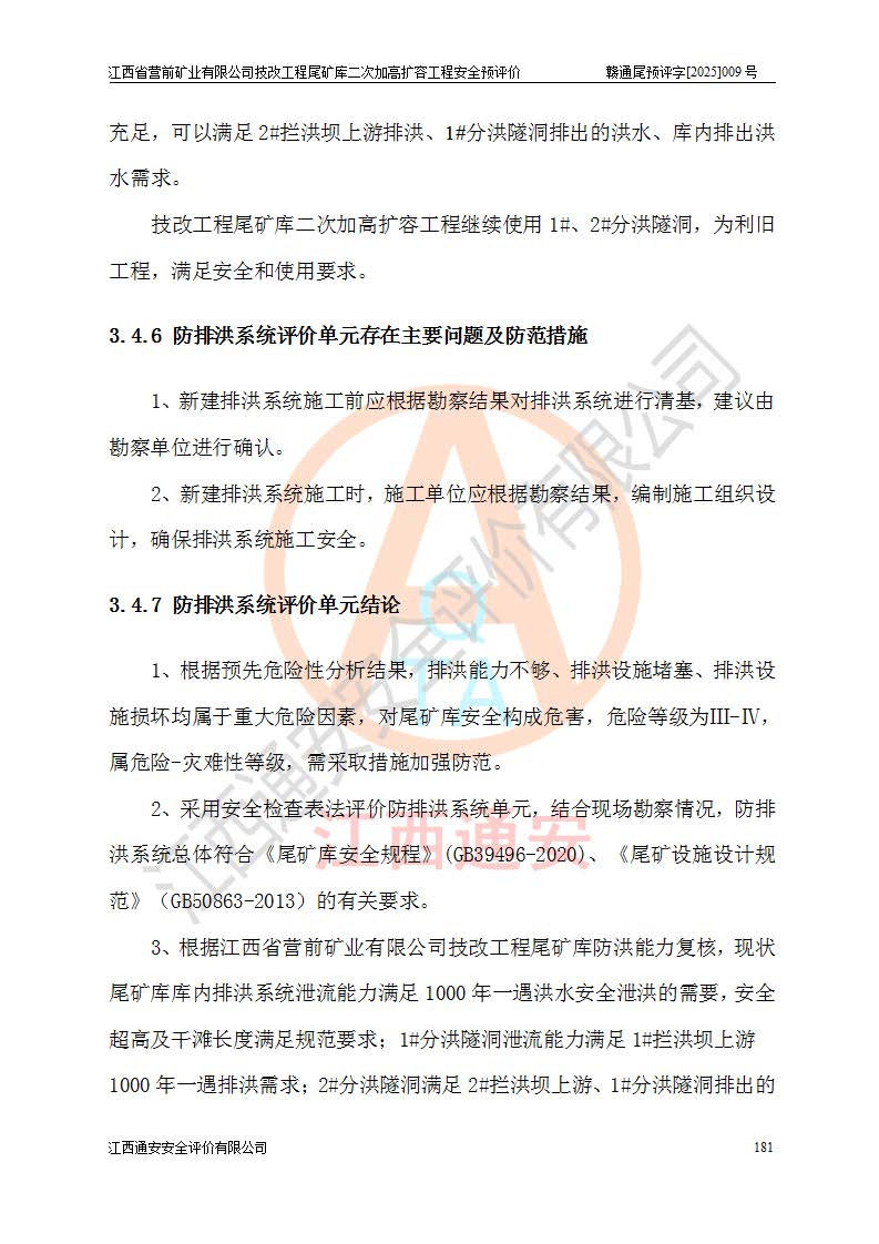 江西省營前礦業(yè)有限公司于2003年12月16日成立,位于贛州市上猶縣營前鎮(zhèn)焦里村境內(nèi),公司注冊資本10000萬元,法定**人陳雅博,礦區(qū)地理坐標(biāo):東經(jīng)114°18′30″~114°19′00″,北緯25°52′35″~25°53′47″。公司經(jīng)營范圍包括:鉛礦、鋅、鎢、銀地下開采、銷售。 江西省營前礦業(yè)有限公司技改工程尾礦庫位于焦里鎢銀鉛鋅礦區(qū),處于上猶縣水巖鄉(xiāng)井子村坑尾自然村境內(nèi),為山谷型尾礦庫。 江西省營前礦業(yè)有限公司技改工程尾礦庫于2013年由福建省冶金工業(yè)設(shè)計(jì)院設(shè)計(jì),2014年8月開始施工建設(shè),2015年4月竣工開始試運(yùn)行,2015年11月完成竣工驗(yàn)收,2016年1月首次取得安全生產(chǎn)許可證,2019年1月完成延期換證,2020年8月委托金建工程設(shè)計(jì)有限公司進(jìn)行尾礦庫加高擴(kuò)容工作,2020年10月21日取得了江西省應(yīng)急管理廳下發(fā)的《關(guān)于江西省營前礦業(yè)有限公司技改工程尾礦庫加高擴(kuò)容工程安全設(shè)施設(shè)計(jì)的審查意見》(贛應(yīng)急非煤項(xiàng)目設(shè)審〔2020〕46號),之后委托駐馬店市黃淮建設(shè)工程有限公司負(fù)責(zé)施工,云南潤滇工程技術(shù)有限公司負(fù)責(zé)監(jiān)理,2021年12月完成加高擴(kuò)容竣工驗(yàn)收工作,經(jīng)過延期,現(xiàn)尾礦庫安全生產(chǎn)許可證編號(贛)FM安許證字[2016]M1692號,**期為2025年01月18日至2028年01月17日。 江西省營前礦業(yè)有限公司技改工程尾礦庫為山谷型尾礦庫,初期壩為透水堆石壩,壩頂高程為330.0m,初期壩高25.0m,后期采用上游式尾礦堆積壩,加高擴(kuò)容后*終壩頂高程為380.0m,堆積壩高50.0m,總壩高為75.0m,總庫容為為503.14×104m3,尾礦庫為三等庫。尾礦庫初期壩以上總匯水面積3.53km2,防洪標(biāo)準(zhǔn)取500年一遇。 目前尾礦庫由初期壩、堆積壩、庫內(nèi)排洪系統(tǒng)(雙格排水斜槽+連接井+排水涵洞+排洪隧洞+排水陡槽+消力池)、1#攔洪壩、1#分洪隧洞、2#攔洪壩、2#分洪隧洞和安全監(jiān)測設(shè)施組成。根據(jù)建設(shè)單位提供的尾礦庫平面布置圖,截至2024年12月,現(xiàn)狀尾礦庫堆積壩頂高程為372.2m,現(xiàn)狀總壩高67.2m,灘頂高程為369.8m,現(xiàn)狀全庫容387.51×104m3,現(xiàn)狀尾礦庫為三等庫,原加高擴(kuò)容設(shè)計(jì)*終堆積壩頂高程為380.0m,現(xiàn)剩余庫容115.63×104m3,剩余**庫容約92.5×104m3,剩余服務(wù)年限約4.5年;礦山現(xiàn)有儲(chǔ)量較大,剩余庫容及服務(wù)年限不滿足礦山后期生產(chǎn)需要。 技改工程尾礦庫尾礦壩下游1**范圍無居民,不存在工礦企業(yè)等建構(gòu)筑物,不屬于“頭頂庫”;尾礦庫不壓礦;距贛江直線距離60**;不涉及保護(hù)區(qū)及生態(tài)紅線;尾礦庫所在溝谷較長,谷底平均縱坡9%,上游周邊山體地形有利于尾礦庫二次加高擴(kuò)容工程的實(shí)施,因此為了增加尾礦庫庫容,延長服務(wù)年限,充分利用尾礦庫所在溝谷地形,江西省營前礦業(yè)有限公司對技改尾礦庫進(jìn)行二次加高擴(kuò)容。 2024年12月,江西省營前礦業(yè)有限公司委托地礦贛西地質(zhì)工程勘察院編制了《江西省營前礦業(yè)有限公司技改工程尾礦庫二次擴(kuò)容工程(水文)地質(zhì)勘察報(bào)告》,2025年4月,江西省營前礦業(yè)有限公司委托金建工程設(shè)計(jì)有限公司編制了《江西省營前礦業(yè)有限公司技改工程尾礦庫二次加高擴(kuò)容工程可行性研究報(bào)告》。 按照非煤礦山建設(shè)項(xiàng)目安全設(shè)施“三同時(shí)”的規(guī)定要求,技改工程尾礦庫為二次加高擴(kuò)容工程,**進(jìn)行安全預(yù)評價(jià);江西省營前礦業(yè)有限公司委托我公司承擔(dān)技改工程尾礦庫二次加高擴(kuò)容工程建設(shè)項(xiàng)目的安全預(yù)評價(jià)工作。 |