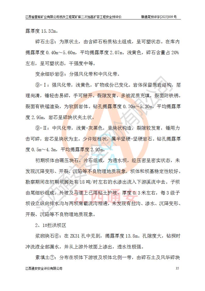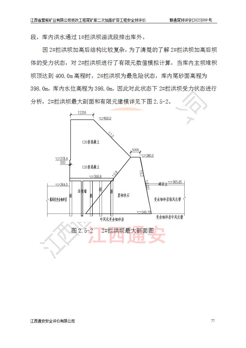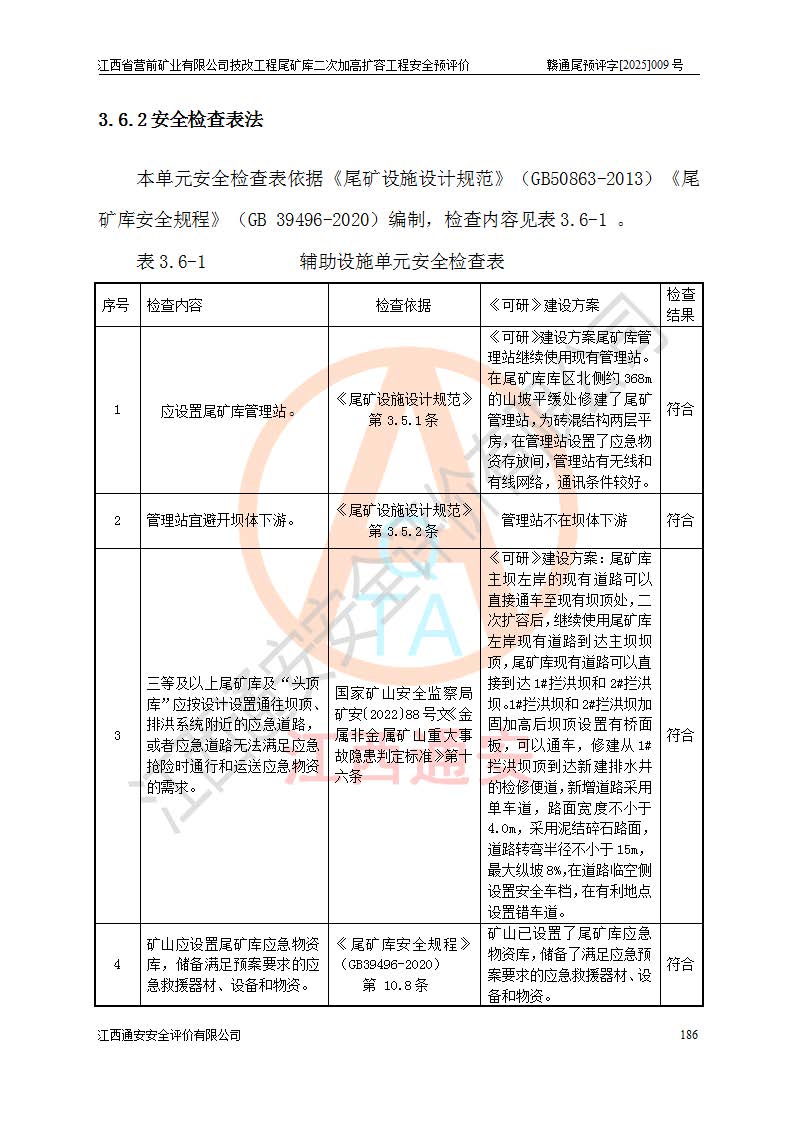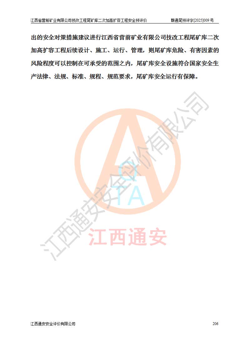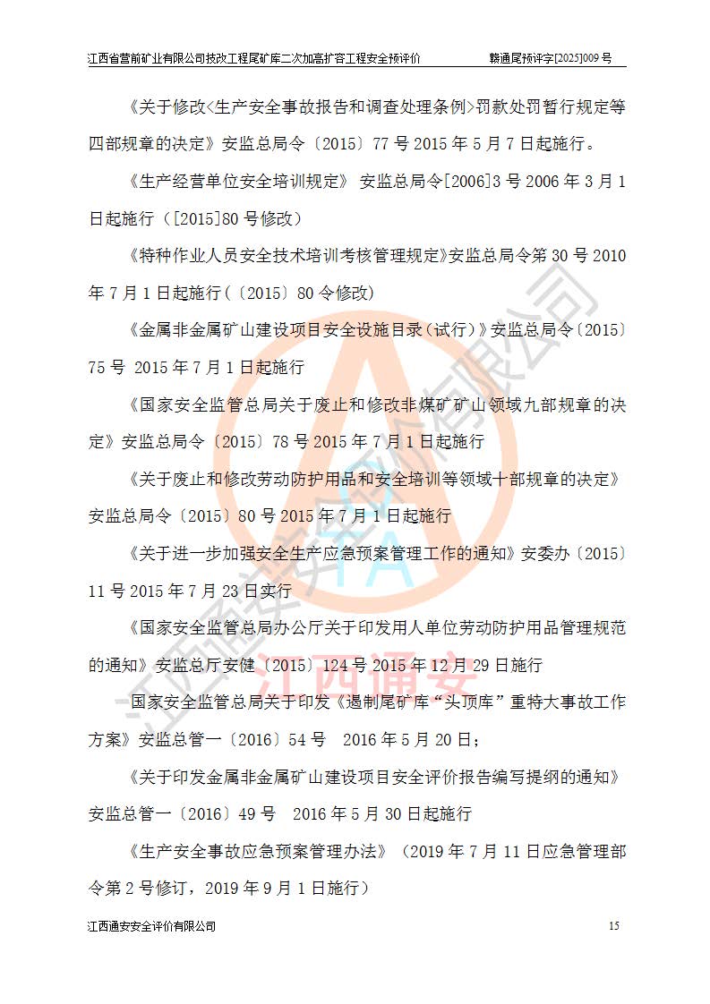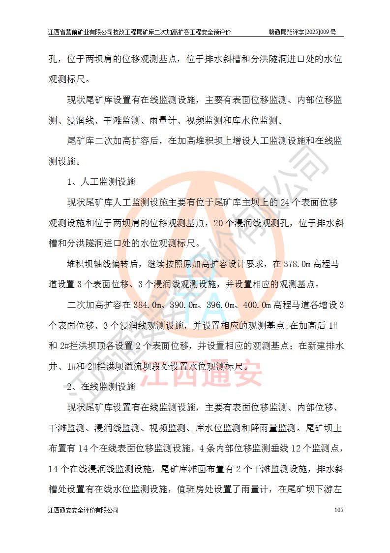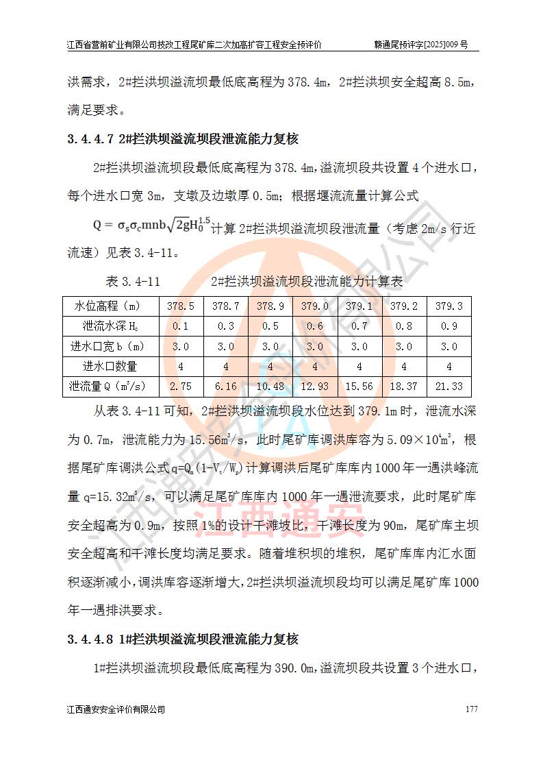 江西省營前礦業(yè)有限公司于2003年12月16日成立,位于贛州市上猶縣營前鎮(zhèn)焦里村境內(nèi),公司注冊資本10000萬元,法定**人陳雅博,礦區(qū)地理坐標(biāo):東經(jīng)114°18′30″~114°19′00″,北緯25°52′35″~25°53′47″。公司經(jīng)營范圍包括:鉛礦、鋅、鎢、銀地下開采、銷售。 江西省營前礦業(yè)有限公司技改工程尾礦庫位于焦里鎢銀鉛鋅礦區(qū),處于上猶縣水巖鄉(xiāng)井子村坑尾自然村境內(nèi),為山谷型尾礦庫。 江西省營前礦業(yè)有限公司技改工程尾礦庫于2013年由福建省冶金工業(yè)設(shè)計(jì)院設(shè)計(jì),2014年8月開始施工建設(shè),2015年4月竣工開始試運(yùn)行,2015年11月完成竣工驗(yàn)收,2016年1月首次取得安全生產(chǎn)許可證,2019年1月完成延期換證,2020年8月委托金建工程設(shè)計(jì)有限公司進(jìn)行尾礦庫加高擴(kuò)容工作,2020年10月21日取得了江西省應(yīng)急管理廳下發(fā)的《關(guān)于江西省營前礦業(yè)有限公司技改工程尾礦庫加高擴(kuò)容工程安全設(shè)施設(shè)計(jì)的審查意見》(贛應(yīng)急非煤項(xiàng)目設(shè)審〔2020〕46號),之后委托駐馬店市黃淮建設(shè)工程有限公司負(fù)責(zé)施工,云南潤滇工程技術(shù)有限公司負(fù)責(zé)監(jiān)理,2021年12月完成加高擴(kuò)容竣工驗(yàn)收工作,經(jīng)過延期,現(xiàn)尾礦庫安全生產(chǎn)許可證編號(贛)FM安許證字[2016]M1692號,**期為2025年01月18日至2028年01月17日。 江西省營前礦業(yè)有限公司技改工程尾礦庫為山谷型尾礦庫,初期壩為透水堆石壩,壩頂高程為330.0m,初期壩高25.0m,后期采用上游式尾礦堆積壩,加高擴(kuò)容后*終壩頂高程為380.0m,堆積壩高50.0m,總壩高為75.0m,總庫容為為503.14×104m3,尾礦庫為三等庫。尾礦庫初期壩以上總匯水面積3.53km2,防洪標(biāo)準(zhǔn)取500年一遇。 目前尾礦庫由初期壩、堆積壩、庫內(nèi)排洪系統(tǒng)(雙格排水斜槽+連接井+排水涵洞+排洪隧洞+排水陡槽+消力池)、1#攔洪壩、1#分洪隧洞、2#攔洪壩、2#分洪隧洞和安全監(jiān)測設(shè)施組成。根據(jù)建設(shè)單位提供的尾礦庫平面布置圖,截至2024年12月,現(xiàn)狀尾礦庫堆積壩頂高程為372.2m,現(xiàn)狀總壩高67.2m,灘頂高程為369.8m,現(xiàn)狀全庫容387.51×104m3,現(xiàn)狀尾礦庫為三等庫,原加高擴(kuò)容設(shè)計(jì)*終堆積壩頂高程為380.0m,現(xiàn)剩余庫容115.63×104m3,剩余**庫容約92.5×104m3,剩余服務(wù)年限約4.5年;礦山現(xiàn)有儲(chǔ)量較大,剩余庫容及服務(wù)年限不滿足礦山后期生產(chǎn)需要。 技改工程尾礦庫尾礦壩下游1**范圍無居民,不存在工礦企業(yè)等建構(gòu)筑物,不屬于“頭頂庫”;尾礦庫不壓礦;距贛江直線距離60**;不涉及保護(hù)區(qū)及生態(tài)紅線;尾礦庫所在溝谷較長,谷底平均縱坡9%,上游周邊山體地形有利于尾礦庫二次加高擴(kuò)容工程的實(shí)施,因此為了增加尾礦庫庫容,延長服務(wù)年限,充分利用尾礦庫所在溝谷地形,江西省營前礦業(yè)有限公司對技改尾礦庫進(jìn)行二次加高擴(kuò)容。 2024年12月,江西省營前礦業(yè)有限公司委托地礦贛西地質(zhì)工程勘察院編制了《江西省營前礦業(yè)有限公司技改工程尾礦庫二次擴(kuò)容工程(水文)地質(zhì)勘察報(bào)告》,2025年4月,江西省營前礦業(yè)有限公司委托金建工程設(shè)計(jì)有限公司編制了《江西省營前礦業(yè)有限公司技改工程尾礦庫二次加高擴(kuò)容工程可行性研究報(bào)告》。 按照非煤礦山建設(shè)項(xiàng)目安全設(shè)施“三同時(shí)”的規(guī)定要求,技改工程尾礦庫為二次加高擴(kuò)容工程,**進(jìn)行安全預(yù)評價(jià);江西省營前礦業(yè)有限公司委托我公司承擔(dān)技改工程尾礦庫二次加高擴(kuò)容工程建設(shè)項(xiàng)目的安全預(yù)評價(jià)工作。 |