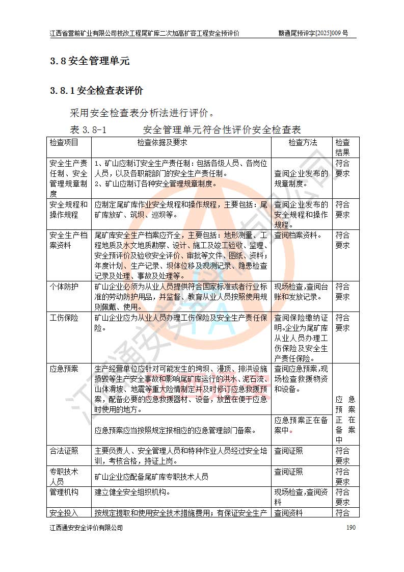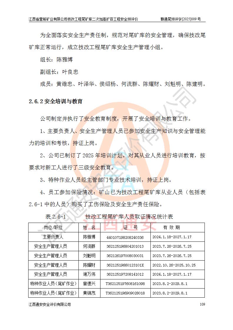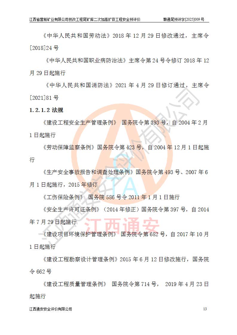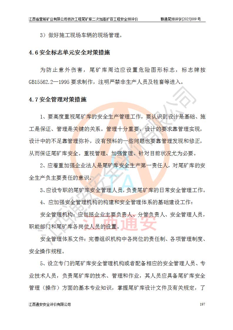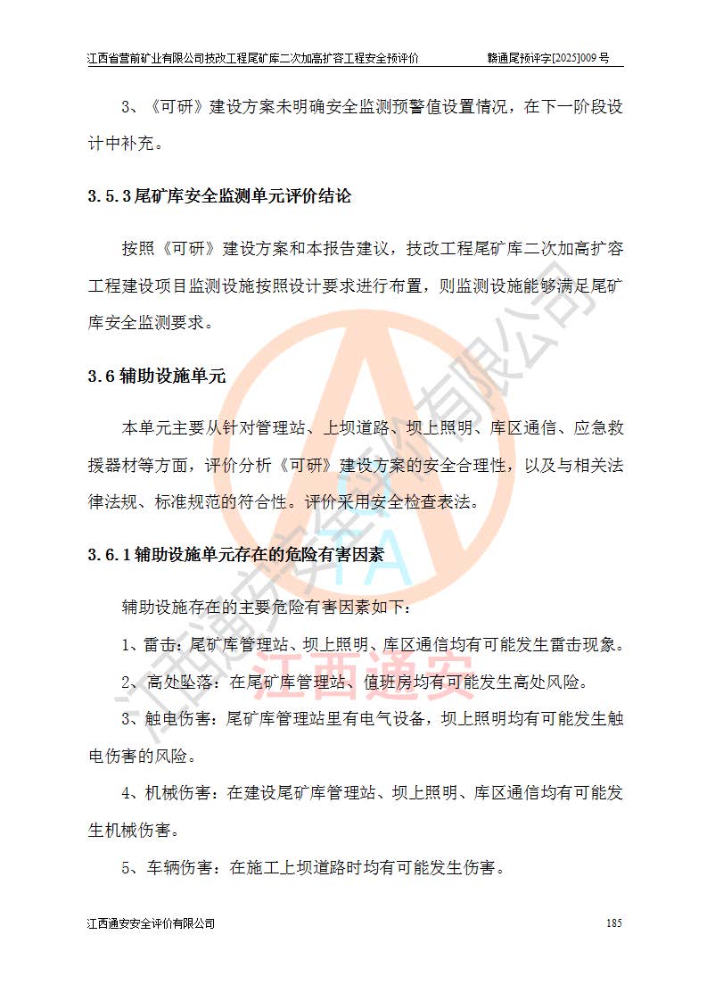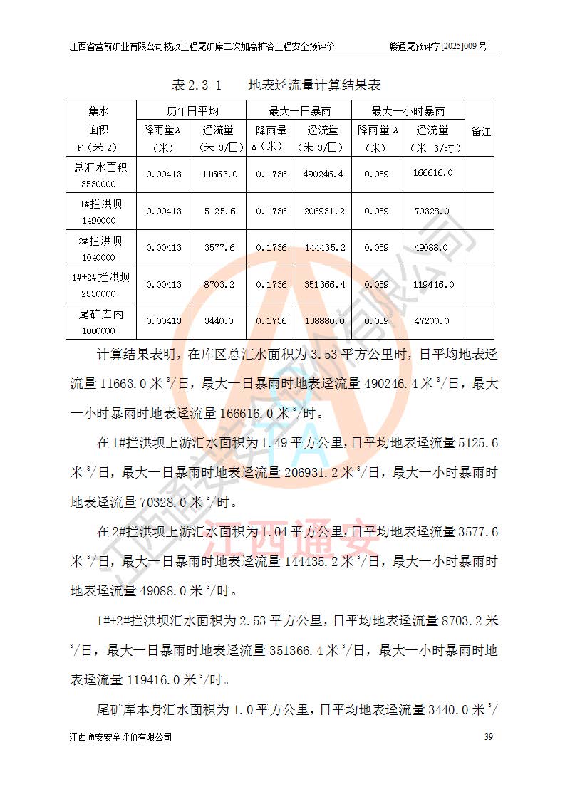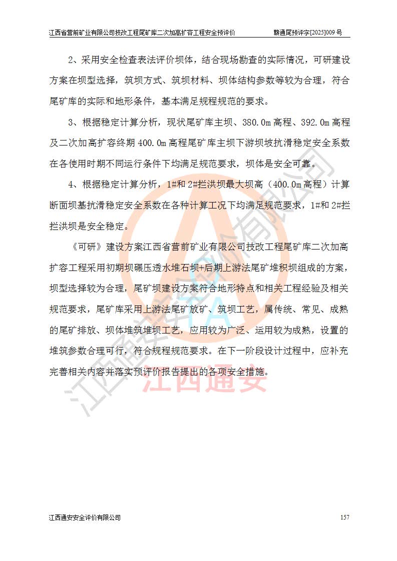江西省營前礦業(yè)有限公司于2003年12月16日成立,位于贛州市上猶縣營前鎮(zhèn)焦里村境內(nèi),公司注冊資本10000萬元,法定**人陳雅博,礦區(qū)地理坐標(biāo):東經(jīng)114°18′30″~114°19′00″,北緯25°52′35″~25°53′47″。公司經(jīng)營范圍包括:鉛礦、鋅、鎢、銀地下開采、銷售。 江西省營前礦業(yè)有限公司技改工程尾礦庫位于焦里鎢銀鉛鋅礦區(qū),處于上猶縣水巖鄉(xiāng)井子村坑尾自然村境內(nèi),為山谷型尾礦庫。 江西省營前礦業(yè)有限公司技改工程尾礦庫于2013年由福建省冶金工業(yè)設(shè)計(jì)院設(shè)計(jì),2014年8月開始施工建設(shè),2015年4月竣工開始試運(yùn)行,2015年11月完成竣工驗(yàn)收,2016年1月首次取得安全生產(chǎn)許可證,2019年1月完成延期換證,2020年8月委托金建工程設(shè)計(jì)有限公司進(jìn)行尾礦庫加高擴(kuò)容工作,2020年10月21日取得了江西省應(yīng)急管理廳下發(fā)的《關(guān)于江西省營前礦業(yè)有限公司技改工程尾礦庫加高擴(kuò)容工程安全設(shè)施設(shè)計(jì)的審查意見》(贛應(yīng)急非煤項(xiàng)目設(shè)審〔2020〕46號),之后委托駐馬店市黃淮建設(shè)工程有限公司負(fù)責(zé)施工,云南潤滇工程技術(shù)有限公司負(fù)責(zé)監(jiān)理,2021年12月完成加高擴(kuò)容竣工驗(yàn)收工作,經(jīng)過延期,現(xiàn)尾礦庫安全生產(chǎn)許可證編號(贛)FM安許證字[2016]M1692號,**期為2025年01月18日至2028年01月17日。 江西省營前礦業(yè)有限公司技改工程尾礦庫為山谷型尾礦庫,初期壩為透水堆石壩,壩頂高程為330.0m,初期壩高25.0m,后期采用上游式尾礦堆積壩,加高擴(kuò)容后*終壩頂高程為380.0m,堆積壩高50.0m,總壩高為75.0m,總庫容為為503.14×104m3,尾礦庫為三等庫。尾礦庫初期壩以上總匯水面積3.53km2,防洪標(biāo)準(zhǔn)取500年一遇。 目前尾礦庫由初期壩、堆積壩、庫內(nèi)排洪系統(tǒng)(雙格排水斜槽+連接井+排水涵洞+排洪隧洞+排水陡槽+消力池)、1#攔洪壩、1#分洪隧洞、2#攔洪壩、2#分洪隧洞和安全監(jiān)測設(shè)施組成。根據(jù)建設(shè)單位提供的尾礦庫平面布置圖,截至2024年12月,現(xiàn)狀尾礦庫堆積壩頂高程為372.2m,現(xiàn)狀總壩高67.2m,灘頂高程為369.8m,現(xiàn)狀全庫容387.51×104m3,現(xiàn)狀尾礦庫為三等庫,原加高擴(kuò)容設(shè)計(jì)*終堆積壩頂高程為380.0m,現(xiàn)剩余庫容115.63×104m3,剩余**庫容約92.5×104m3,剩余服務(wù)年限約4.5年;礦山現(xiàn)有儲(chǔ)量較大,剩余庫容及服務(wù)年限不滿足礦山后期生產(chǎn)需要。 技改工程尾礦庫尾礦壩下游1**范圍無居民,不存在工礦企業(yè)等建構(gòu)筑物,不屬于“頭頂庫”;尾礦庫不壓礦;距贛江直線距離60**;不涉及保護(hù)區(qū)及生態(tài)紅線;尾礦庫所在溝谷較長,谷底平均縱坡9%,上游周邊山體地形有利于尾礦庫二次加高擴(kuò)容工程的實(shí)施,因此為了增加尾礦庫庫容,延長服務(wù)年限,充分利用尾礦庫所在溝谷地形,江西省營前礦業(yè)有限公司對技改尾礦庫進(jìn)行二次加高擴(kuò)容。 2024年12月,江西省營前礦業(yè)有限公司委托地礦贛西地質(zhì)工程勘察院編制了《江西省營前礦業(yè)有限公司技改工程尾礦庫二次擴(kuò)容工程(水文)地質(zhì)勘察報(bào)告》,2025年4月,江西省營前礦業(yè)有限公司委托金建工程設(shè)計(jì)有限公司編制了《江西省營前礦業(yè)有限公司技改工程尾礦庫二次加高擴(kuò)容工程可行性研究報(bào)告》。 按照非煤礦山建設(shè)項(xiàng)目安全設(shè)施“三同時(shí)”的規(guī)定要求,技改工程尾礦庫為二次加高擴(kuò)容工程,**進(jìn)行安全預(yù)評價(jià);江西省營前礦業(yè)有限公司委托我公司承擔(dān)技改工程尾礦庫二次加高擴(kuò)容工程建設(shè)項(xiàng)目的安全預(yù)評價(jià)工作。 |
