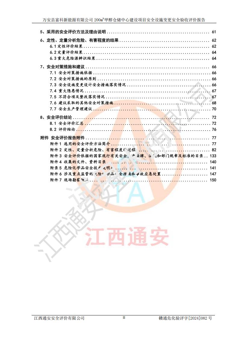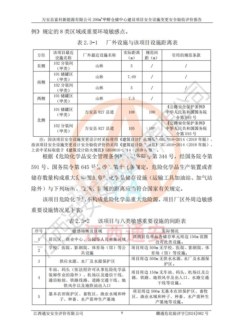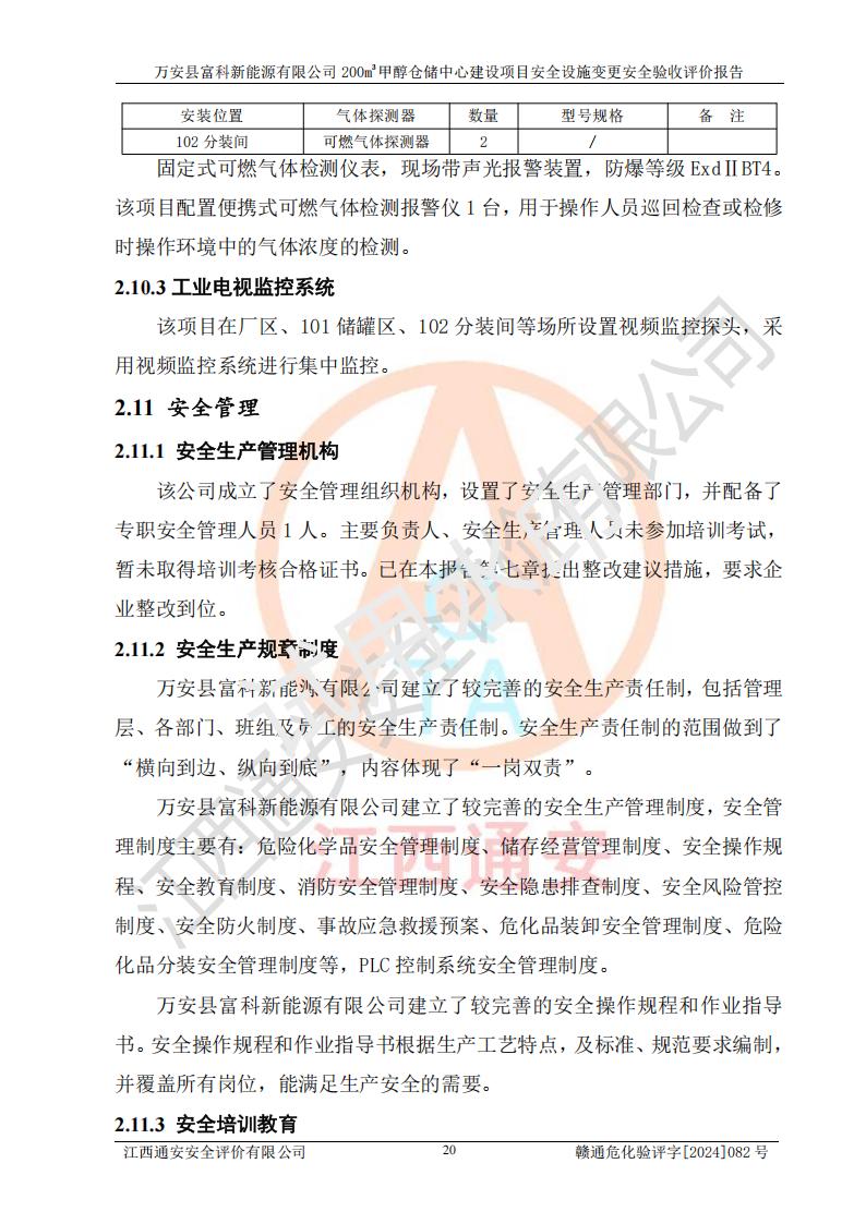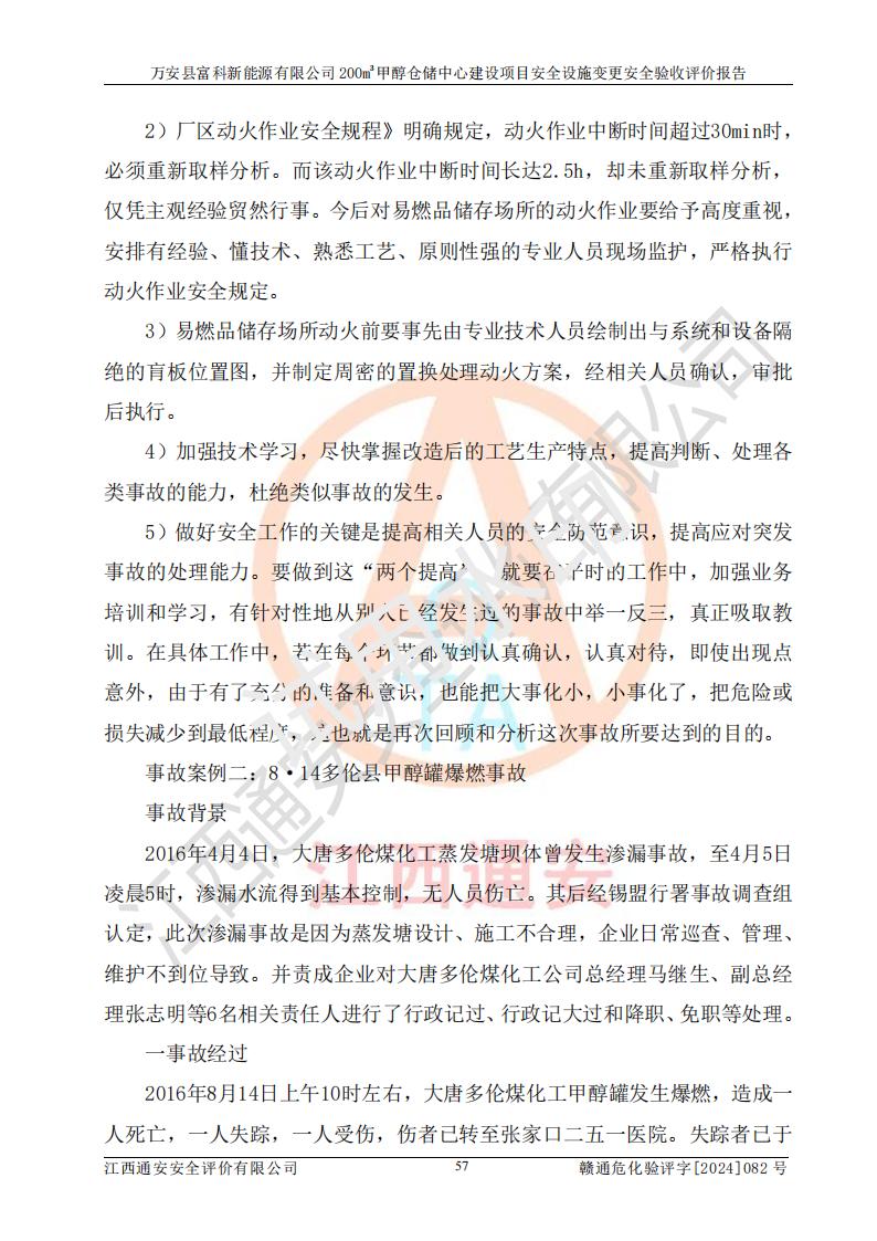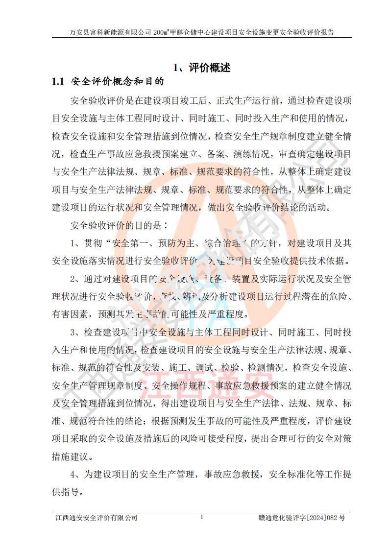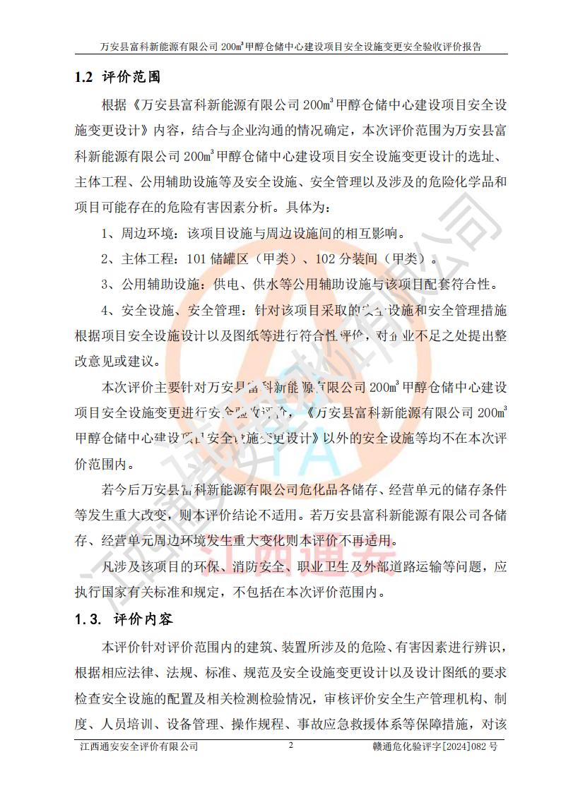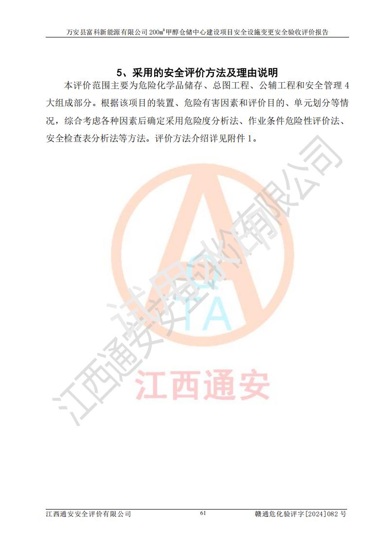 評價報告名稱 | 萬安縣富科新能源有限公司200m3甲醇倉儲中心建設項目安全設施變更安全驗收評價報告 | |||
