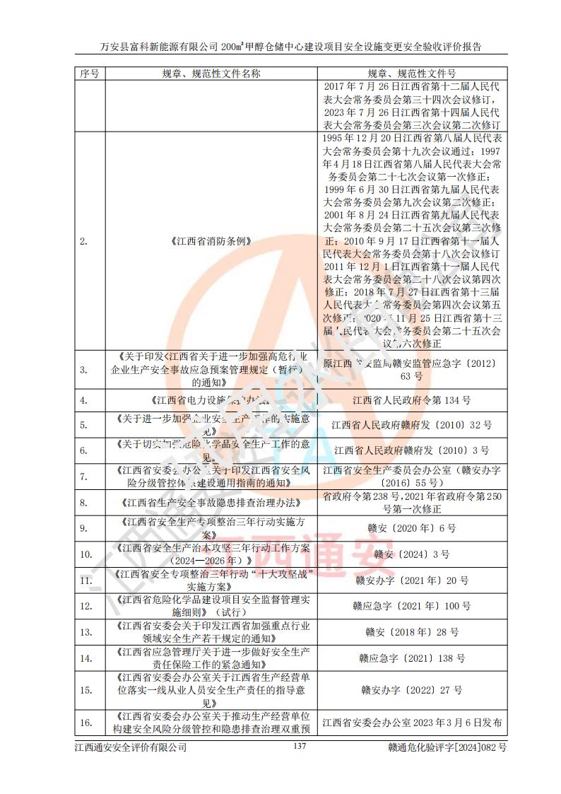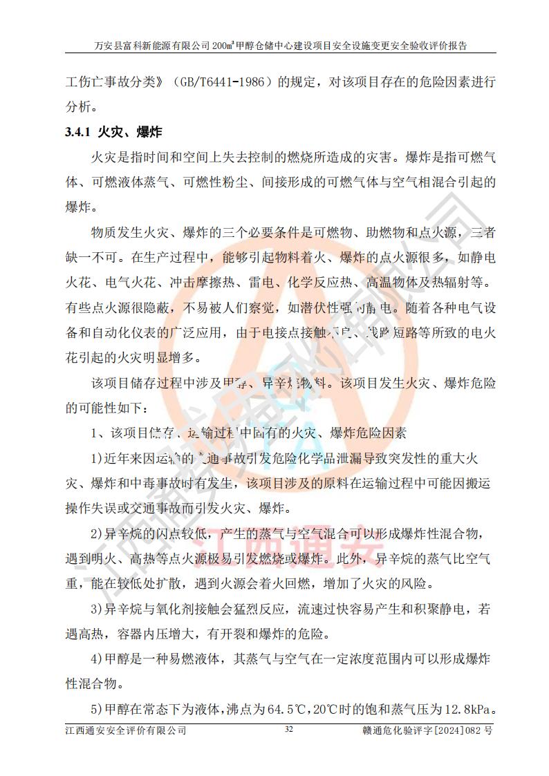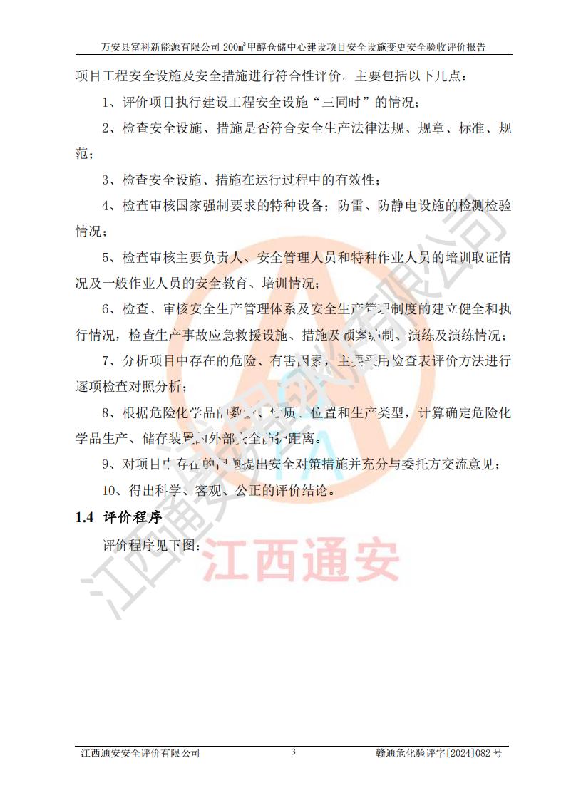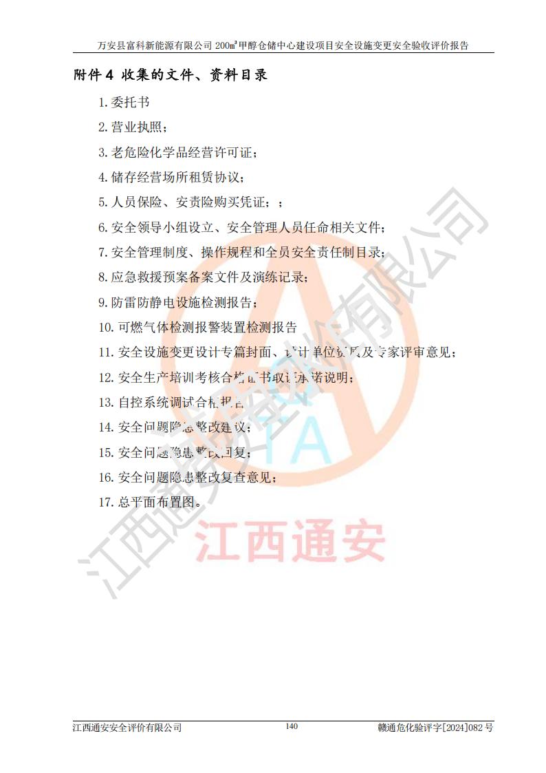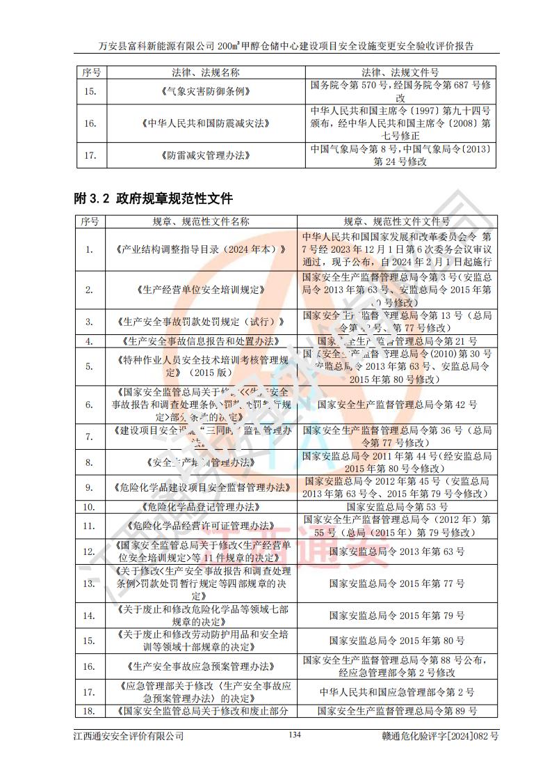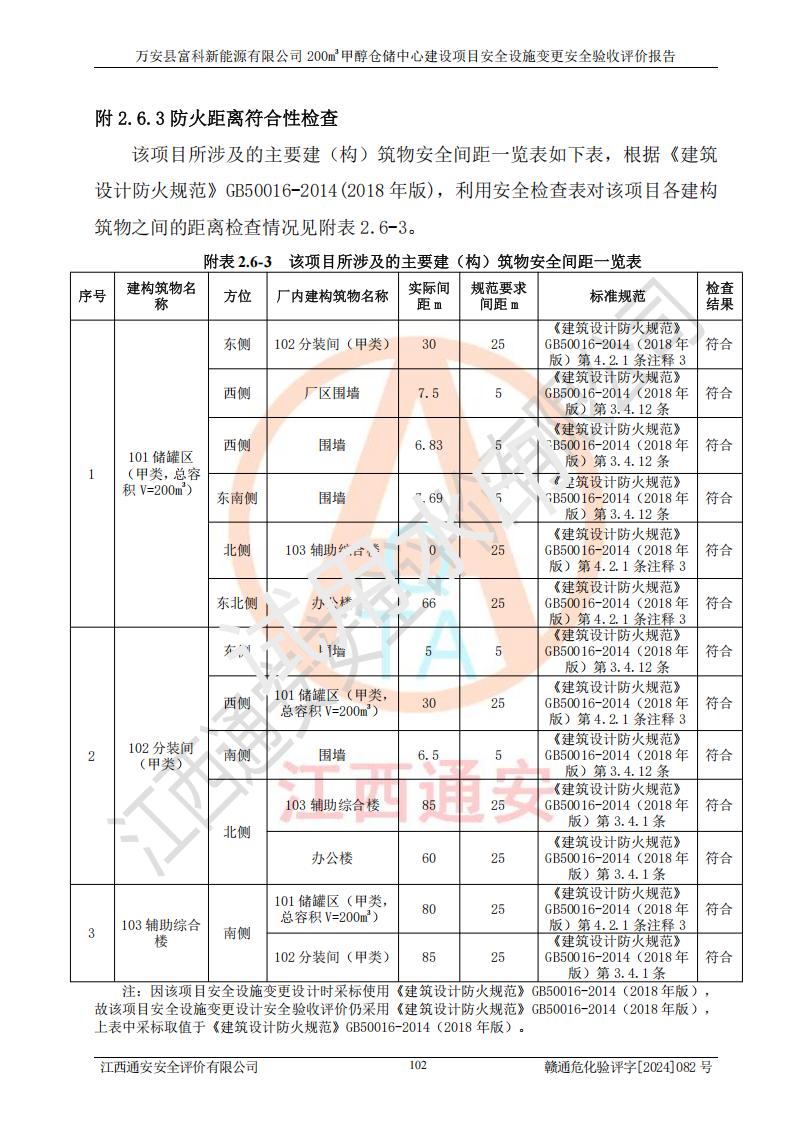 評價報告名稱 | 萬安縣富科新能源有限公司200m3甲醇倉儲中心建設項目安全設施變更安全驗收評價報告 | |||