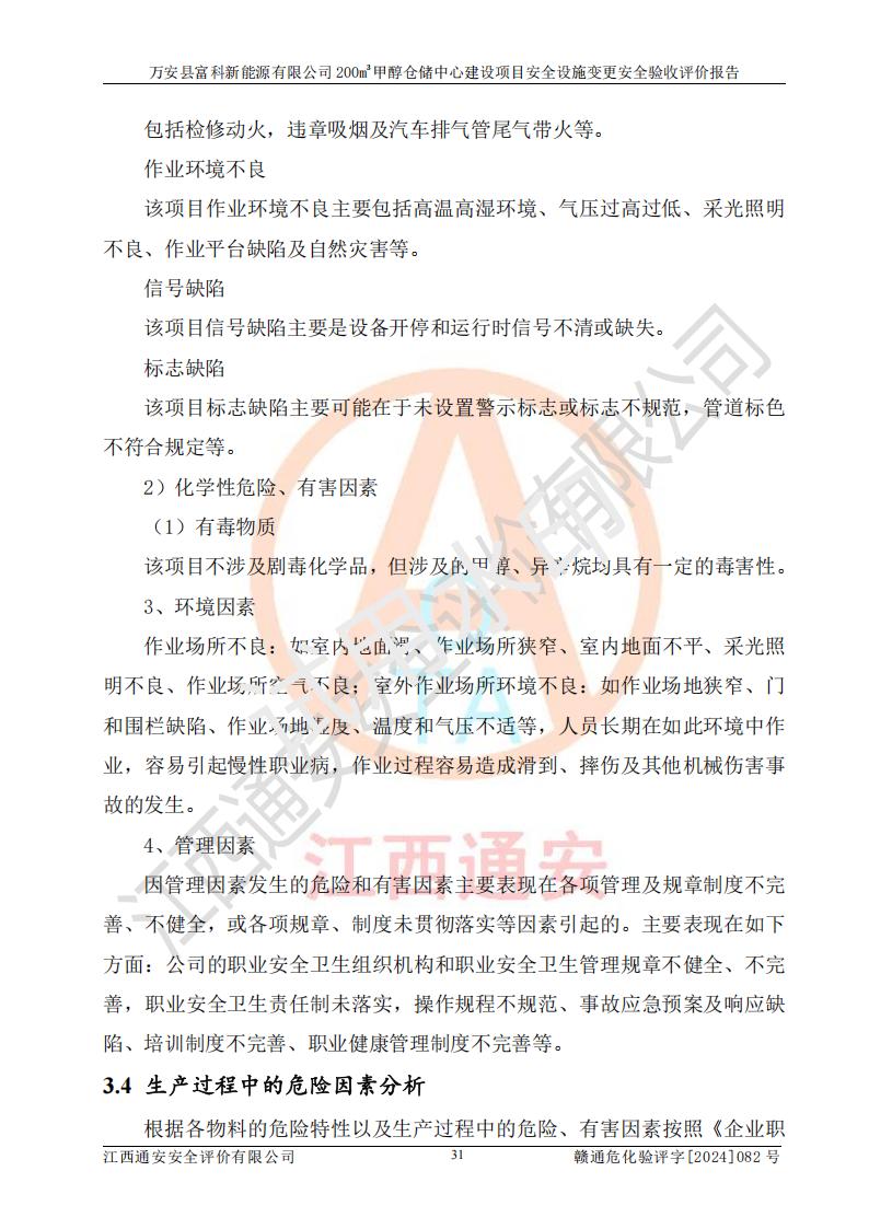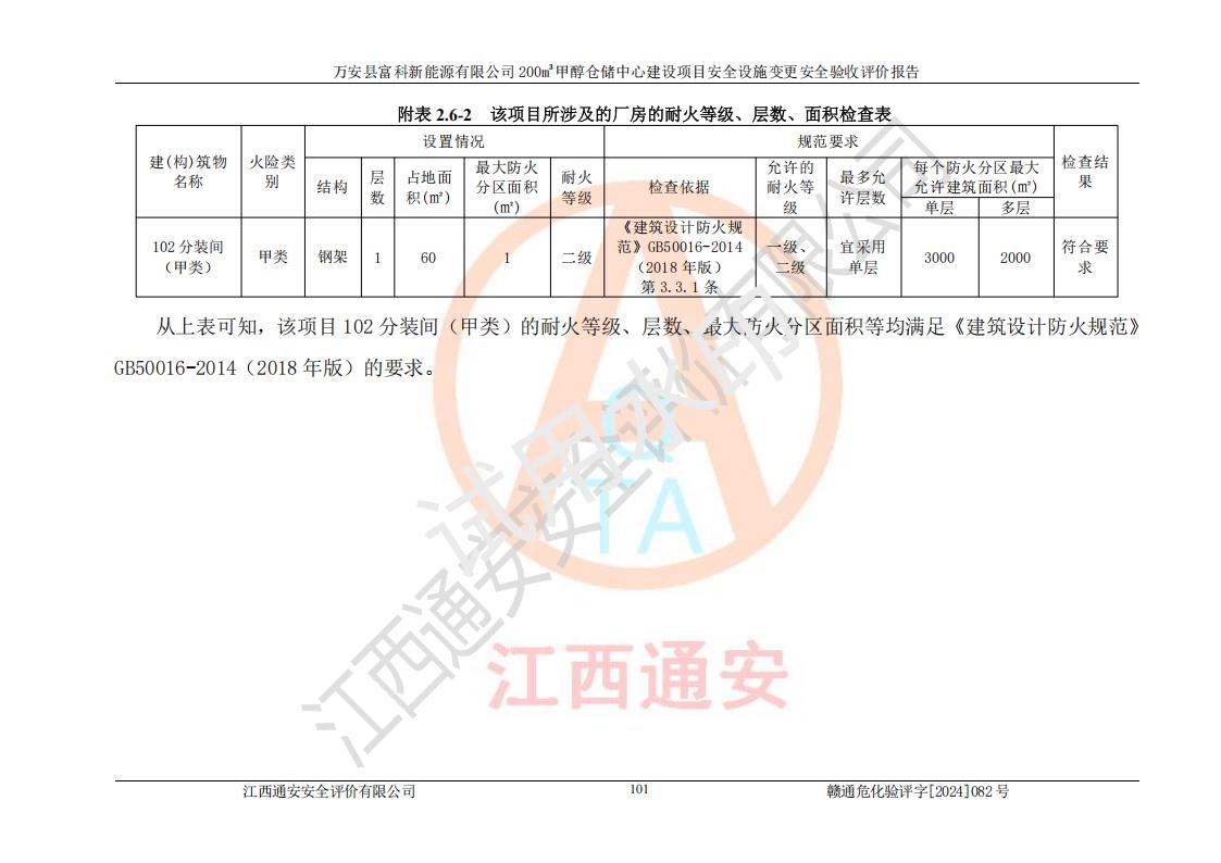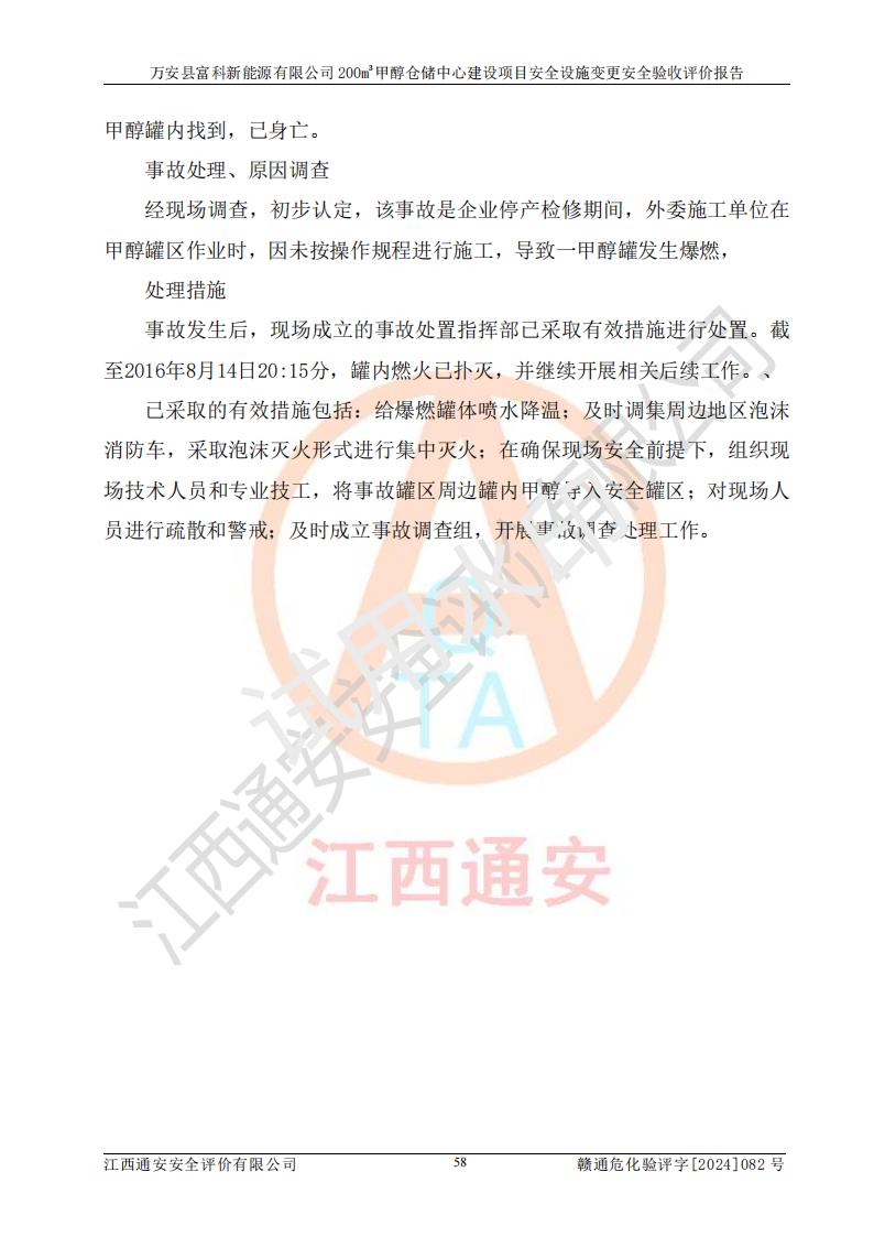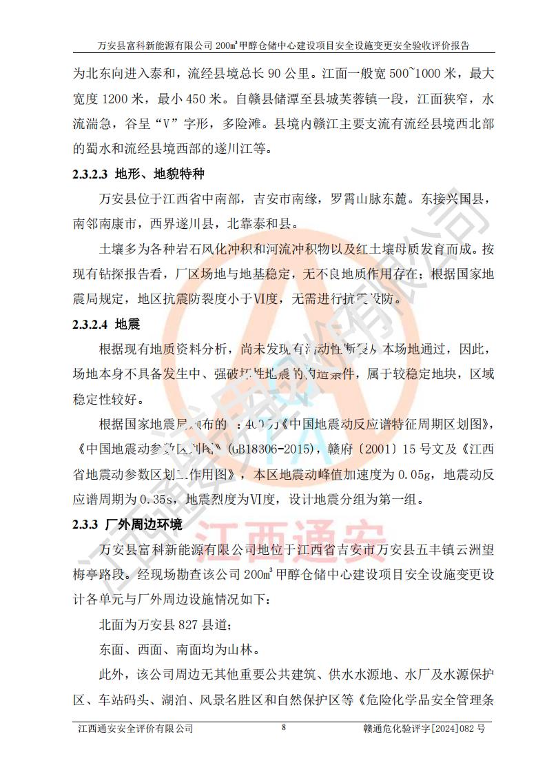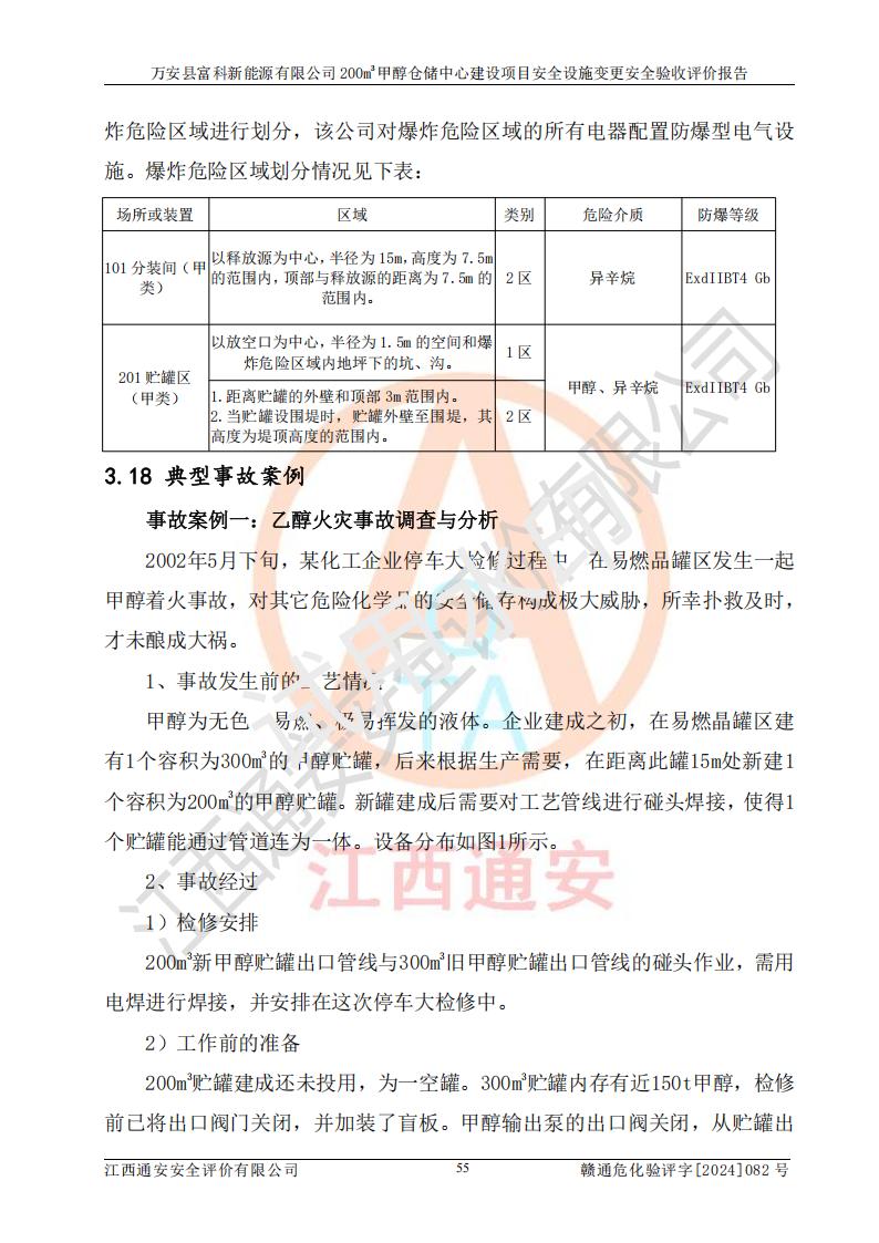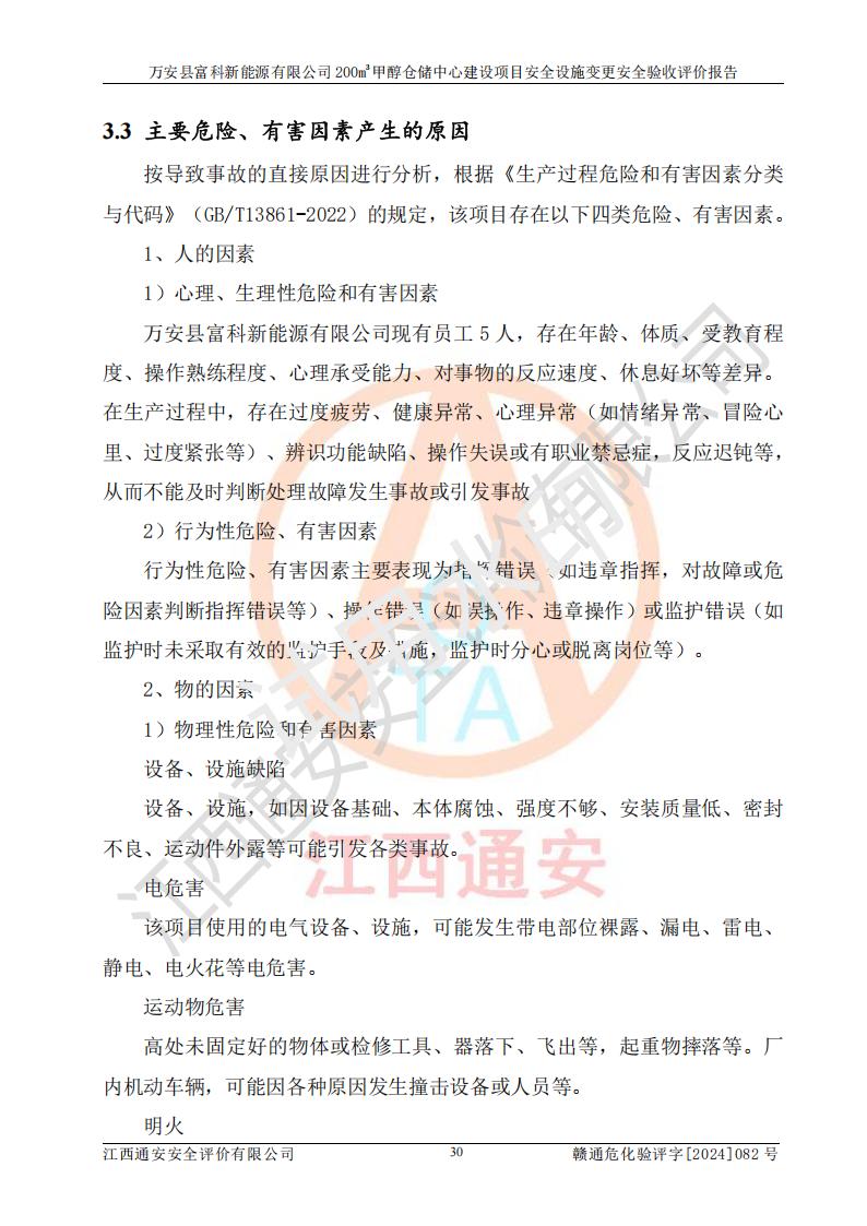 評價報告名稱 | 萬安縣富科新能源有限公司200m3甲醇倉儲中心建設項目安全設施變更安全驗收評價報告 | |||