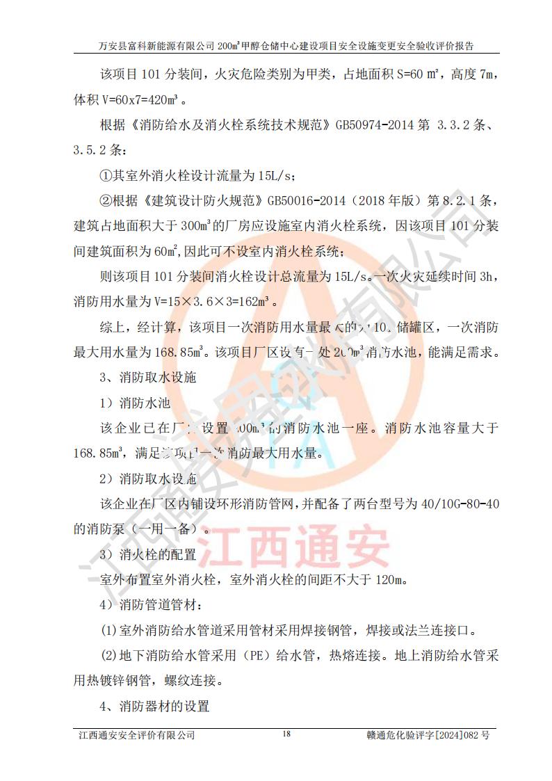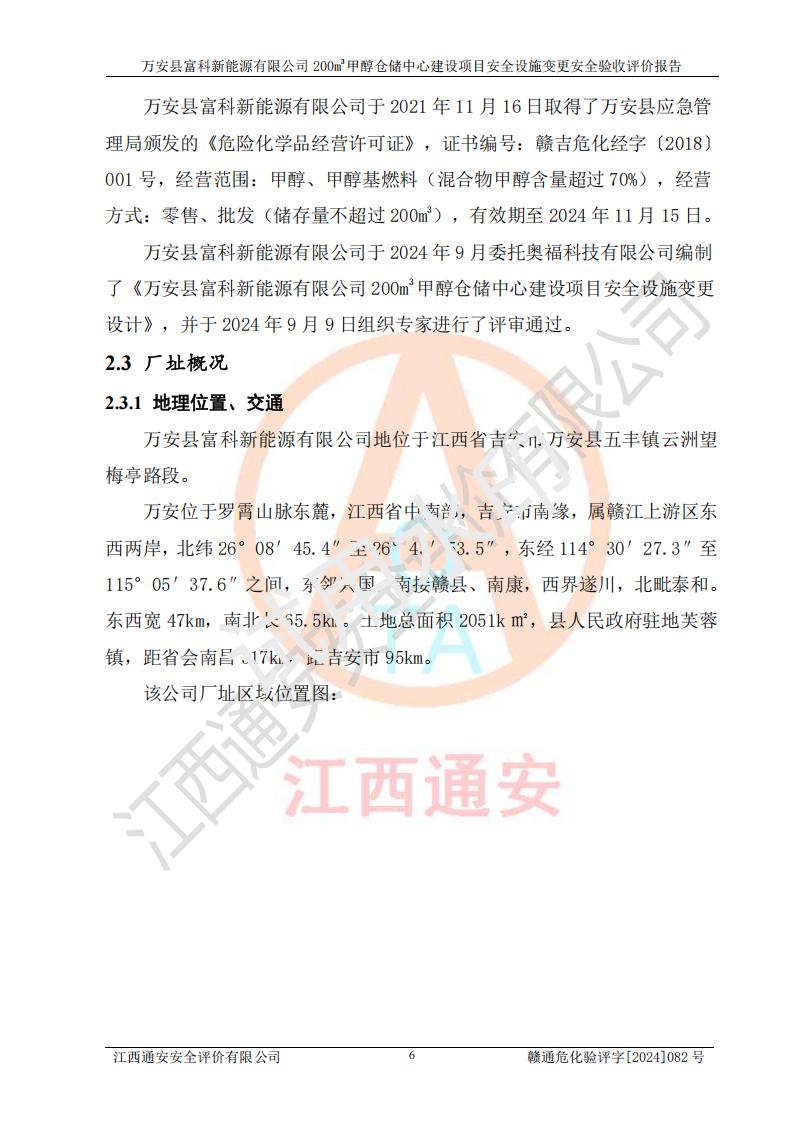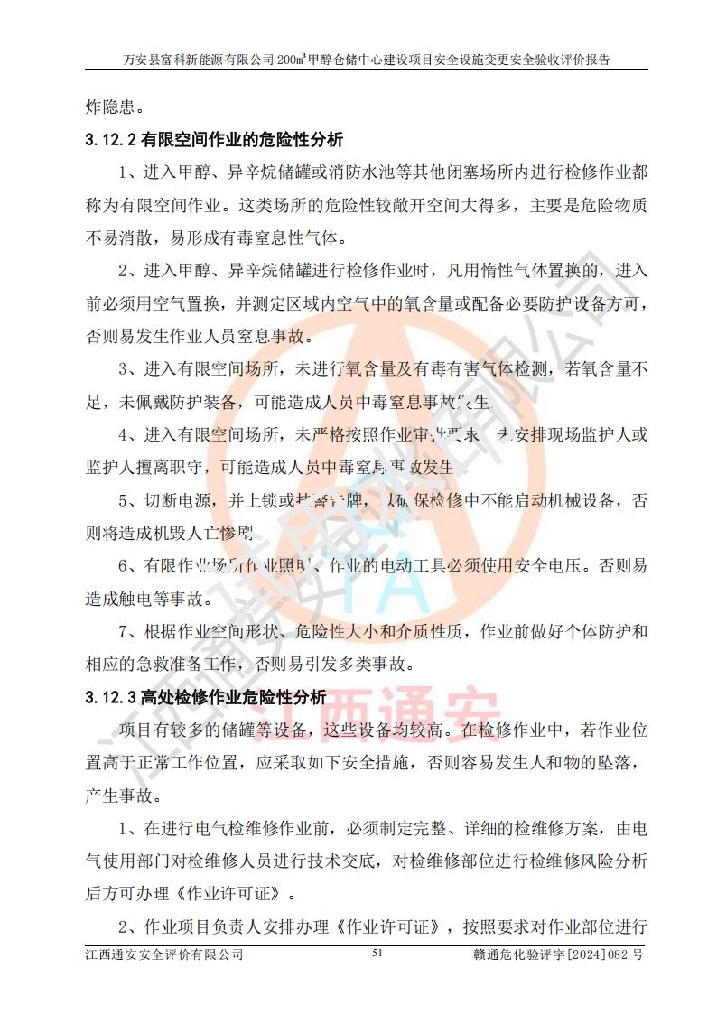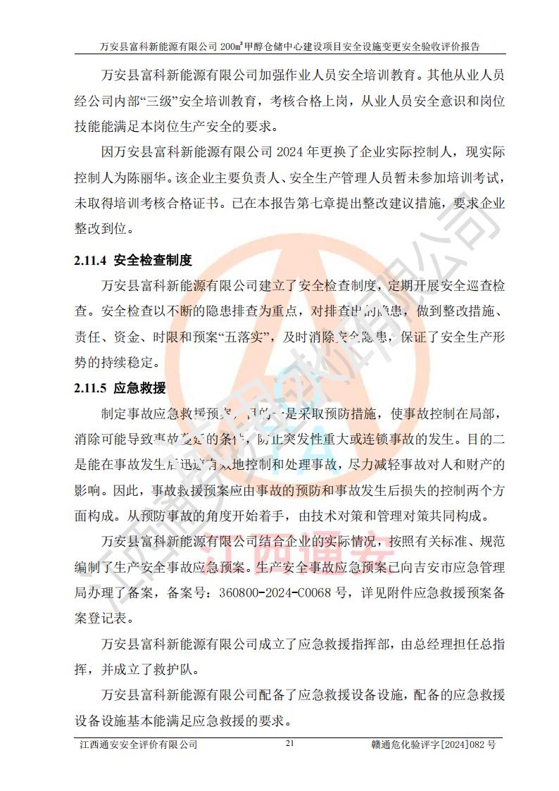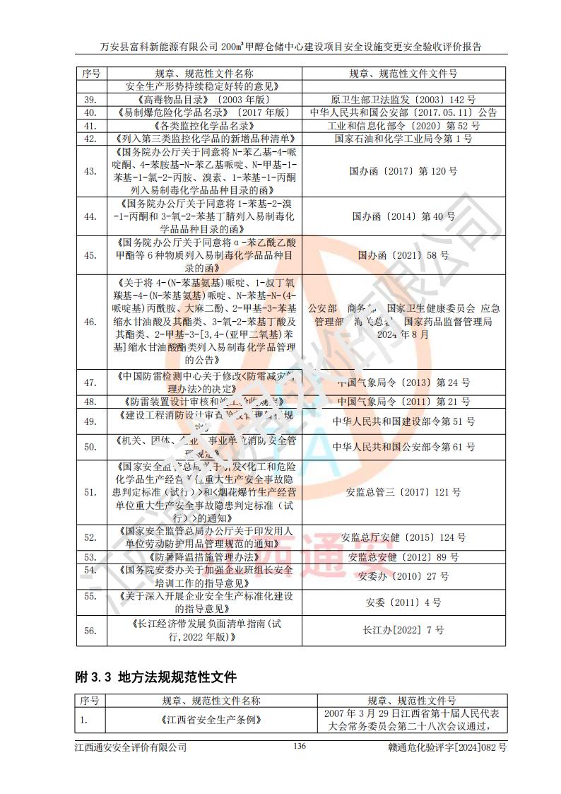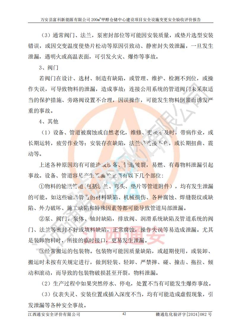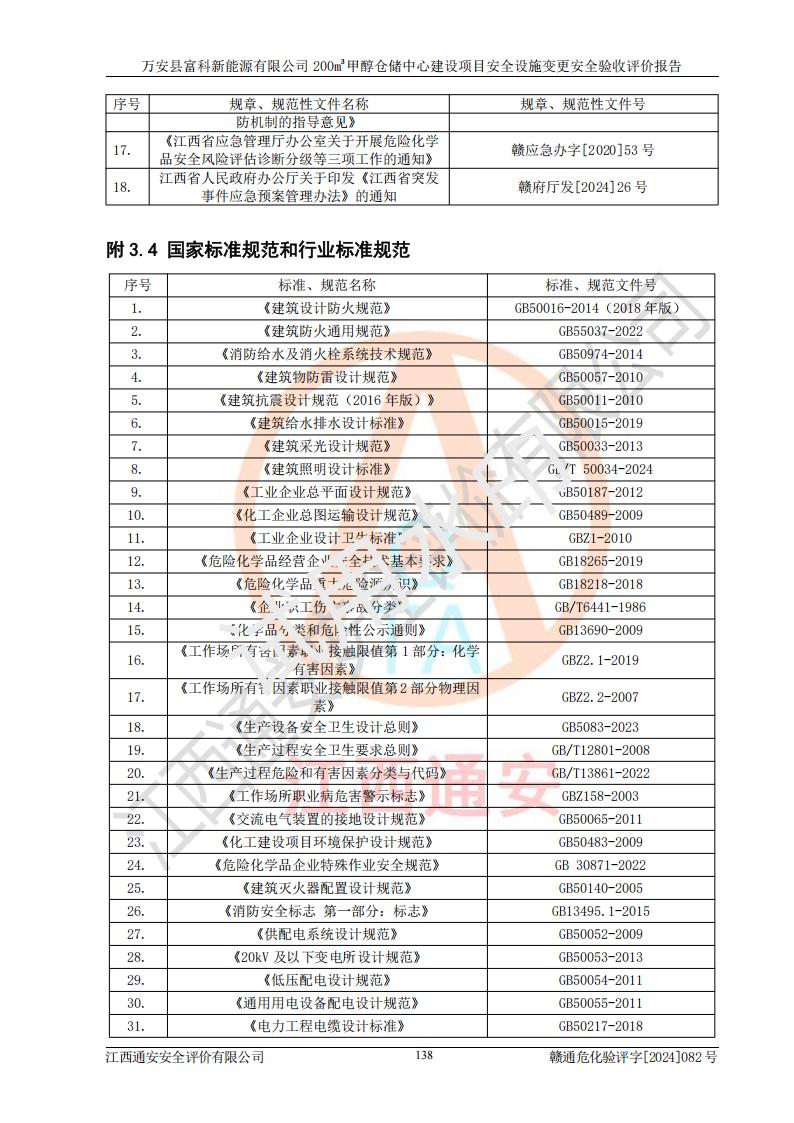 評價報告名稱 | 萬安縣富科新能源有限公司200m3甲醇倉儲中心建設項目安全設施變更安全驗收評價報告 | |||