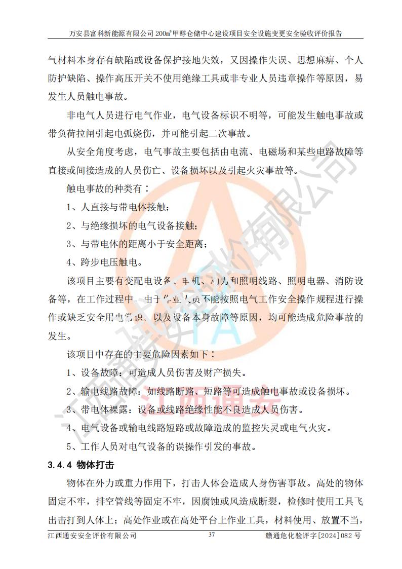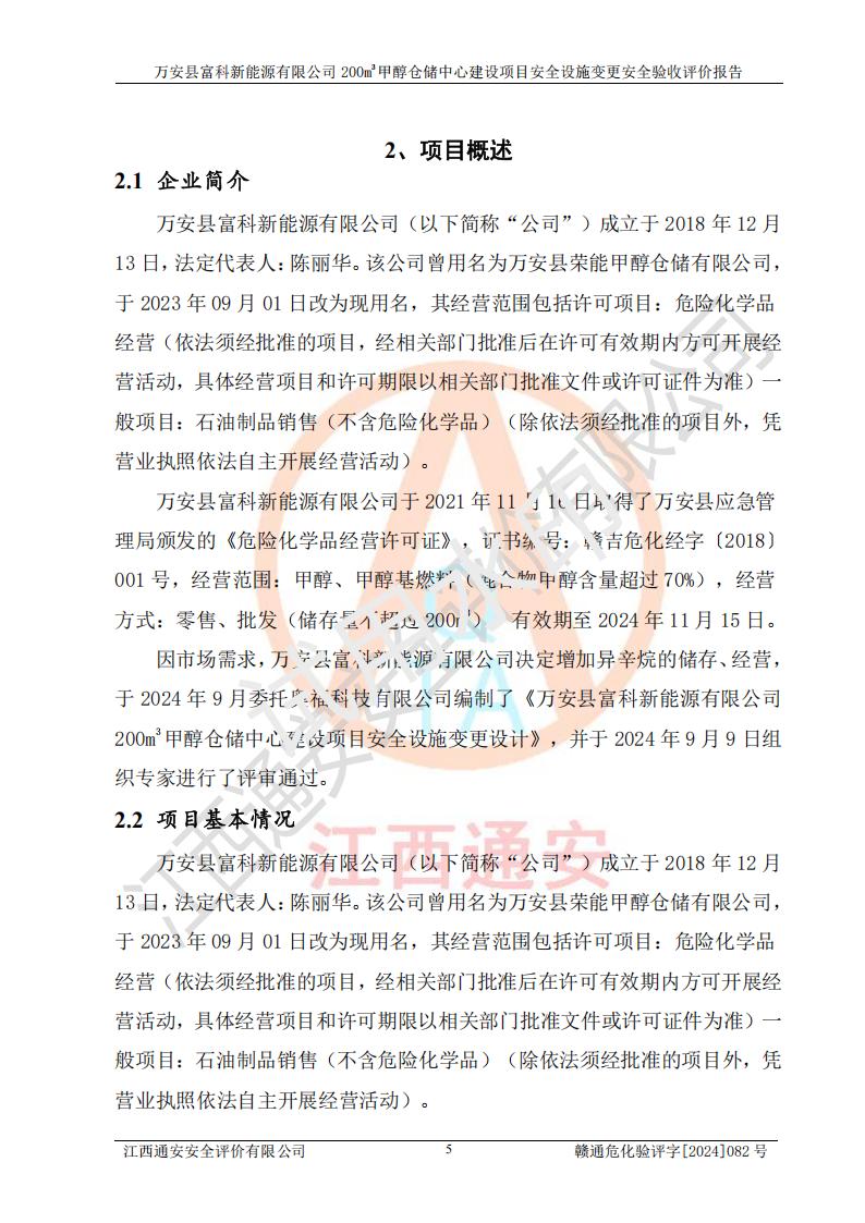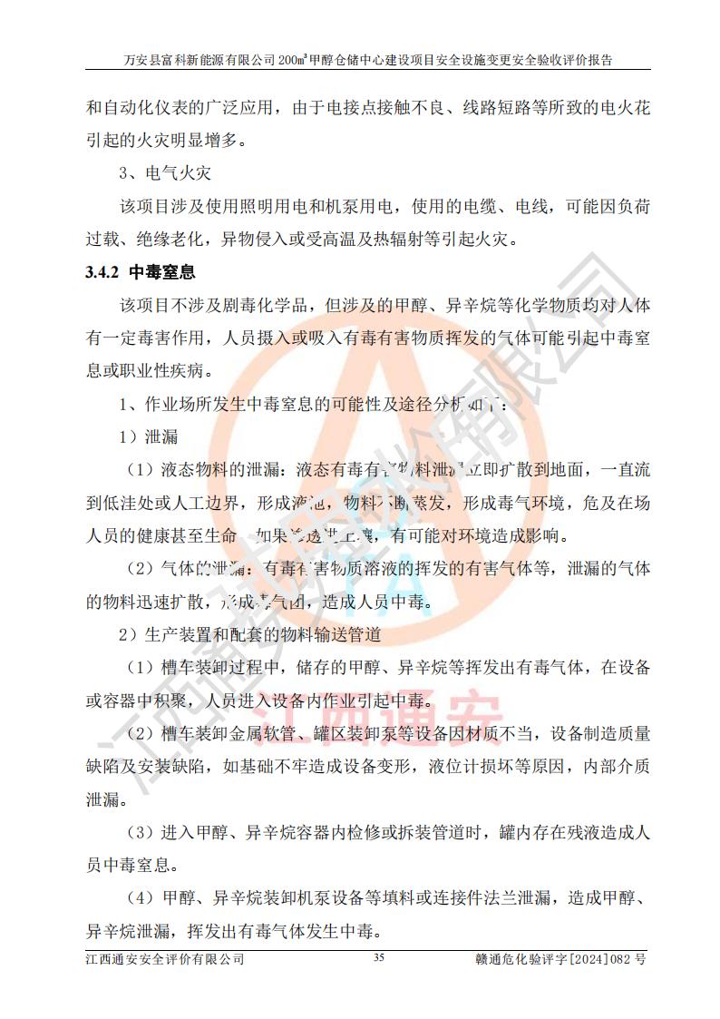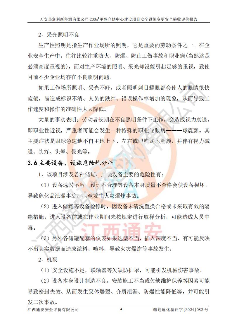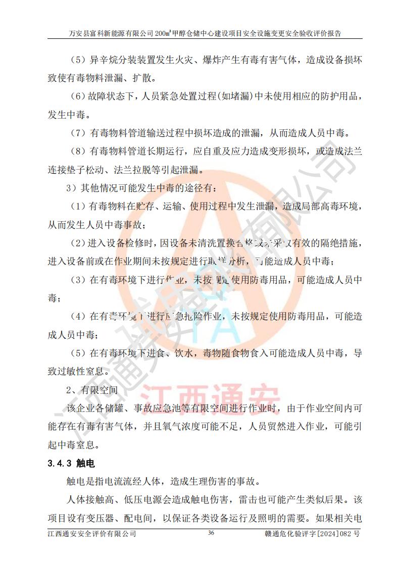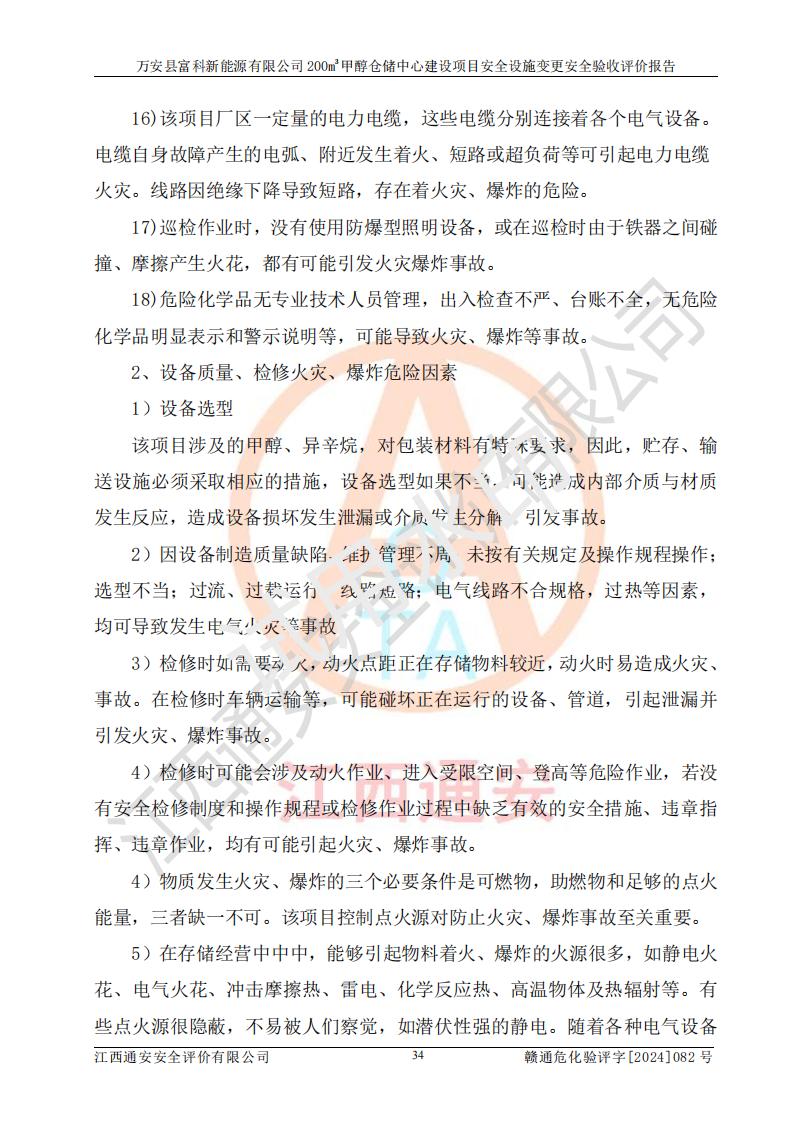 評價報告名稱 | 萬安縣富科新能源有限公司200m3甲醇倉儲中心建設項目安全設施變更安全驗收評價報告 | |||