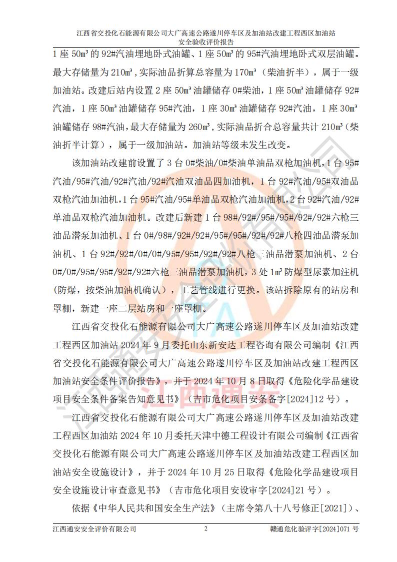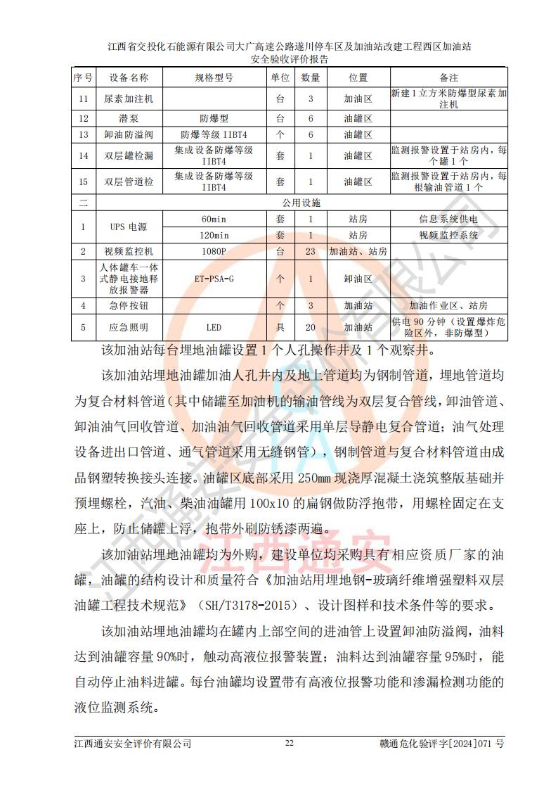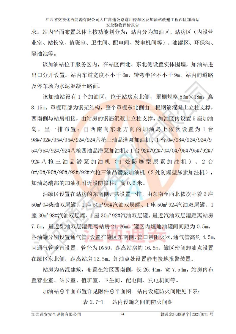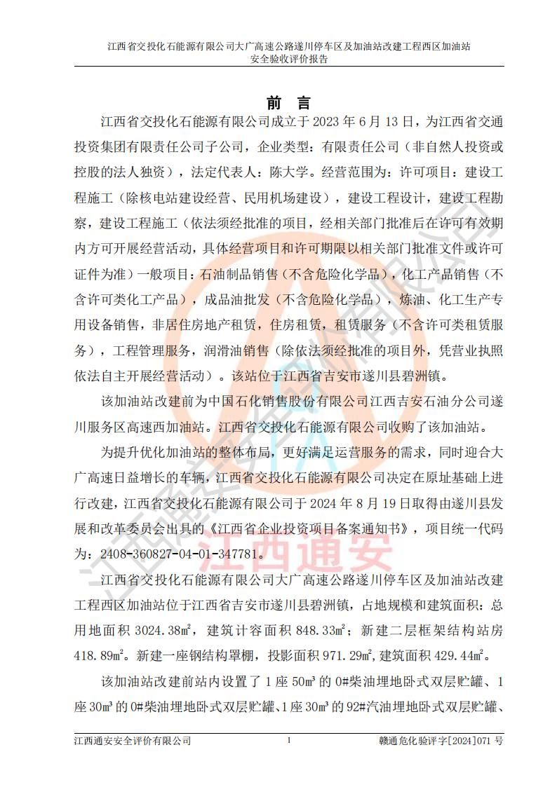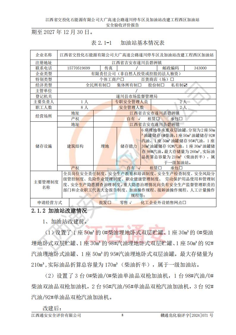 評價報告名稱 | 江西省交投化石能源有限公司大廣高速公路遂川停車區(qū)及加油站改建工程西區(qū)加油站安全驗收評價報告 | |||