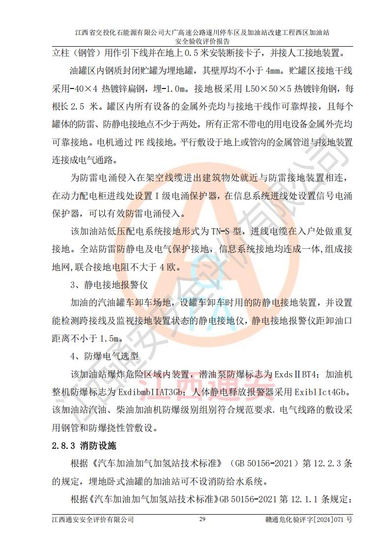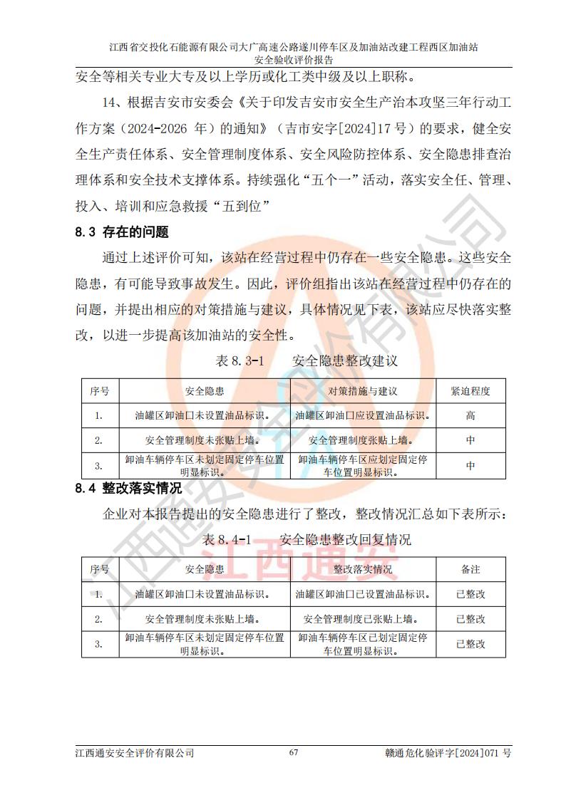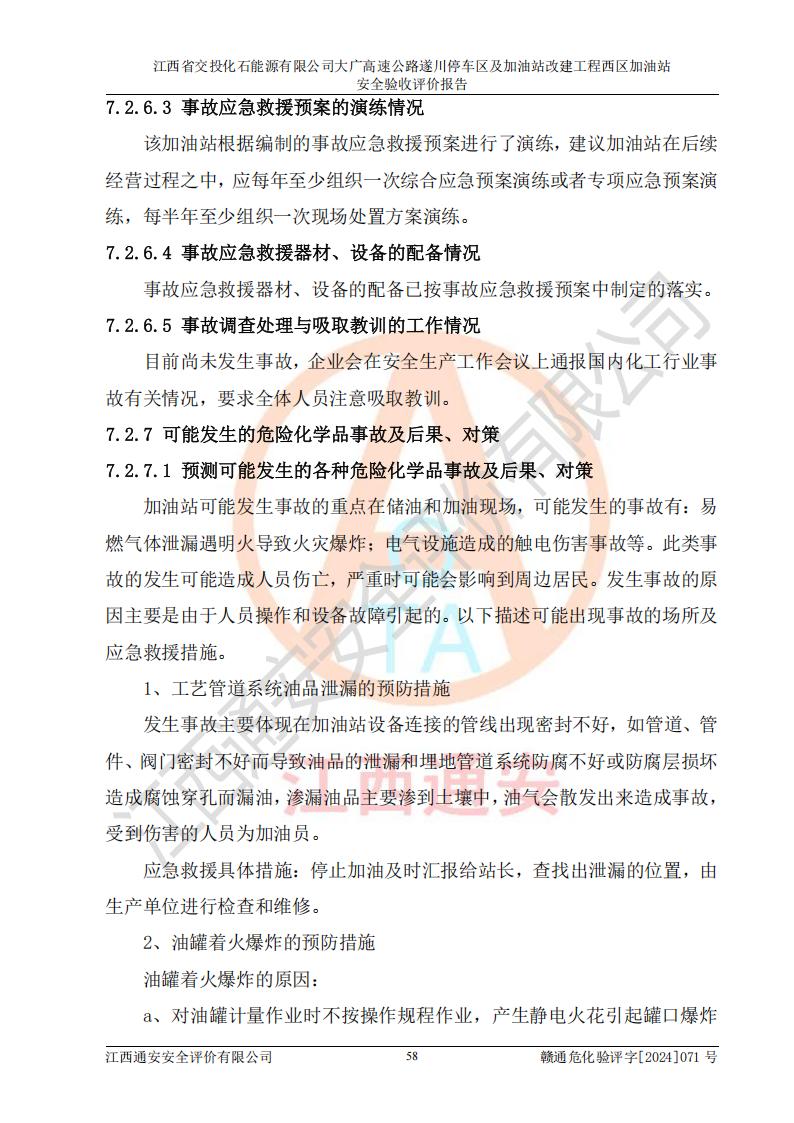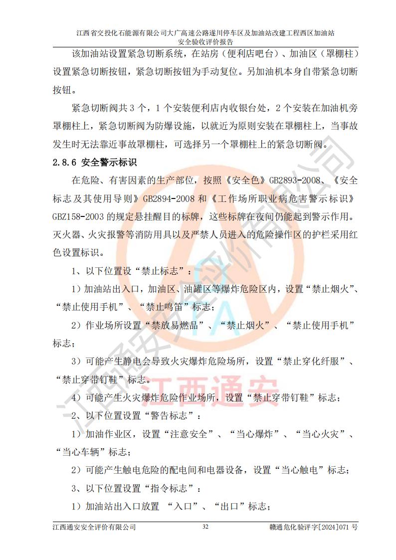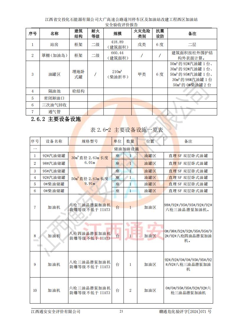評價報告名稱 | 江西省交投化石能源有限公司大廣高速公路遂川停車區(qū)及加油站改建工程西區(qū)加油站安全驗收評價報告 | |||