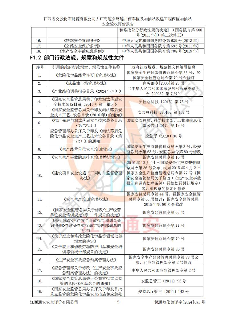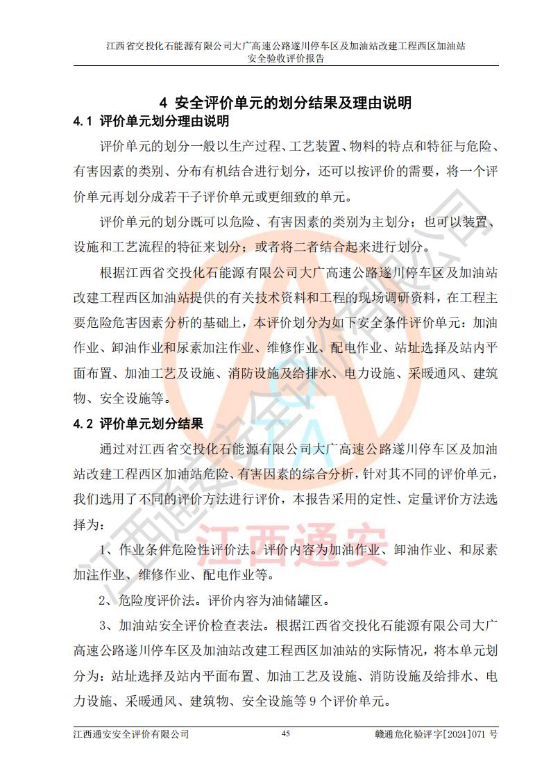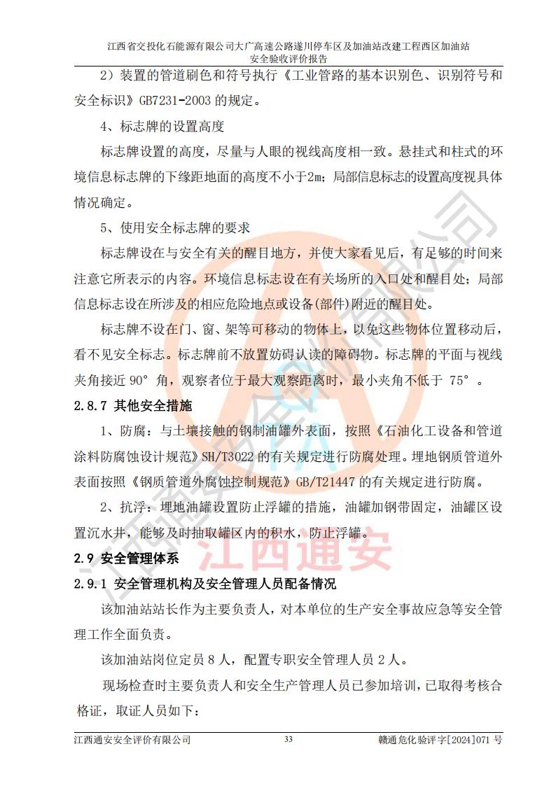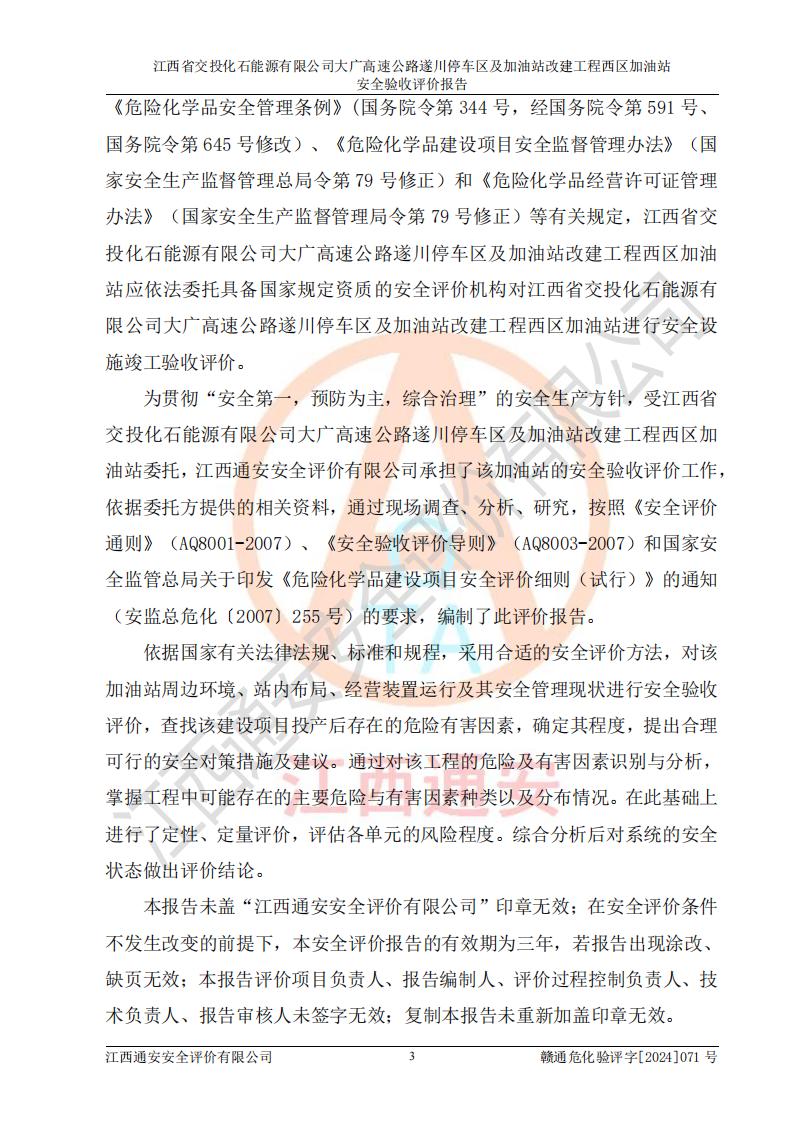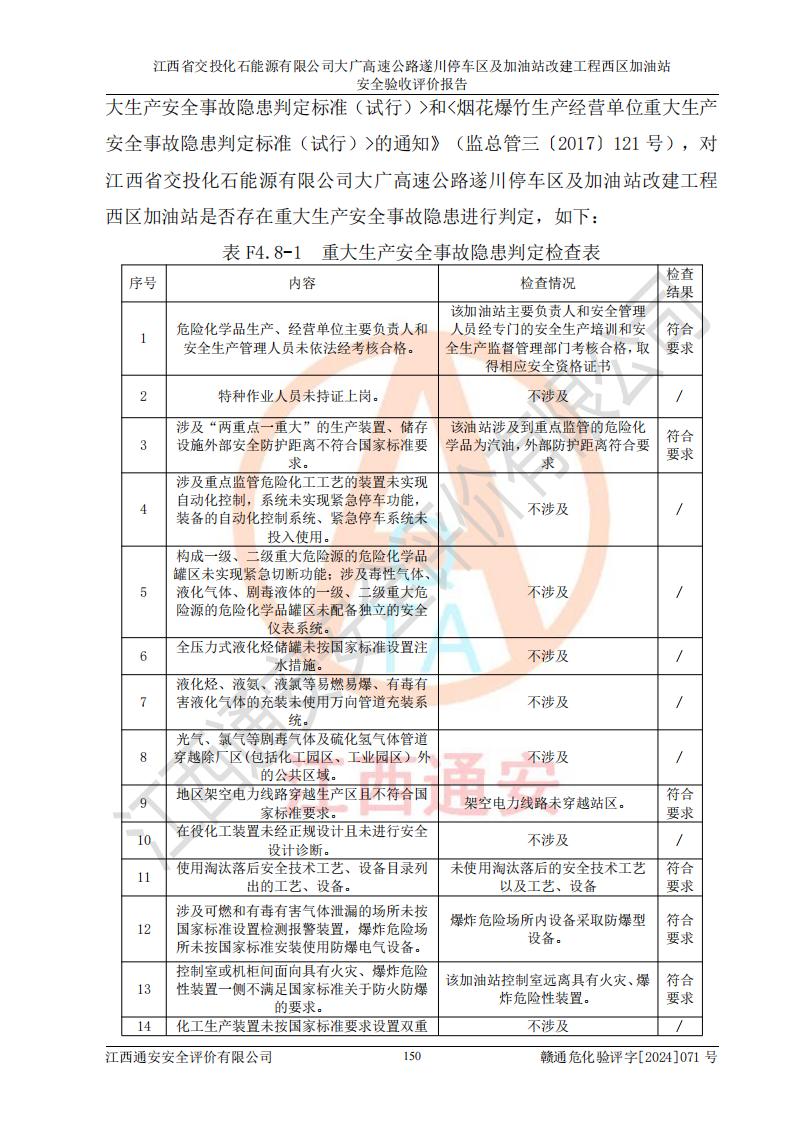 評價報告名稱 | 江西省交投化石能源有限公司大廣高速公路遂川停車區(qū)及加油站改建工程西區(qū)加油站安全驗收評價報告 | |||
