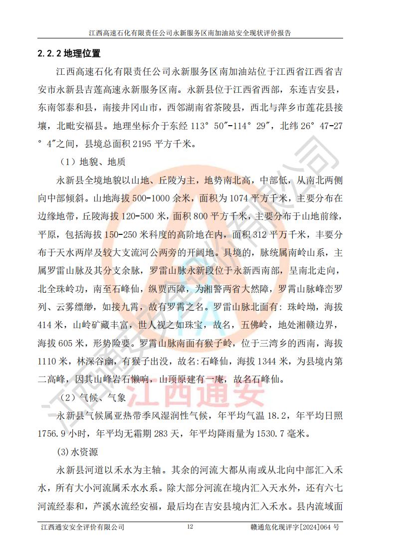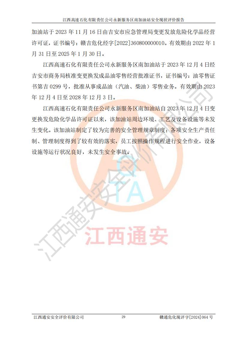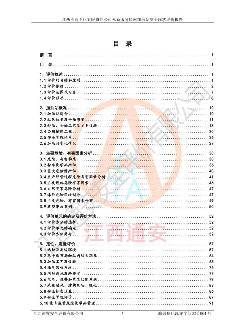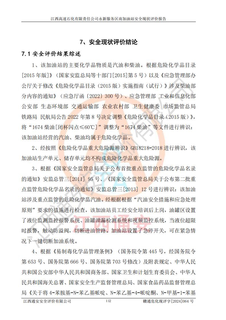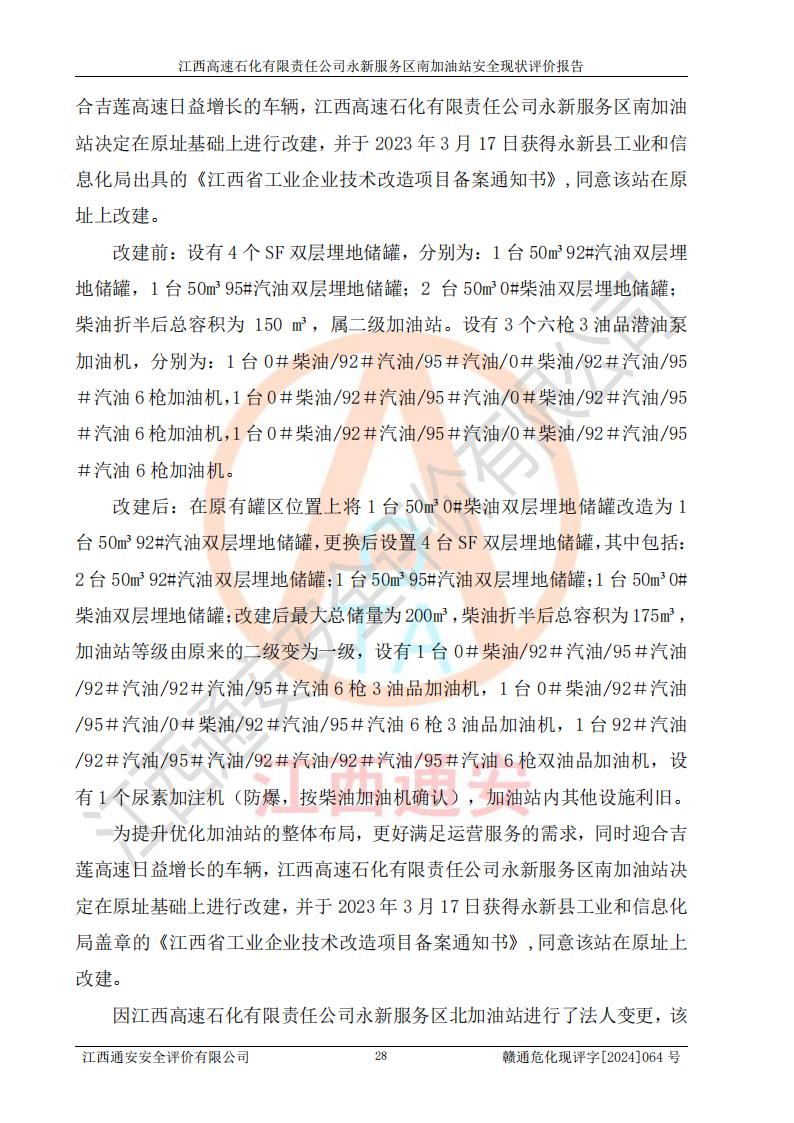 評價(jià)報(bào)告名稱 | 江西高速石化有限責(zé)任公司永新服務(wù)區(qū)南加油站安全現(xiàn)狀評價(jià)報(bào)告 | |||