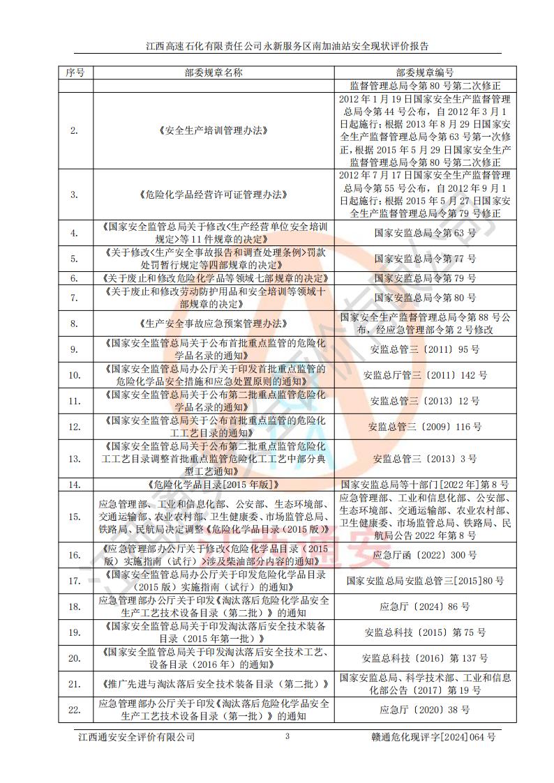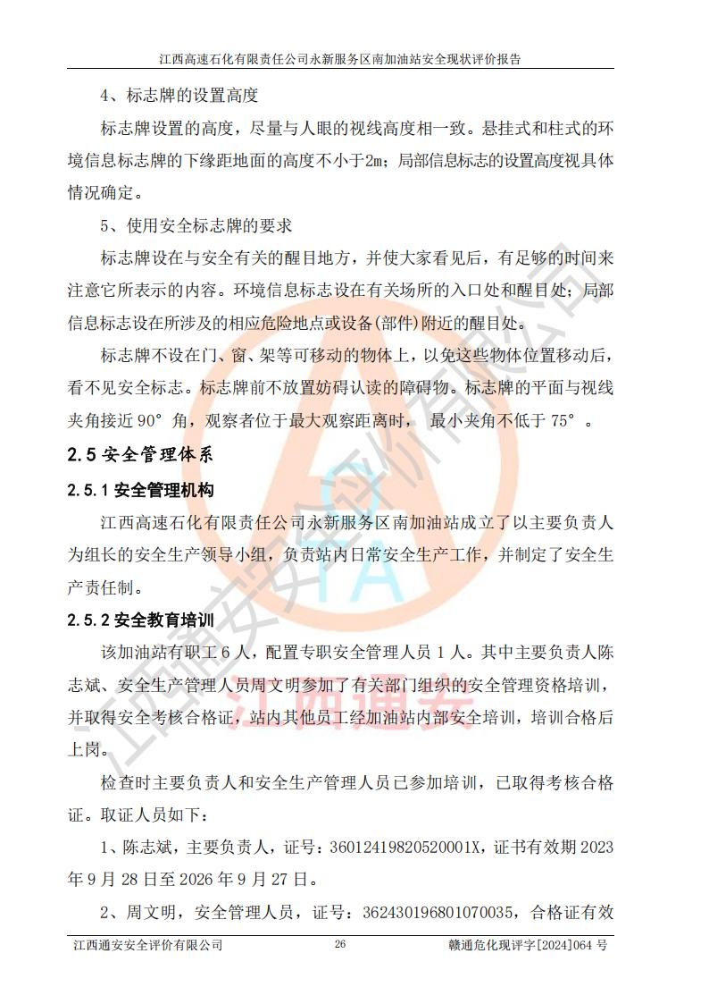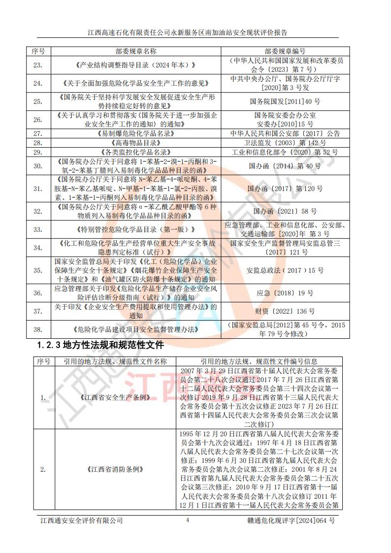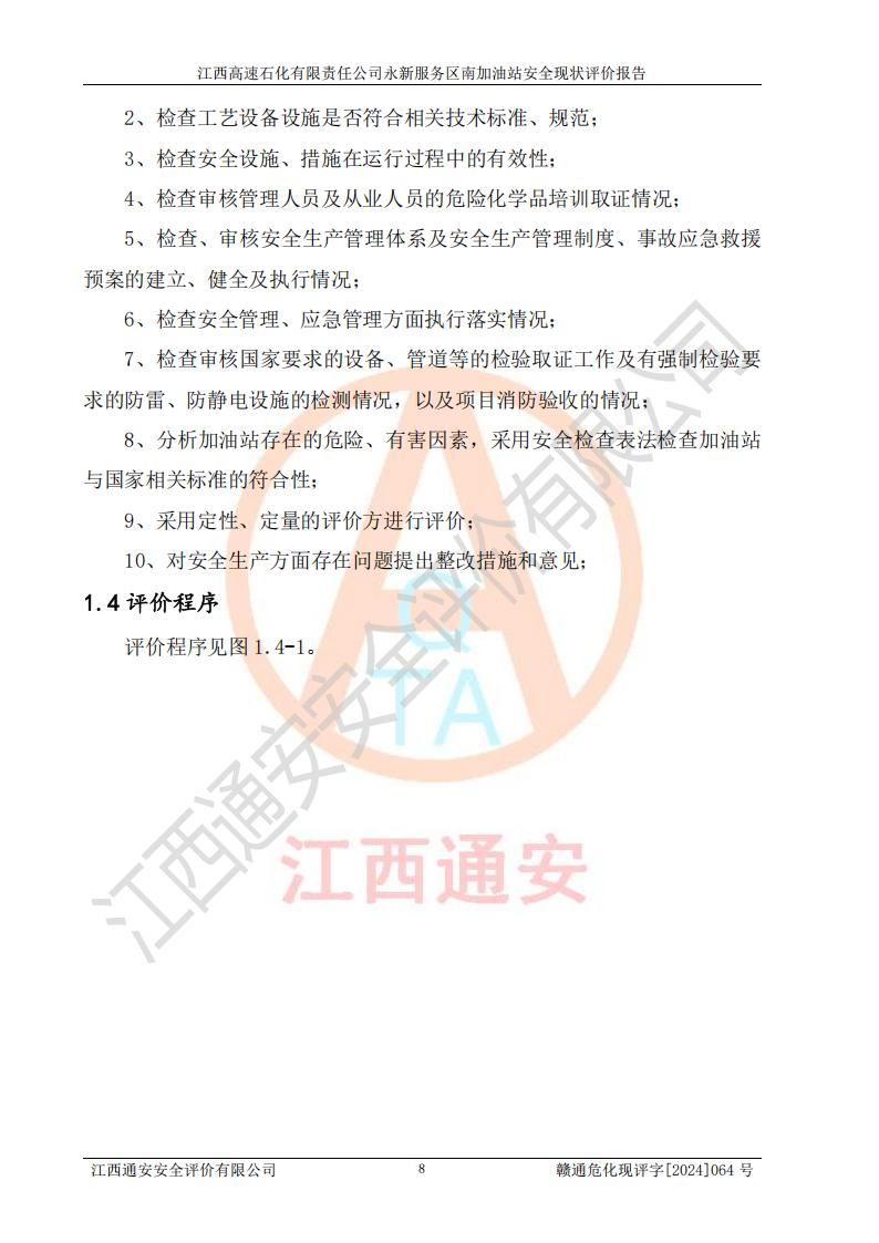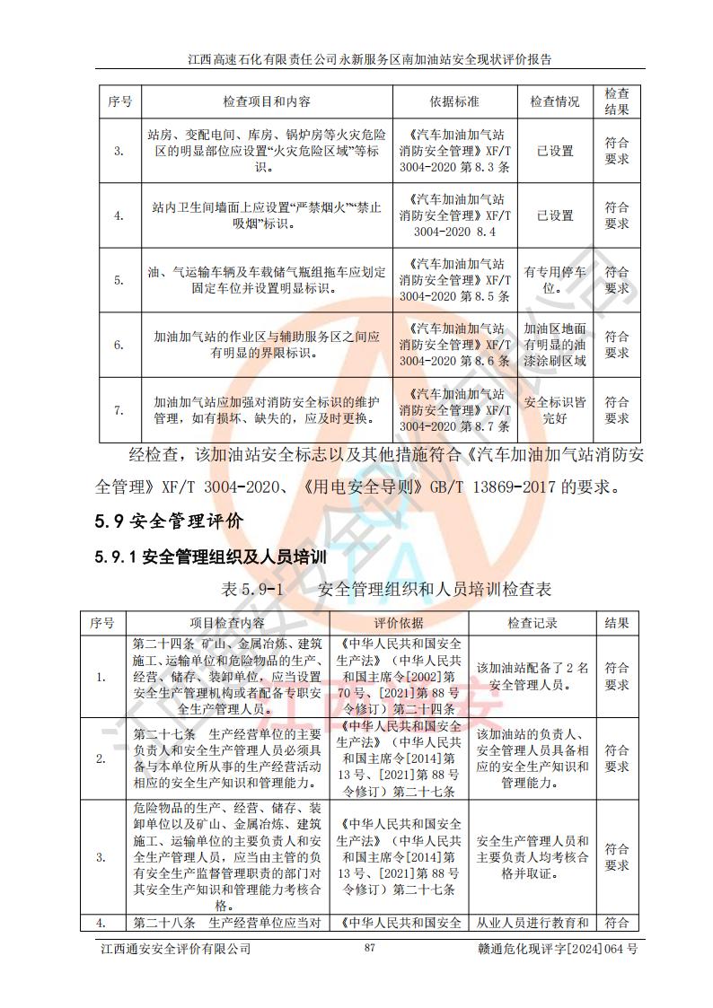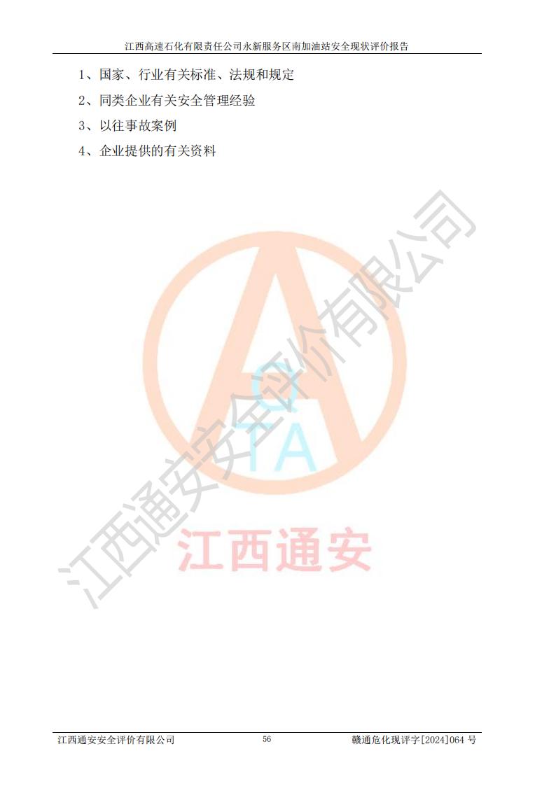 評價(jià)報(bào)告名稱 | 江西高速石化有限責(zé)任公司永新服務(wù)區(qū)南加油站安全現(xiàn)狀評價(jià)報(bào)告 | |||