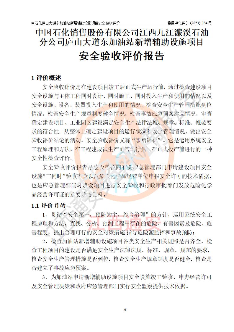評價報告名稱 | 中國石化銷售股份有限公司江西九江濂溪石油分公司廬山大道東加油站新增輔助設(shè)施項目安全驗收評價報告 | |||