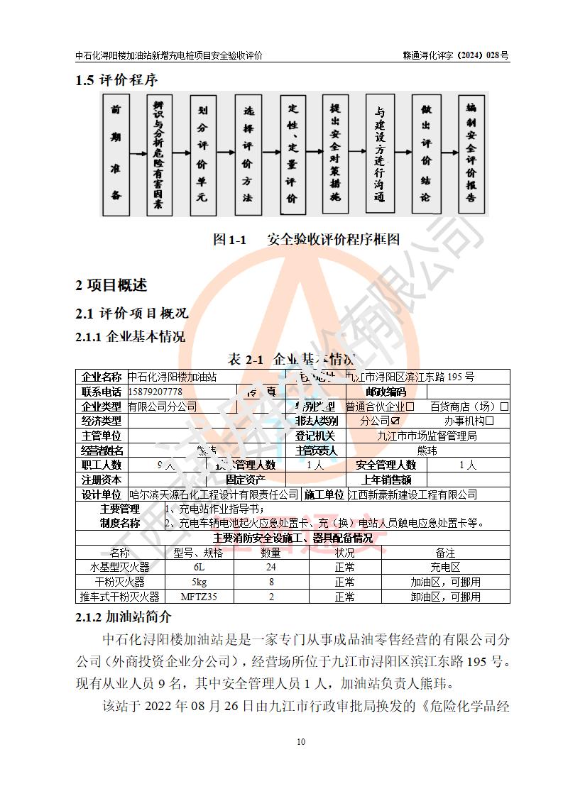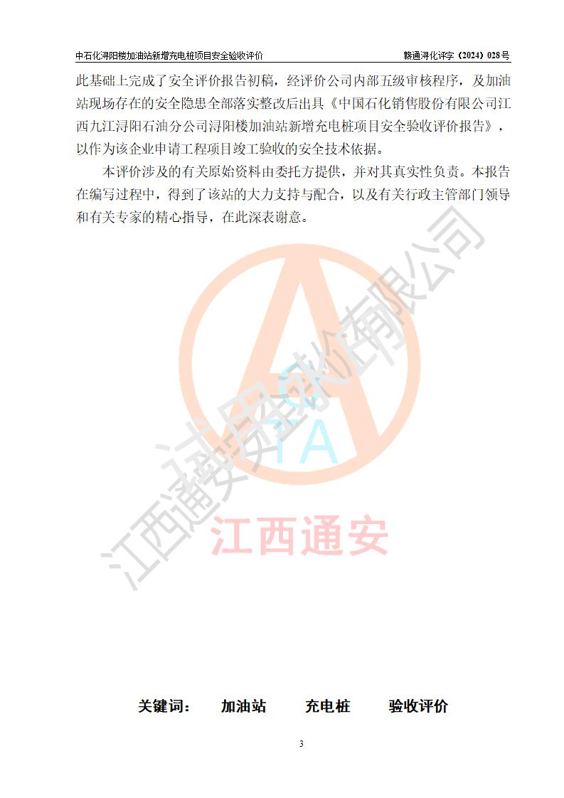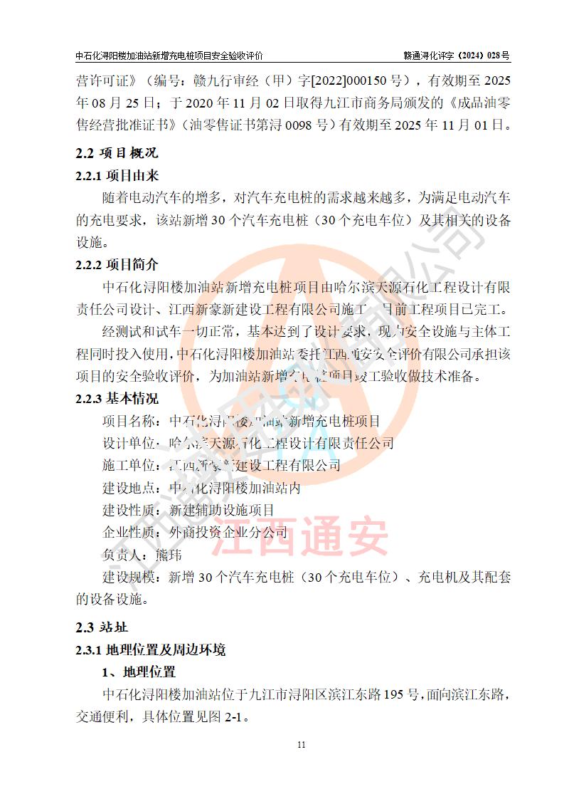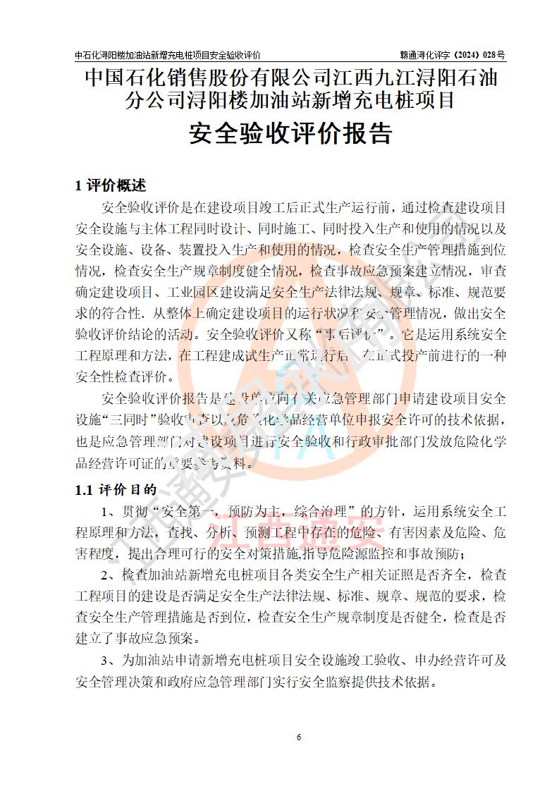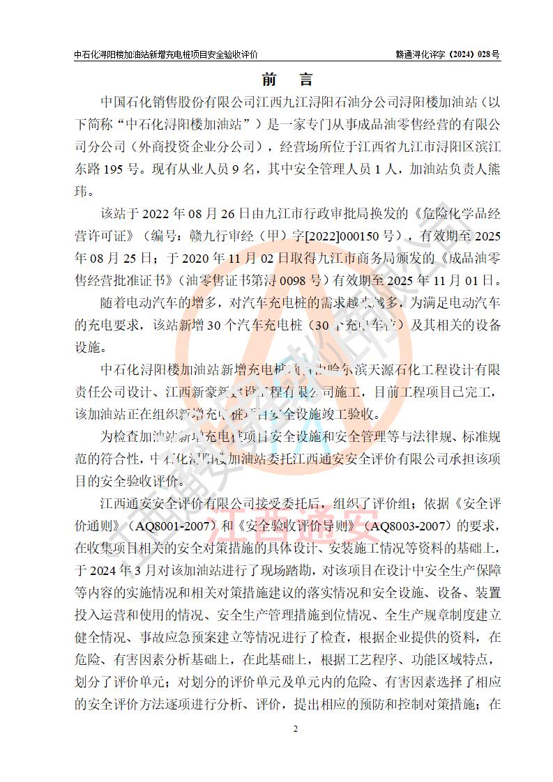 評價報告名稱 | 中國石化銷售股份有限公司江西九江潯陽石油分公司潯陽樓加油站新增充電樁項目安全驗收評價報告 | |||