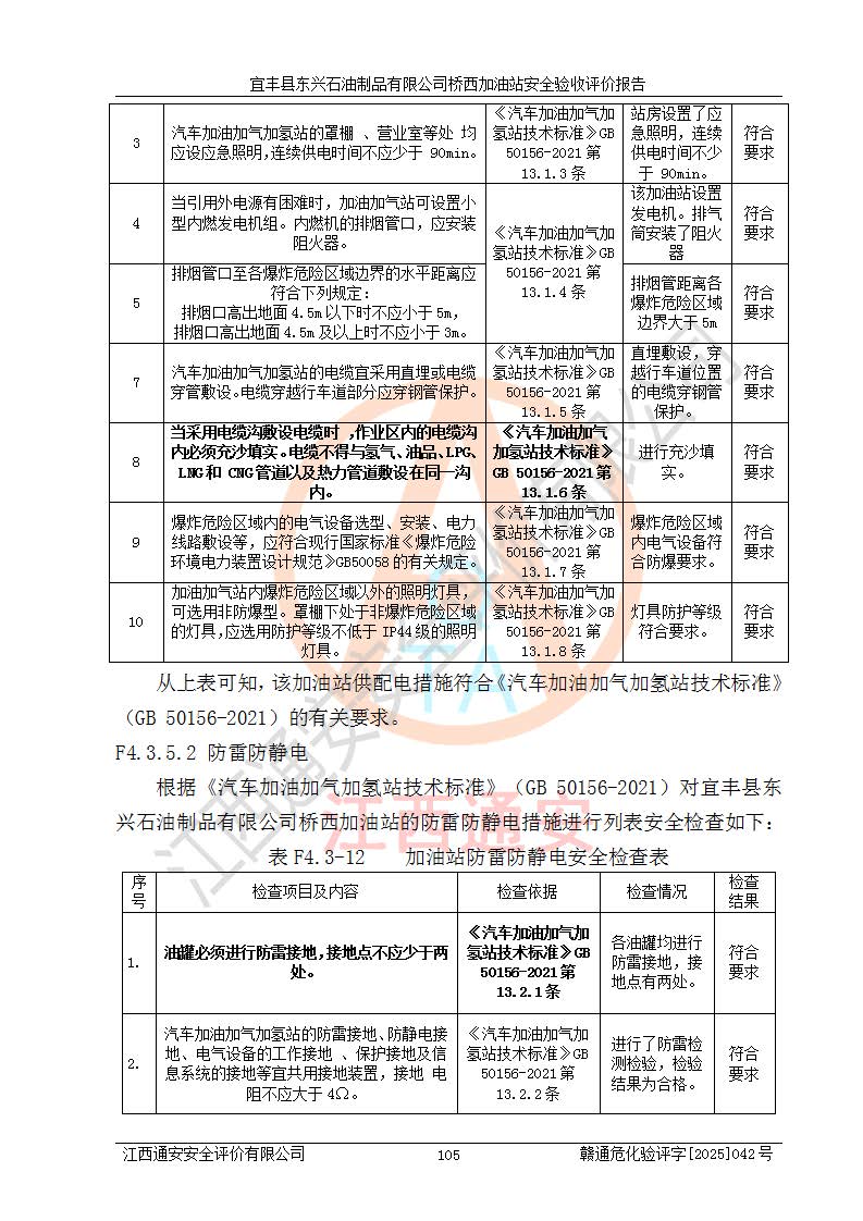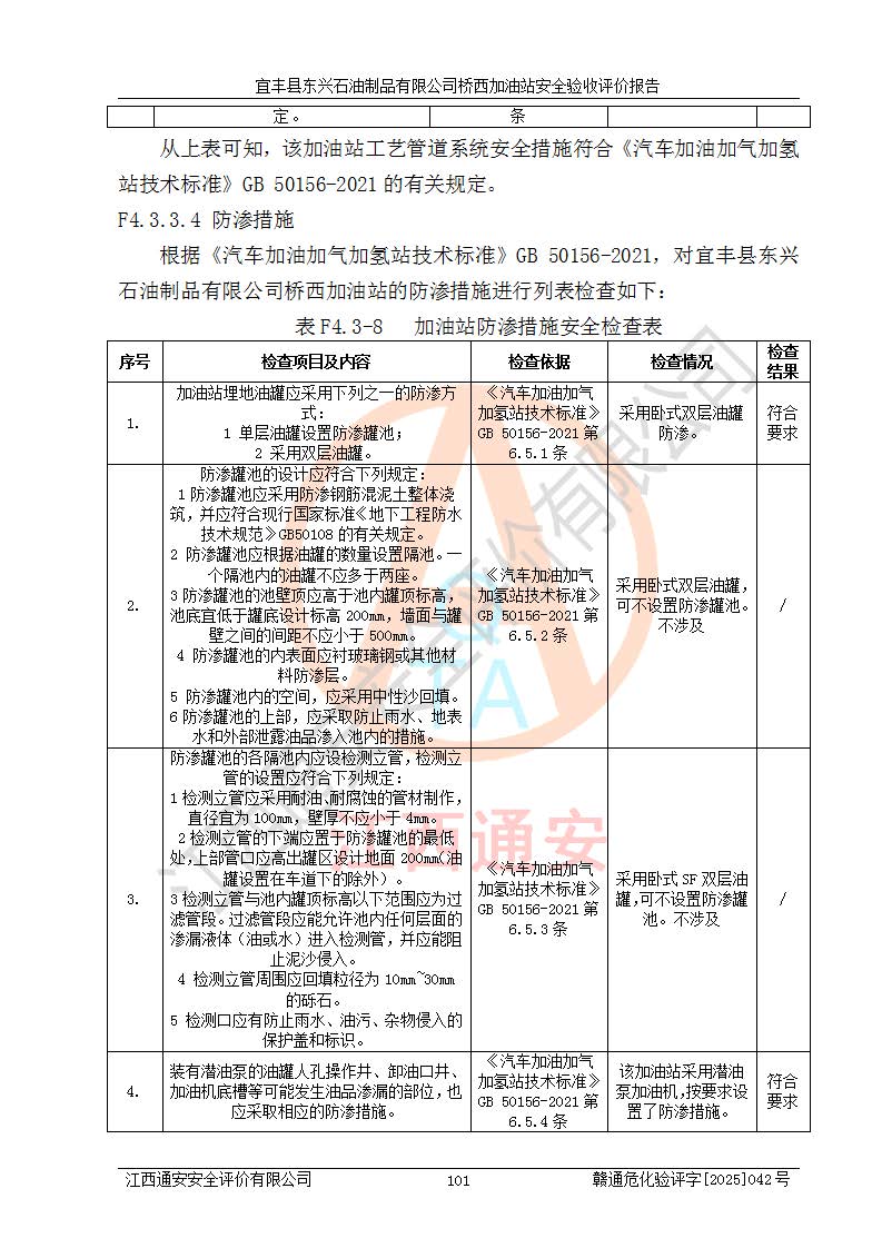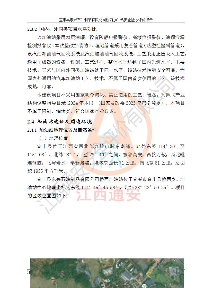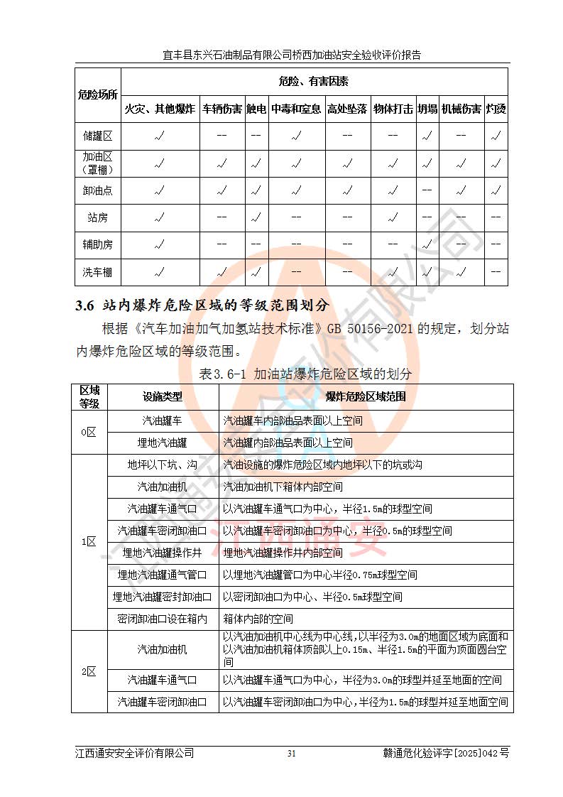 項(xiàng)目簡(jiǎn)介 | 宜豐縣東興石油制品有限公司橋西加油站(以下簡(jiǎn)稱“該加油站”)成立于2001年10月23日,營(yíng)業(yè)場(chǎng)所位于宜春市宜豐縣橋西鄉(xiāng),法定**人為張凱軍。該加油站統(tǒng)一社會(huì)信用代碼為91360924731962916E,屬于有限責(zé)任制公司分公司(自然人投資或控股)。經(jīng)營(yíng)范圍:汽油、柴油、潤(rùn)滑油、煤油零售,煙、預(yù)包裝食品零售。 該加油站油罐區(qū)設(shè)有4個(gè)埋地臥式儲(chǔ)罐,其中1臺(tái)50m3的0#柴油儲(chǔ)罐,1臺(tái)50m3的92#汽油儲(chǔ)罐,1臺(tái)30m3的92#汽油儲(chǔ)罐,1臺(tái)30m3的95#汽油儲(chǔ)罐,柴油罐容積折半計(jì)入油罐總?cè)莘e,折算后總?cè)莘e為135m3,屬于二級(jí)加油站,站內(nèi)設(shè)有油氣回收系統(tǒng)。油罐采用直埋鋪設(shè),并設(shè)抗浮基礎(chǔ)。加油區(qū)設(shè)4個(gè)加油島,采用4臺(tái)雙槍加油機(jī)。該加油站于2023年2月9日經(jīng)宜豐縣應(yīng)急管理局核準(zhǔn),換發(fā)了新的《危險(xiǎn)化學(xué)品經(jīng)營(yíng)許可證》,證書(shū)編號(hào):贛宜安經(jīng)油字[2022]36092402號(hào),許可范圍:汽油、柴油。**期限為2022年9月12日至2025年9月11日。 根據(jù)《危險(xiǎn)化學(xué)品安全管理?xiàng)l例》(經(jīng)***令第344號(hào)發(fā)布,***令第591號(hào)、***令第645號(hào)修改),《危險(xiǎn)化學(xué)品經(jīng)營(yíng)許可證管理辦法》(2012年7月17日**安全生產(chǎn)監(jiān)督管理總局令第55號(hào)公布,自2012年9月1日起施行;根據(jù)2015年5月27日**安全生產(chǎn)監(jiān)督管理總局令第79號(hào)修正)等法律法規(guī)及文件要求,該加油站的危險(xiǎn)化學(xué)品經(jīng)營(yíng)許可證三年**期即將到期,需要重新進(jìn)行安全現(xiàn)狀評(píng)價(jià)。由于該加油站2013年建成投運(yùn),安全設(shè)施“三同時(shí)”資料不全,根據(jù)《江西省應(yīng)急管理廳辦公室關(guān)于規(guī)范危險(xiǎn)化學(xué)品經(jīng)營(yíng)許可工作的通知》(贛應(yīng)急辦字〔2025〕58號(hào))等要求,危險(xiǎn)化學(xué)品經(jīng)營(yíng)企業(yè)應(yīng)在一個(gè)延期換證周期內(nèi)進(jìn)行安全設(shè)計(jì)診斷,并根據(jù)診斷結(jié)論開(kāi)展安全設(shè)施設(shè)計(jì)整改,驗(yàn)收通過(guò)后方可延期換證。該加油站于2025年6月委托黑龍江龍維化學(xué)工程設(shè)計(jì)有限公司(具有化工石化醫(yī)藥行業(yè)專業(yè)**工程設(shè)計(jì)資質(zhì))編制了《宜豐縣東興石油制品有限公司橋西加油站安全設(shè)計(jì)診斷報(bào)告》,并通過(guò)了專家評(píng)審。根據(jù)該安全設(shè)計(jì)診斷報(bào)告提出的安全隱患及整改建議,該加油站及時(shí)進(jìn)行了整改,目前已整改到位,具備安全設(shè)施驗(yàn)收條件。