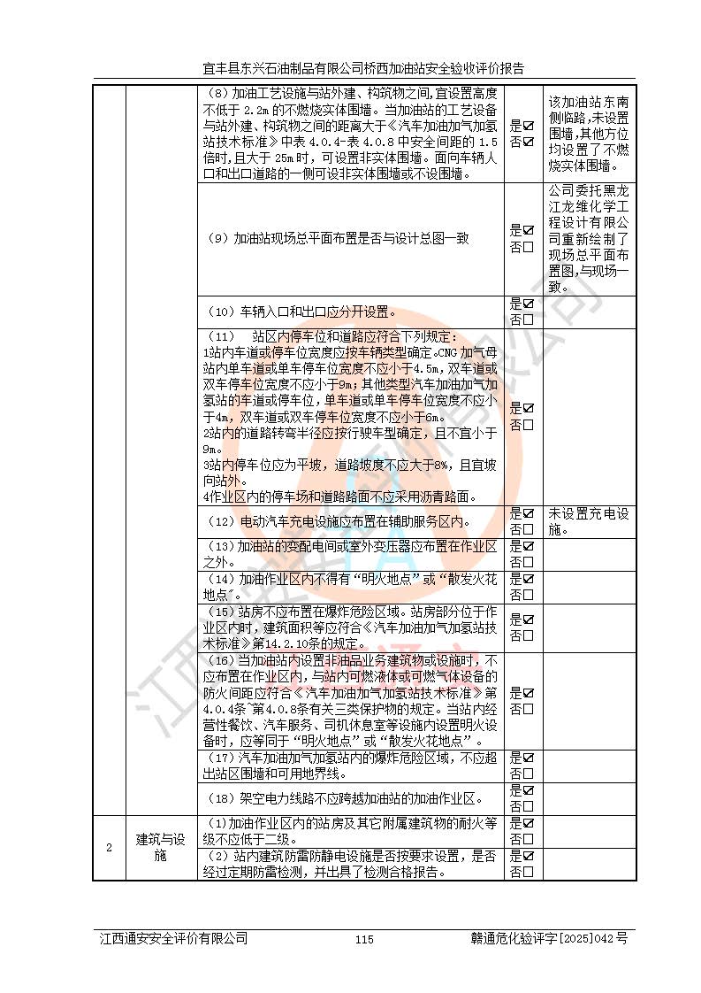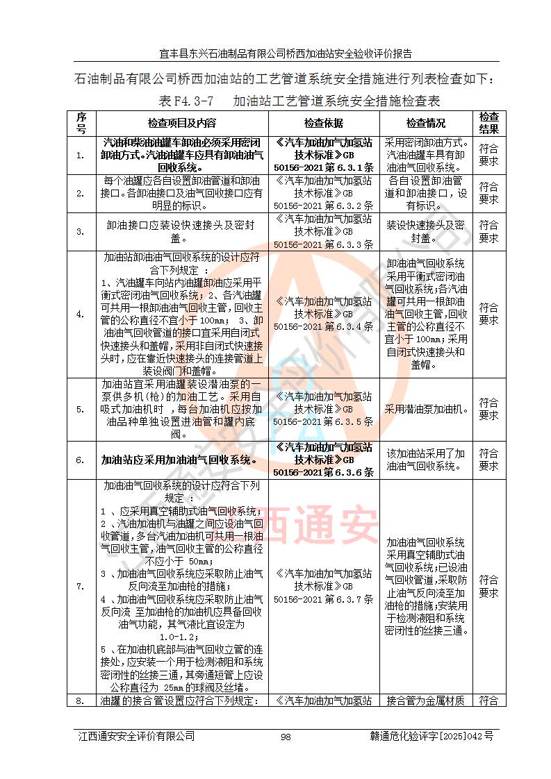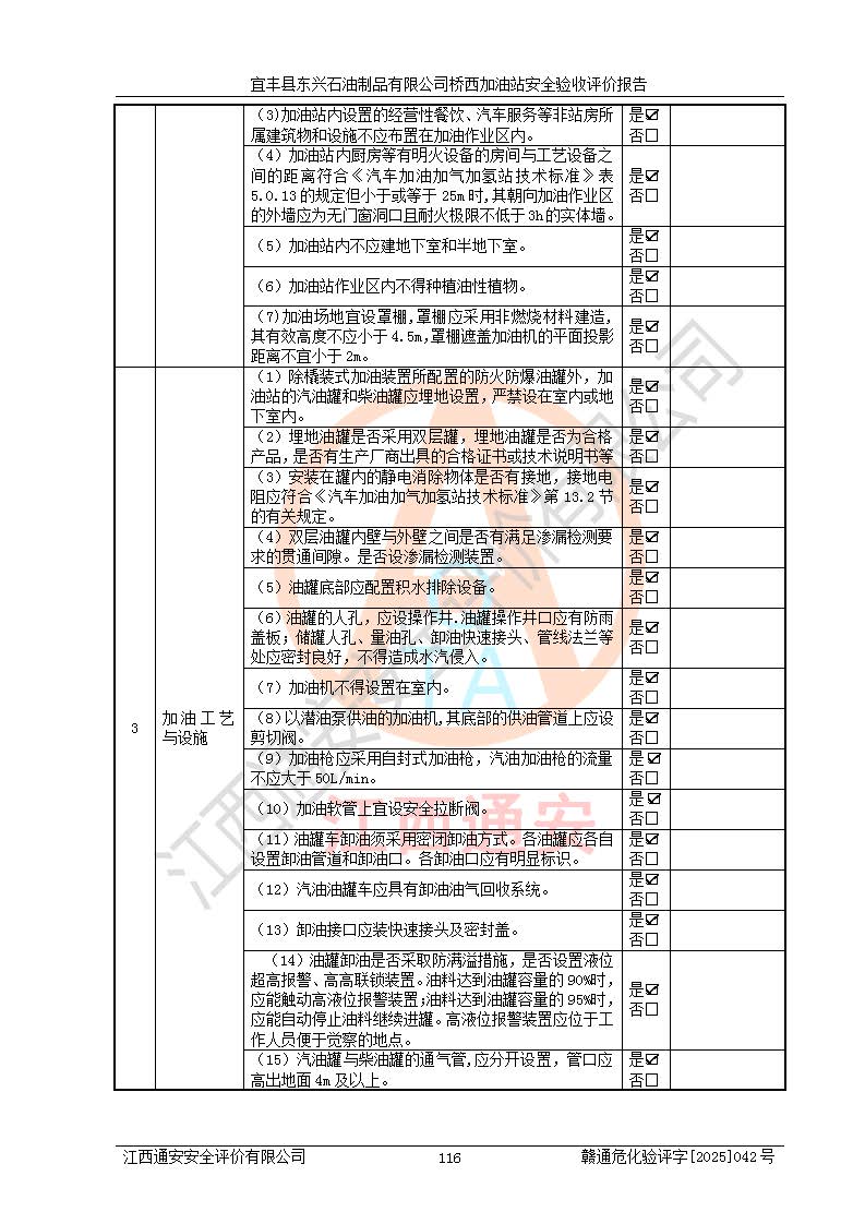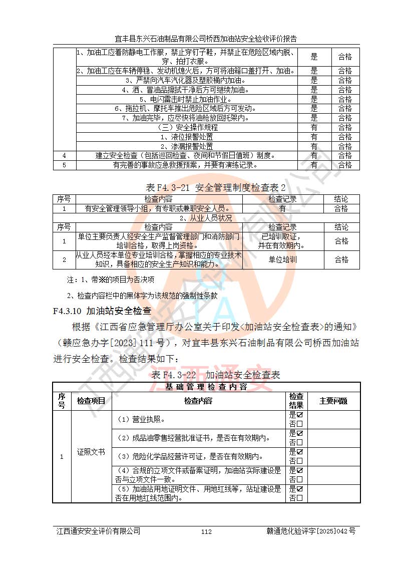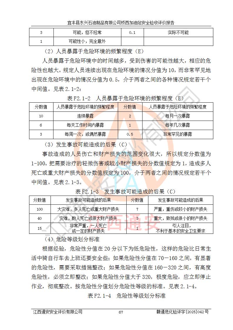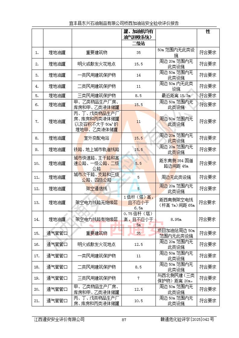 項(xiàng)目名稱 | 宜豐縣東興石油制品有限公司橋西加油站安全驗(yàn)收評(píng)價(jià) | ||||