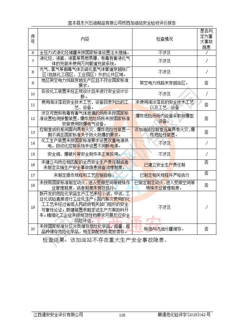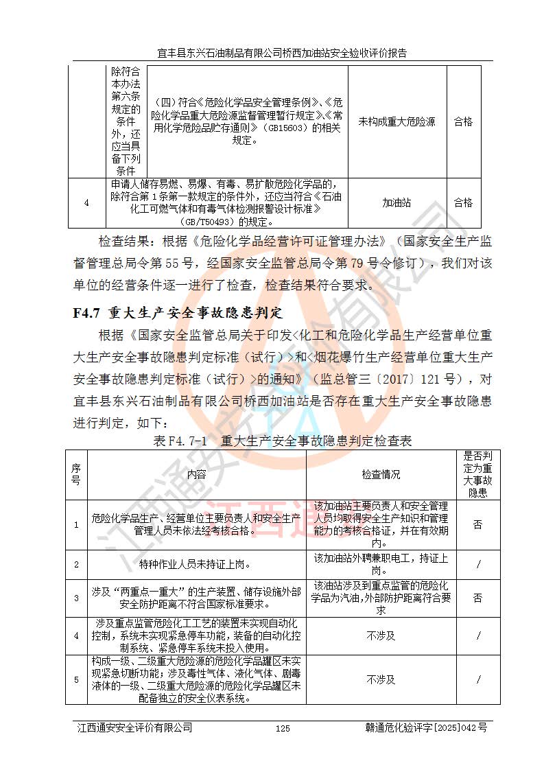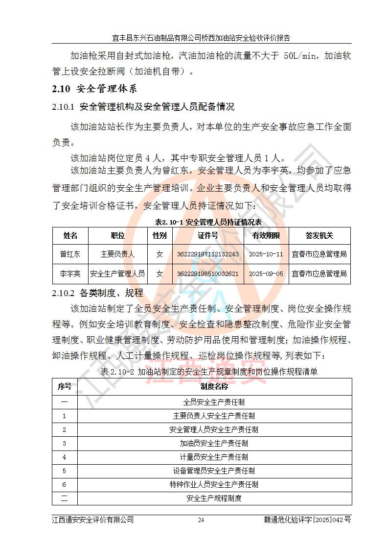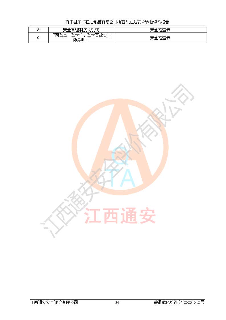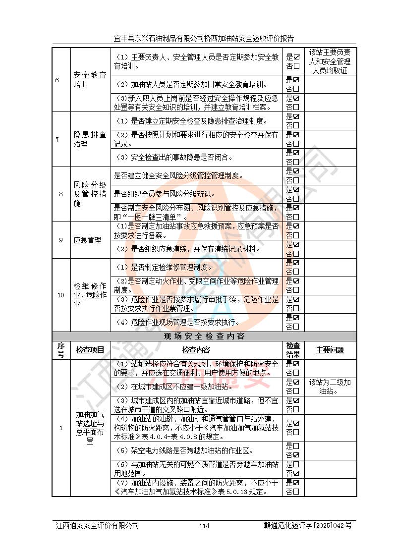 項(xiàng)目名稱 | 宜豐縣東興石油制品有限公司橋西加油站安全驗(yàn)收評(píng)價(jià) | ||||