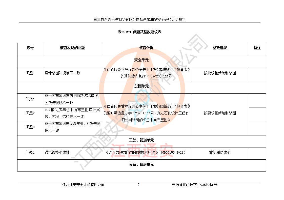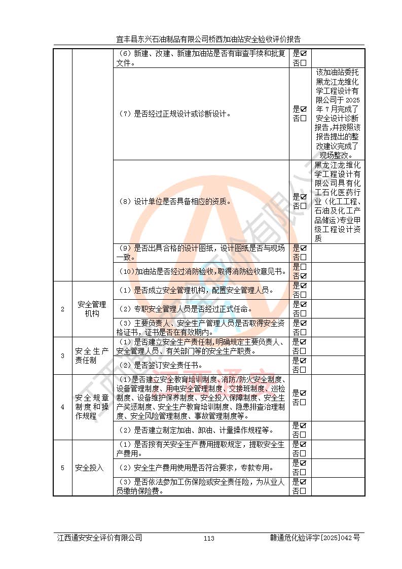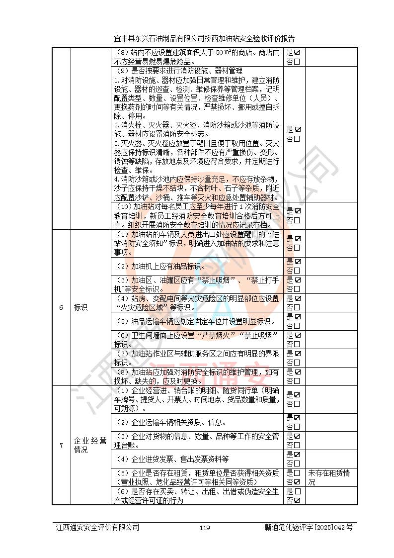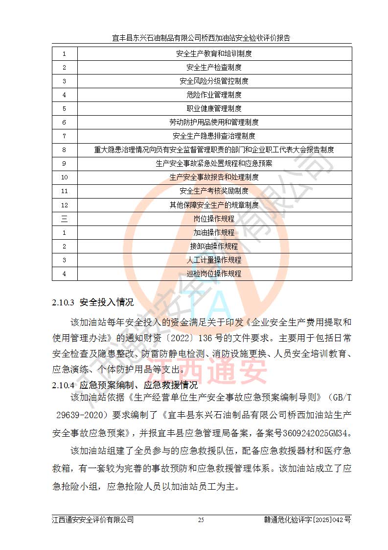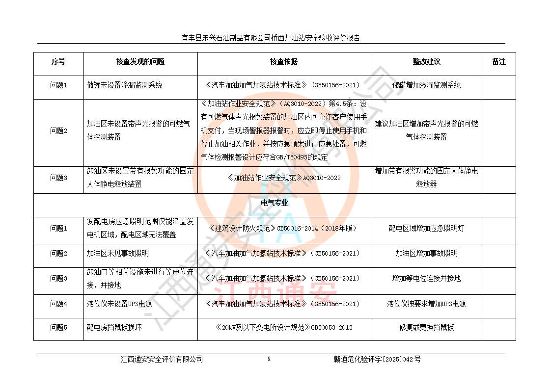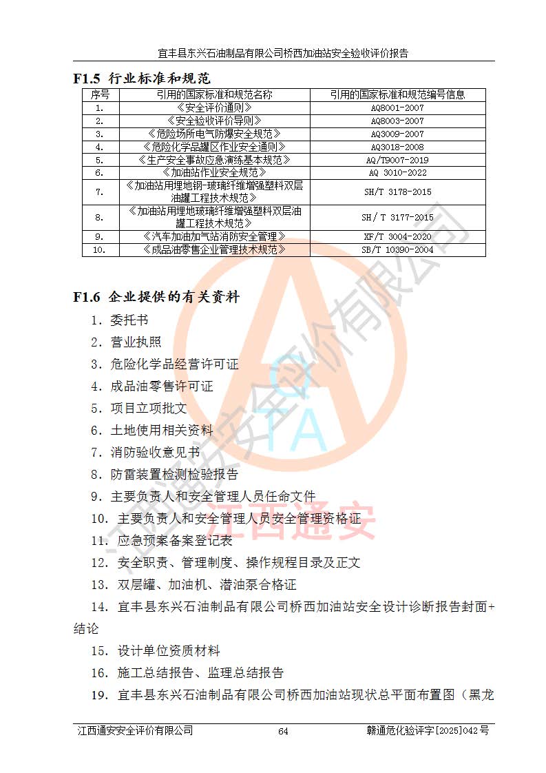 項(xiàng)目名稱 | 宜豐縣東興石油制品有限公司橋西加油站安全驗(yàn)收評(píng)價(jià) | ||||