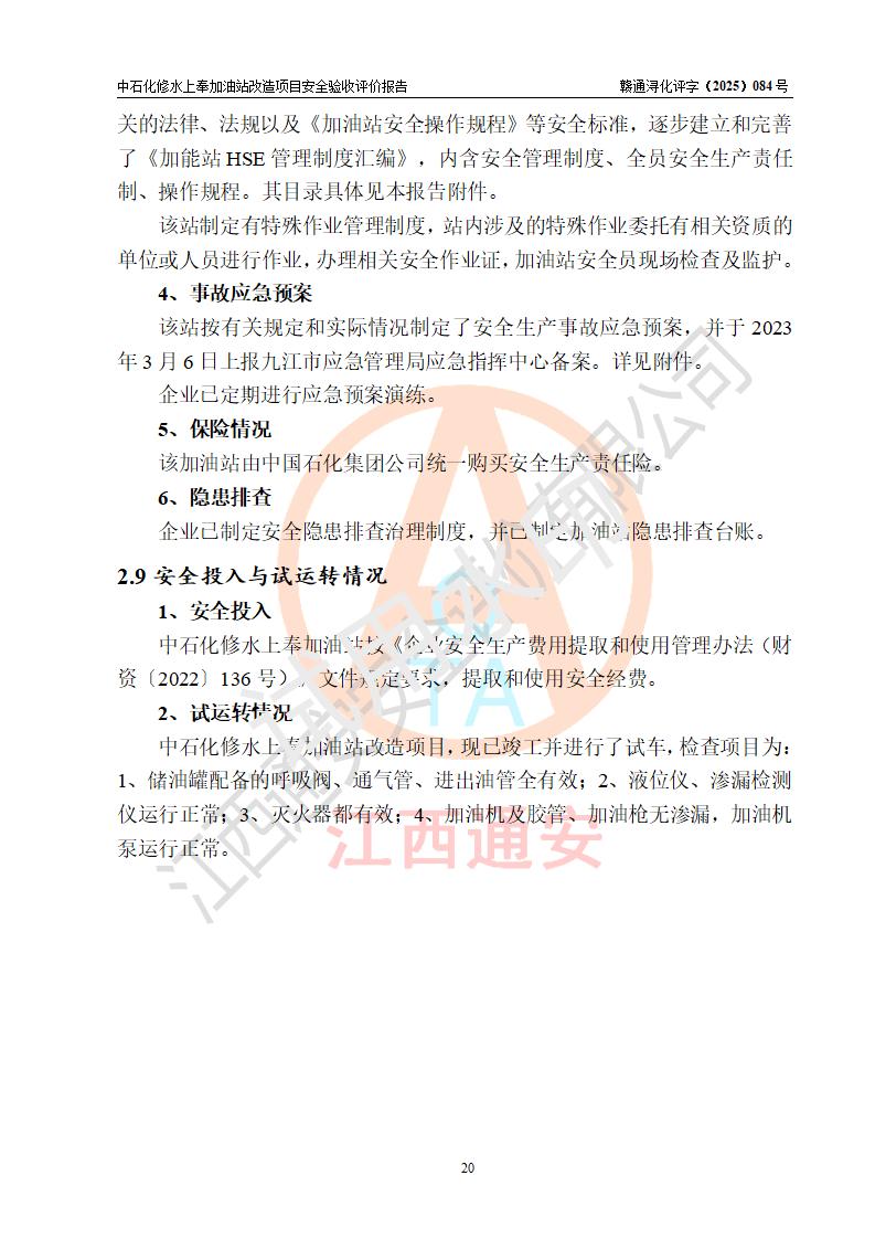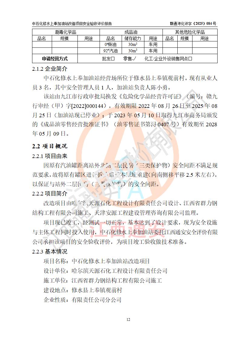 評價報告名稱 | 中國石化銷售股份有限公司江西九江修水石油分公司上奉加油站改造項目安全驗收評價報告 | |||