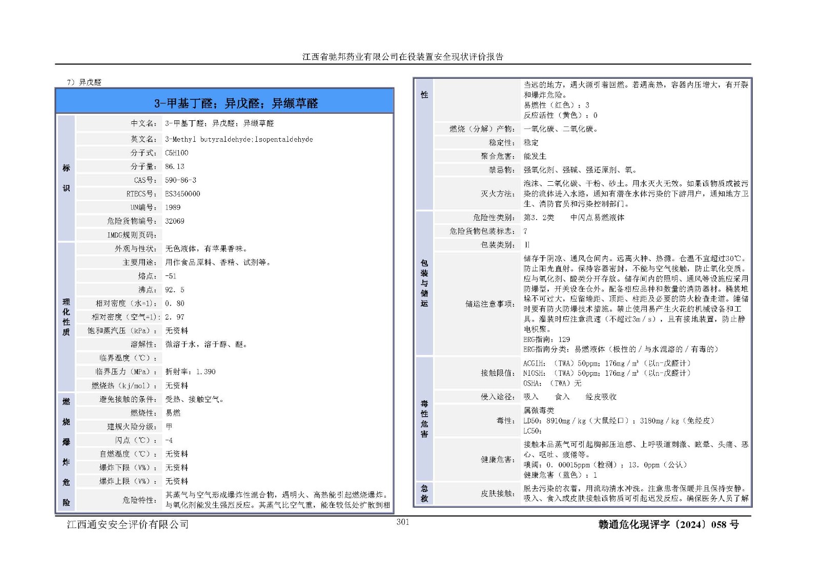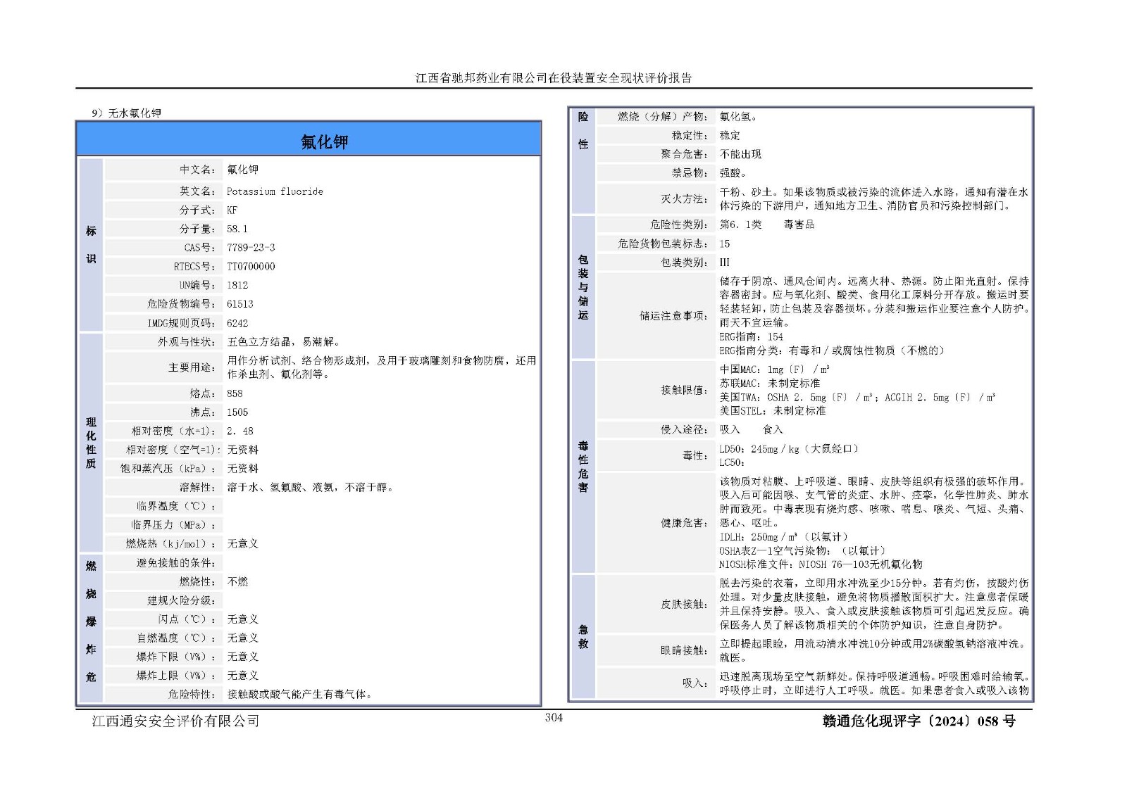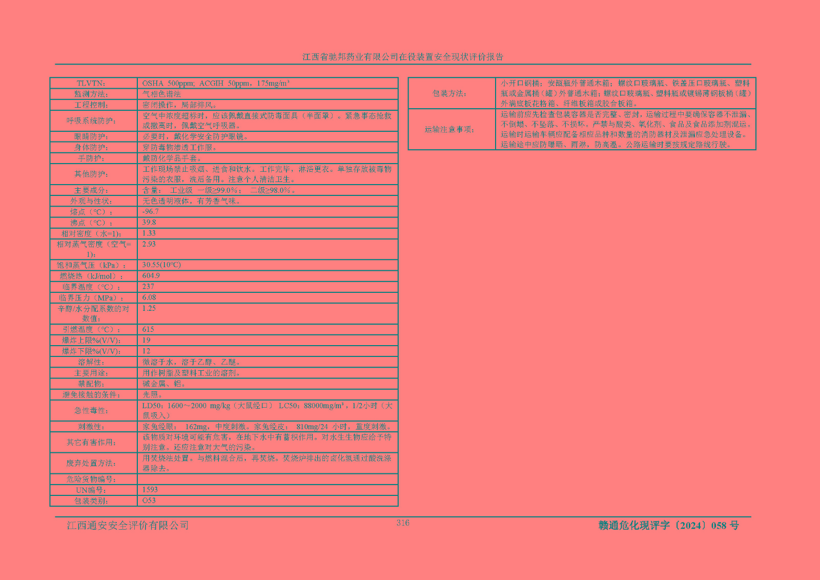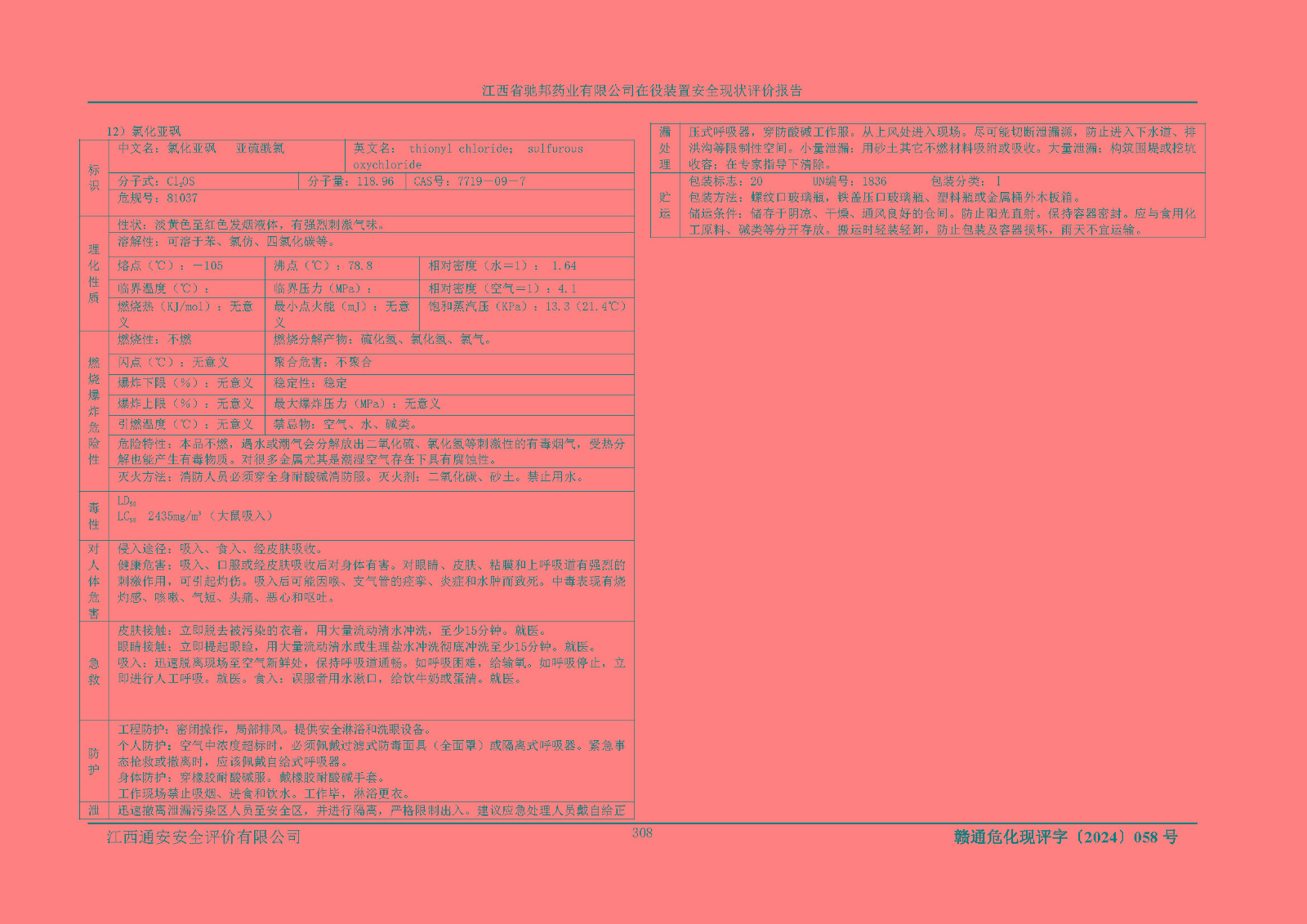 項目簡介 | 江西省馳邦藥業(yè)有限公司(以下簡稱“該公司”)成立于2007年9月21日,位于江西省吉安市峽江縣巴邱鎮(zhèn)何家坪,屬有限責任公司(自然人投資或控股),法定**人:徐小海,注冊資金:貳仟萬元整,經(jīng)營范圍:醫(yī)藥中間體生產(chǎn)銷售及進出口業(yè)務(涉及前置許可的憑許可證經(jīng)營)。占地面積約149322.9㎡,現(xiàn)有人員194人。 2022年3月24日該公司進行了延期換證,取得了新的《安全生產(chǎn)許可證》,許可證編號:(贛)WH安許證字〔2010〕573號,許可范圍:三苯基膦(3.3kt/a)、(左)氧氟環(huán)合酯(150t/a)、(左)氧氟沙星(100t/a)、(左)氧氟羧酸(150t/a)、鹽酸美金剛(5t/a)、(1S,4R)-cis-4-氨基-2-環(huán)戊烯-1-甲醇(10t/a,阿巴卡韋中間體)、2-甲氧基乙氧基甲基氯(200t/a,僅精制提純)、三苯基氧膦(500t/a)、2-羧乙基-5-甲基-2-己烯酸乙酯(20t/a),**期:2022年3月24日至2025年3月23日。 根據(jù)《危險化學品目錄》(2015版)和應急管理部 工業(yè)和信息化部 公安部 生態(tài)環(huán)境部 交通運輸部 農(nóng)業(yè)農(nóng)村部 衛(wèi)生健康委 市場監(jiān)管總局 鐵路局 民航局公告2022年第8號《決定調整《危險化學品目錄(2015版)》,將“1674柴油〔閉杯閃點≤60℃〕”調整為“1674柴油”》等文件規(guī)定,該在役生產(chǎn)裝置生產(chǎn)過程中涉及的四氫呋喃、甲苯、氯苯、三氯化磷、鎂屑、甲醇、硫酸、氫氧化鈉(片堿和液堿)、鹽酸、乙酸乙酯、乙醇、異戊醛、三正丙胺、正己烷、無水氟化鉀、三乙胺、冰醋酸、N,N-二甲基甲酰胺(DMF)、乙腈、氯仿、醋酸酐、雙氧水、二氯甲烷、氯化亞砜、三苯基膦(產(chǎn)品)、氮氣(壓縮)、柴油(發(fā)電機、叉車用)等屬于危險化學品。其中三氯甲烷、醋酸酐為第二類易制毒化學品,甲苯、硫酸、鹽酸為第三類易制毒化學品;甲醇、甲苯、三氯化磷、氯苯、乙酸乙酯、三氯甲烷屬于重點監(jiān)管的危險化學品;甲醇、乙醇屬于特別管控危險化學品;三氯化磷、氯化亞砜為第三類監(jiān)控化學品;1-溴-3,5-二甲基金剛烷、四氫呋喃、甲基哌嗪、氯仿、醋酸酐、異戊醛、丙二酸二乙酯、四氟苯甲酰氯(四氟)、三乙胺、二甲基亞砜、乙二醇、乙酸乙酯、乙醇、甲苯、甲醇為第四類監(jiān)控化學品;鎂屑、雙氧水屬于易制爆化學品;氟化鉀屬于高毒物品。 | |||
