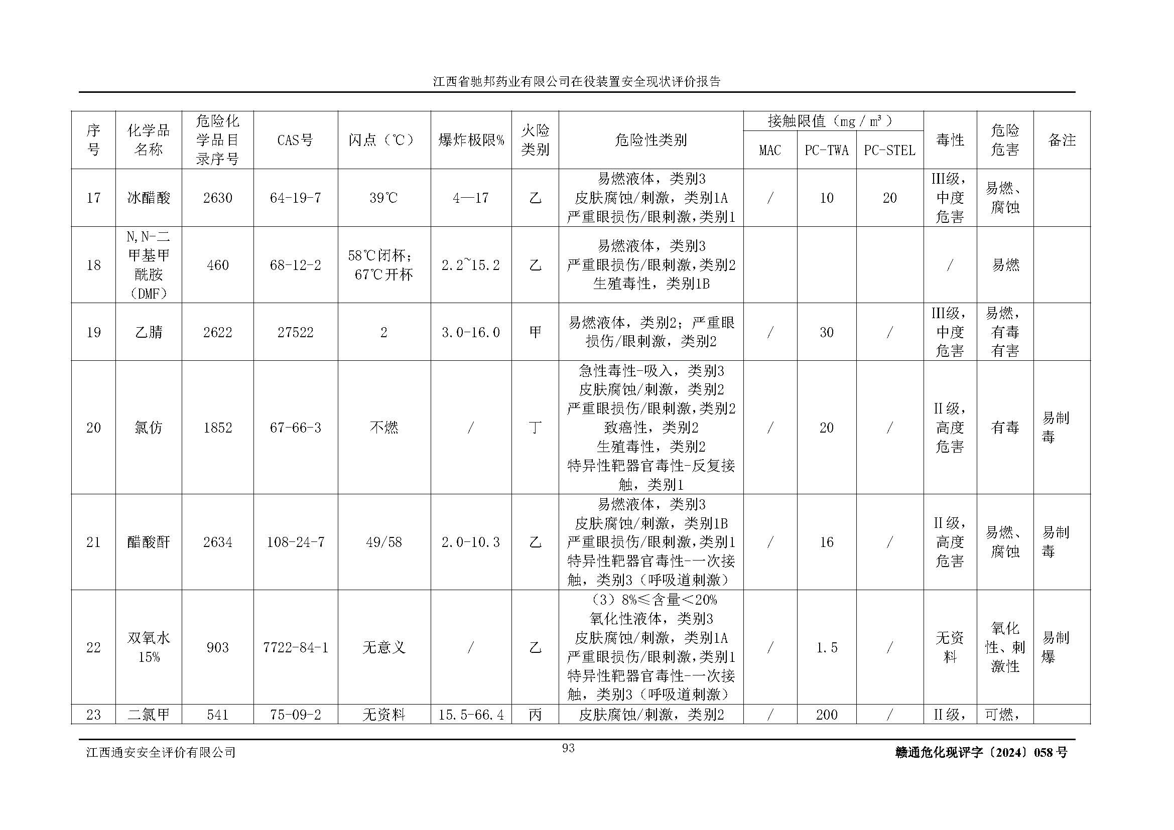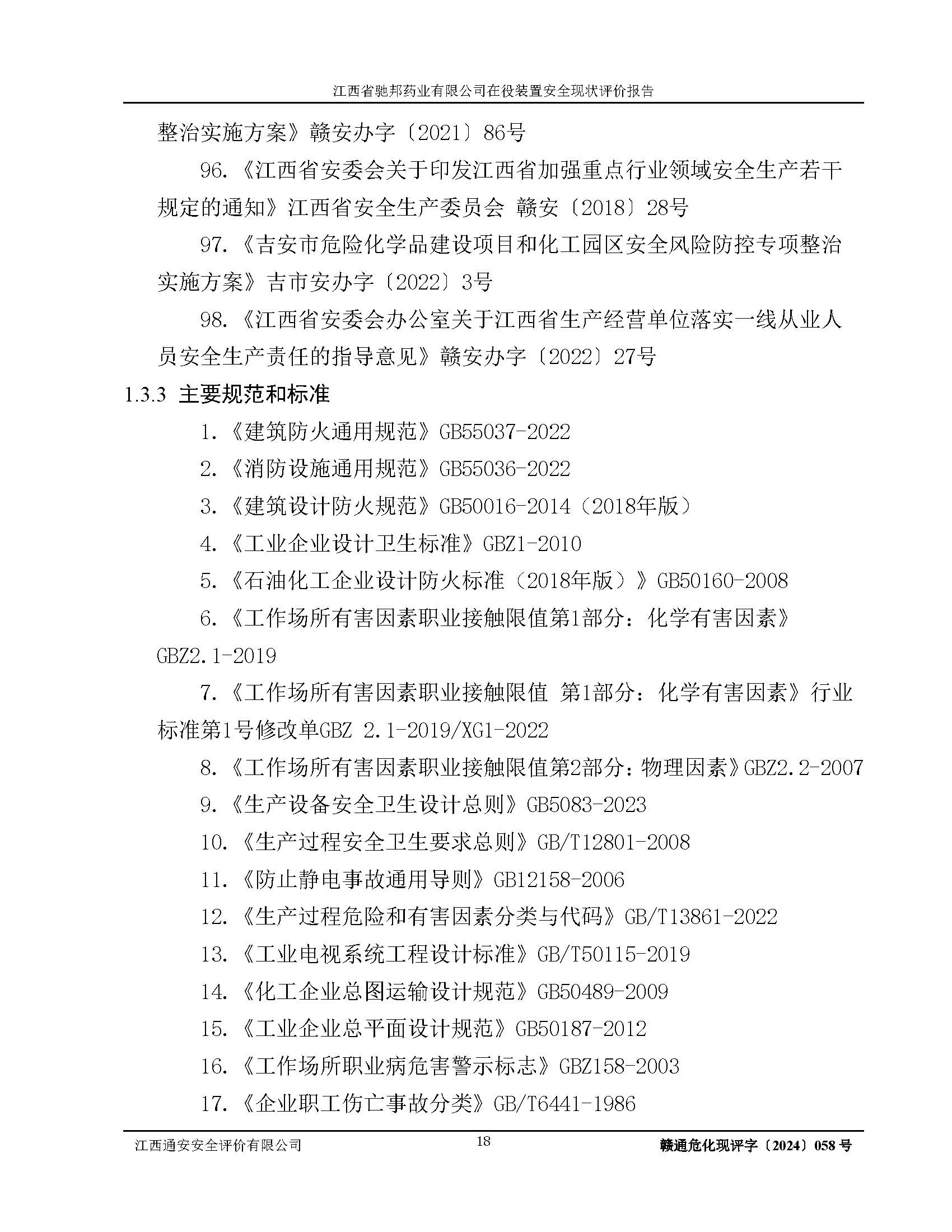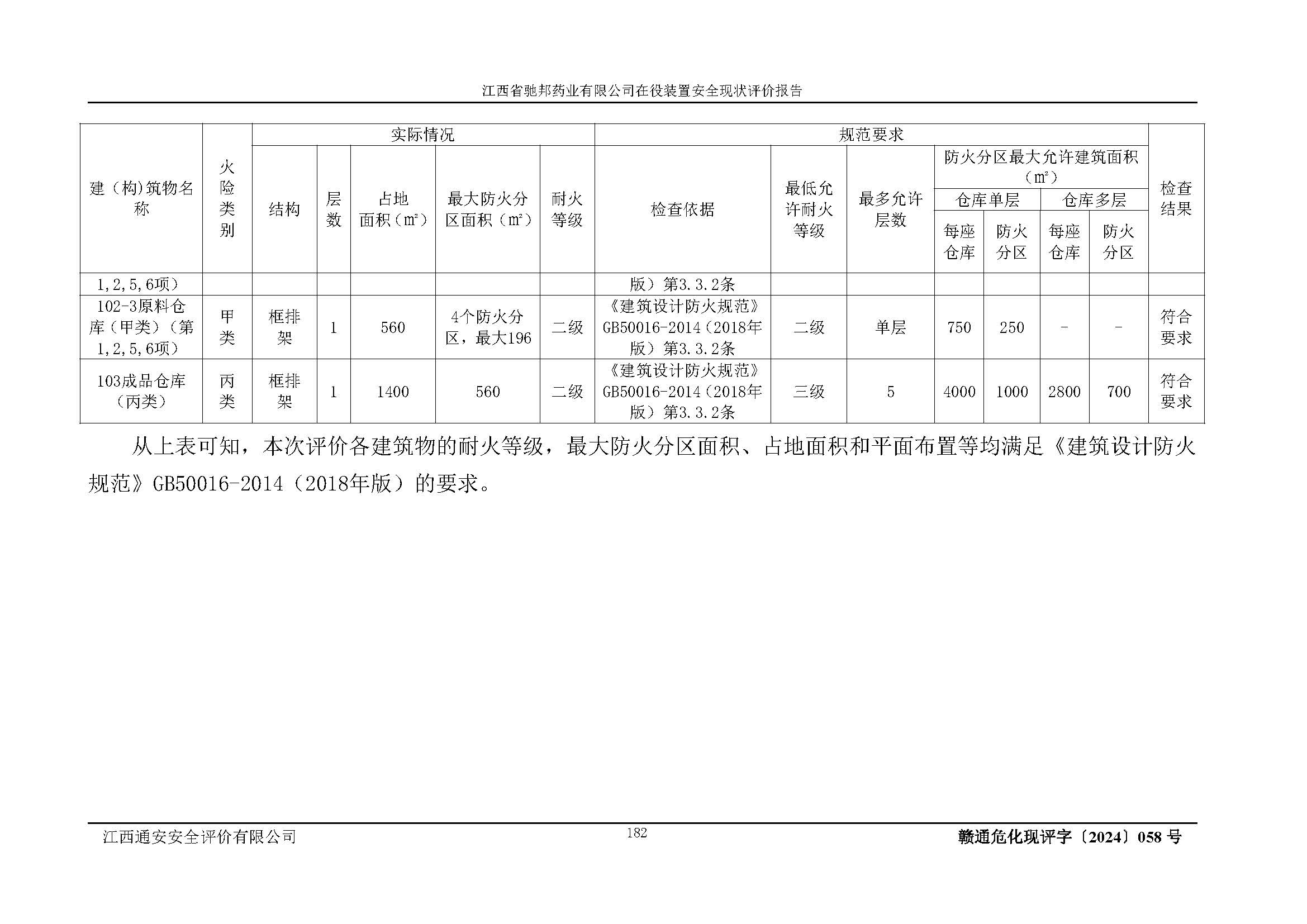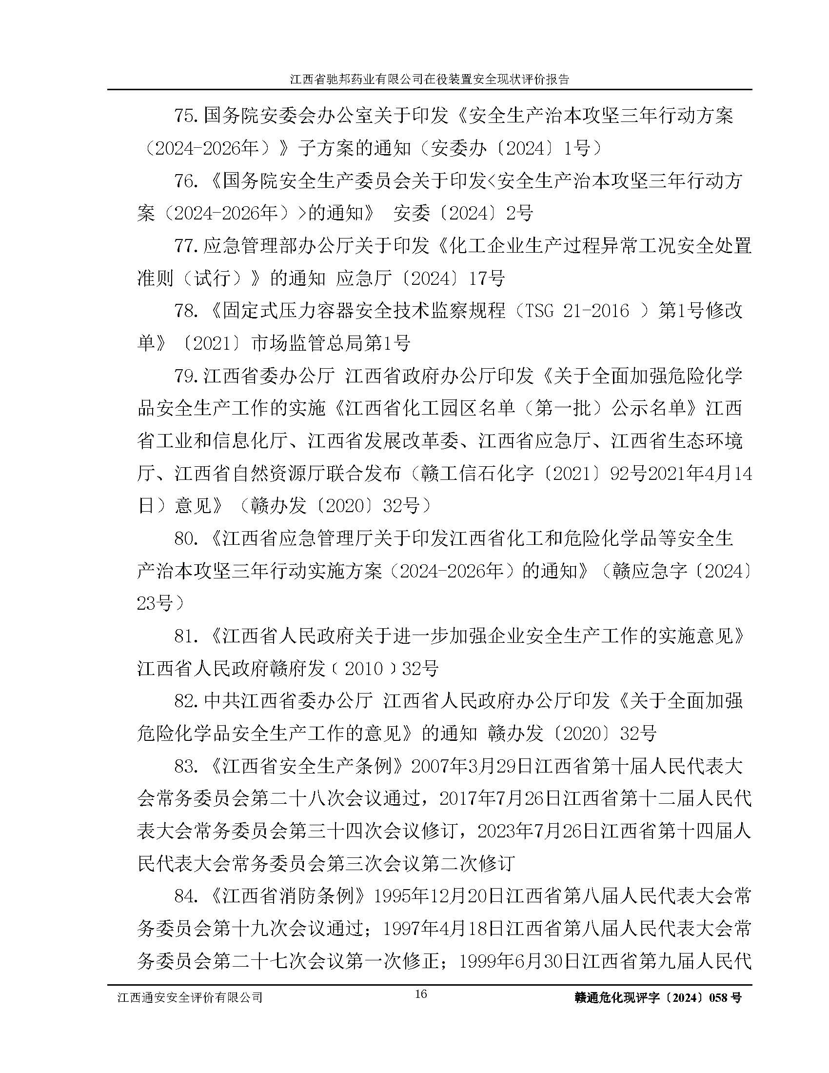 評價報告名稱 | 江西省馳邦藥業(yè)有限公司在役裝置安全現(xiàn)狀評價報告 | |||