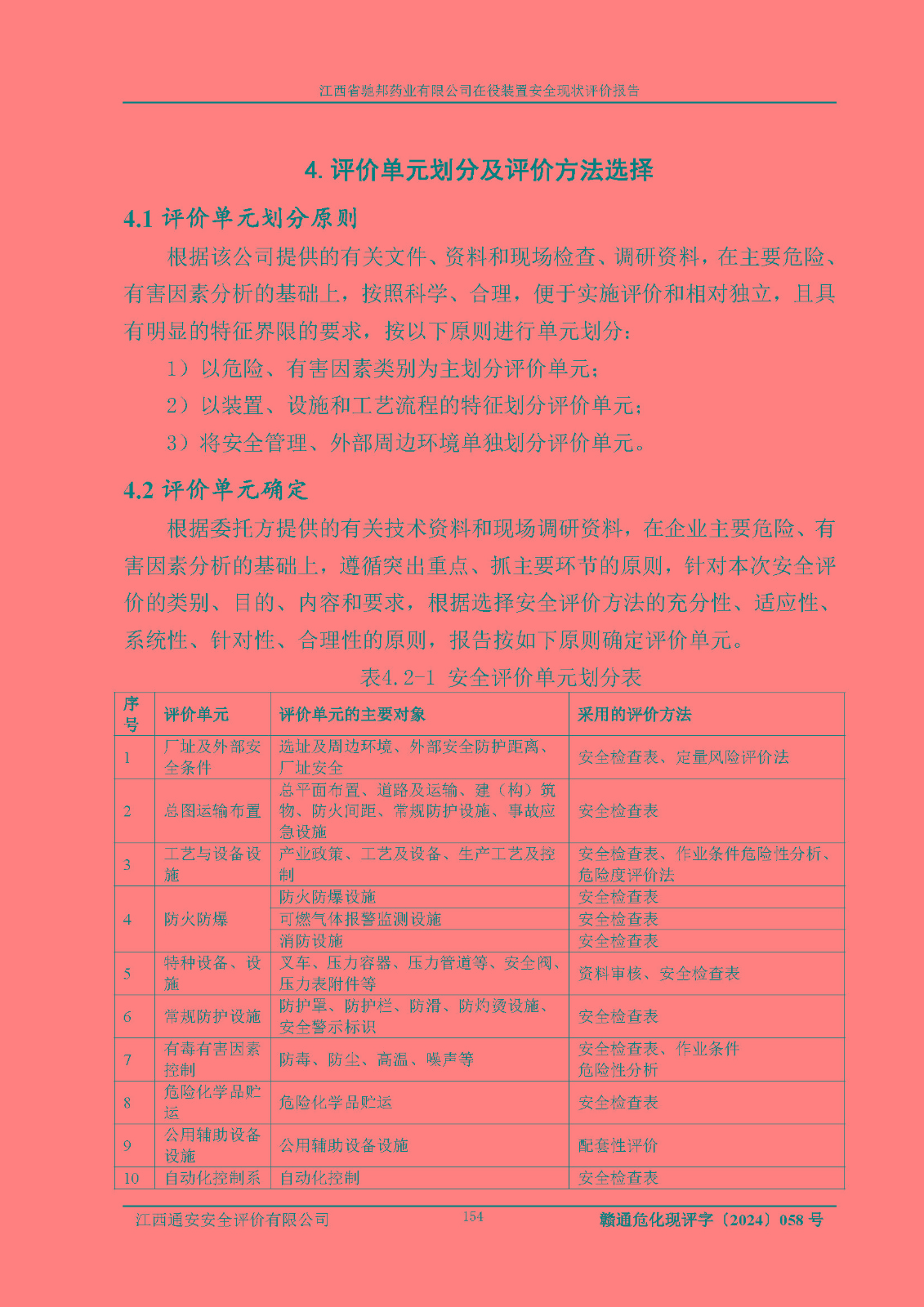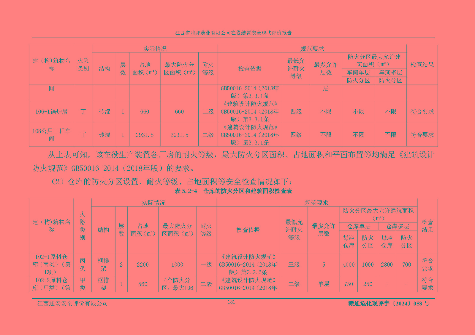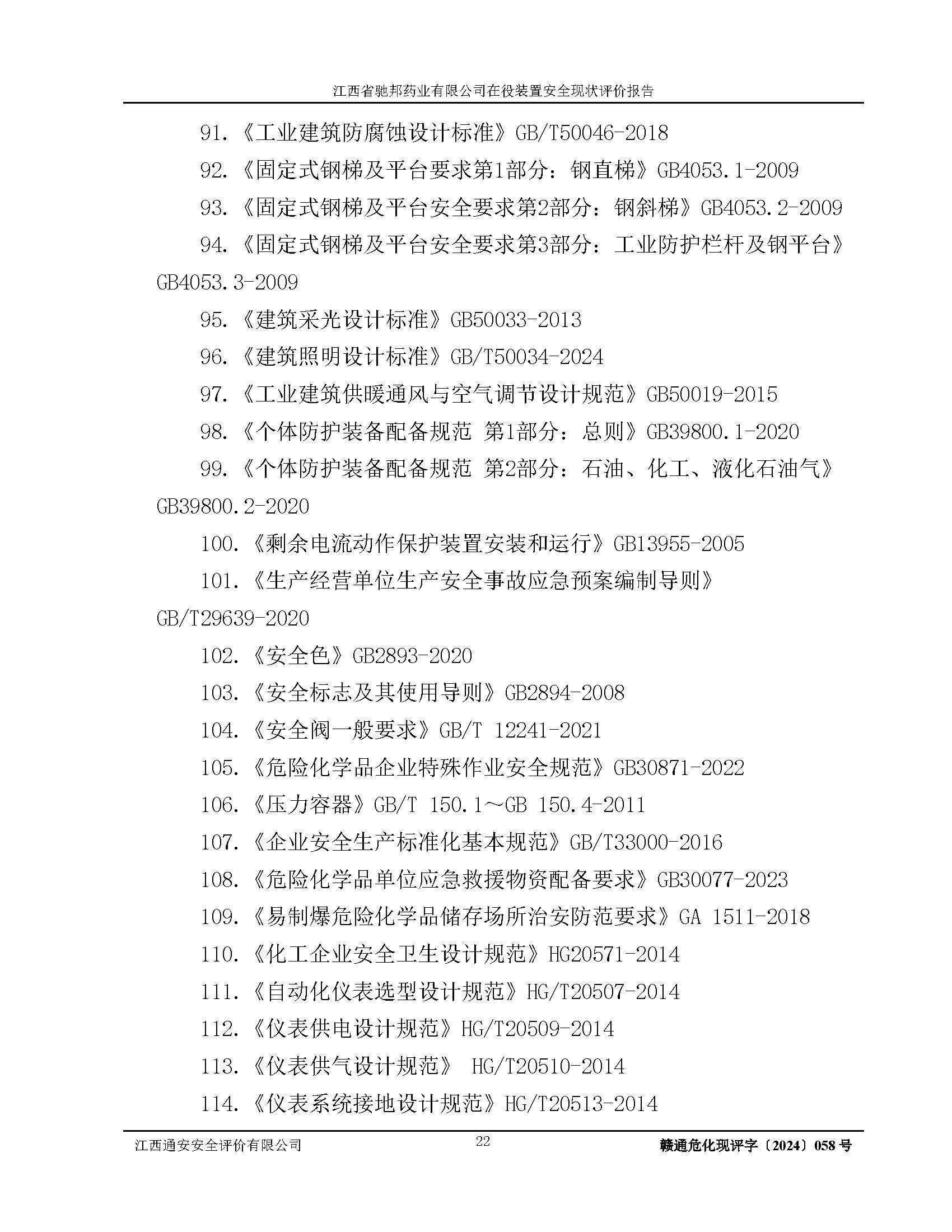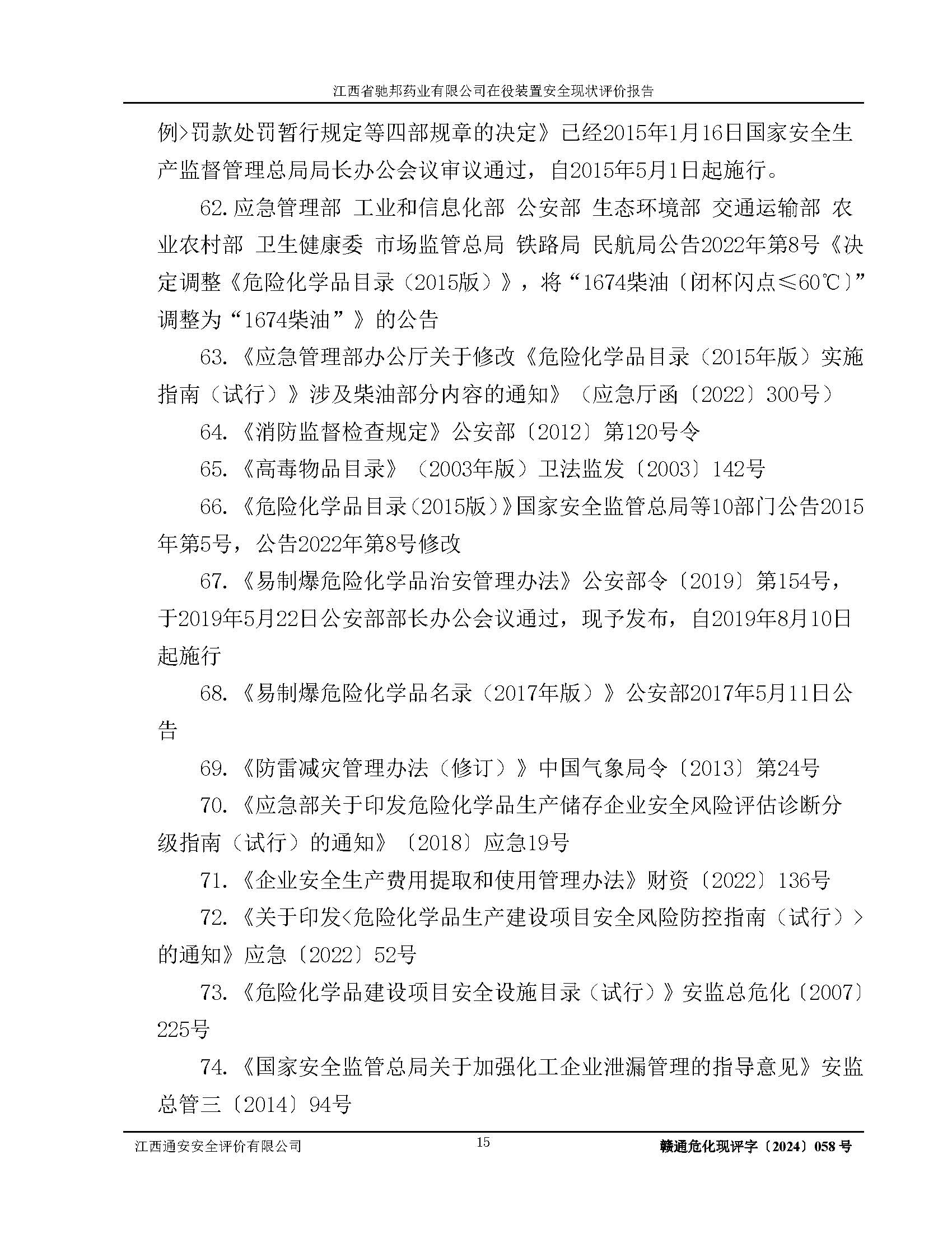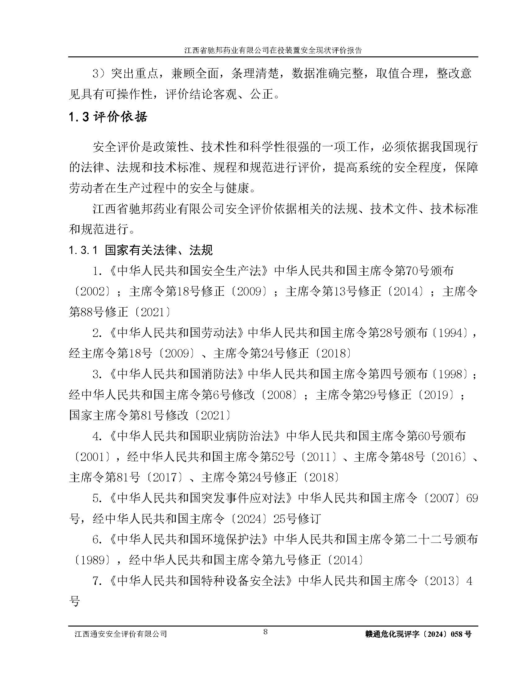評價報告名稱 | 江西省馳邦藥業(yè)有限公司在役裝置安全現(xiàn)狀評價報告 | |||