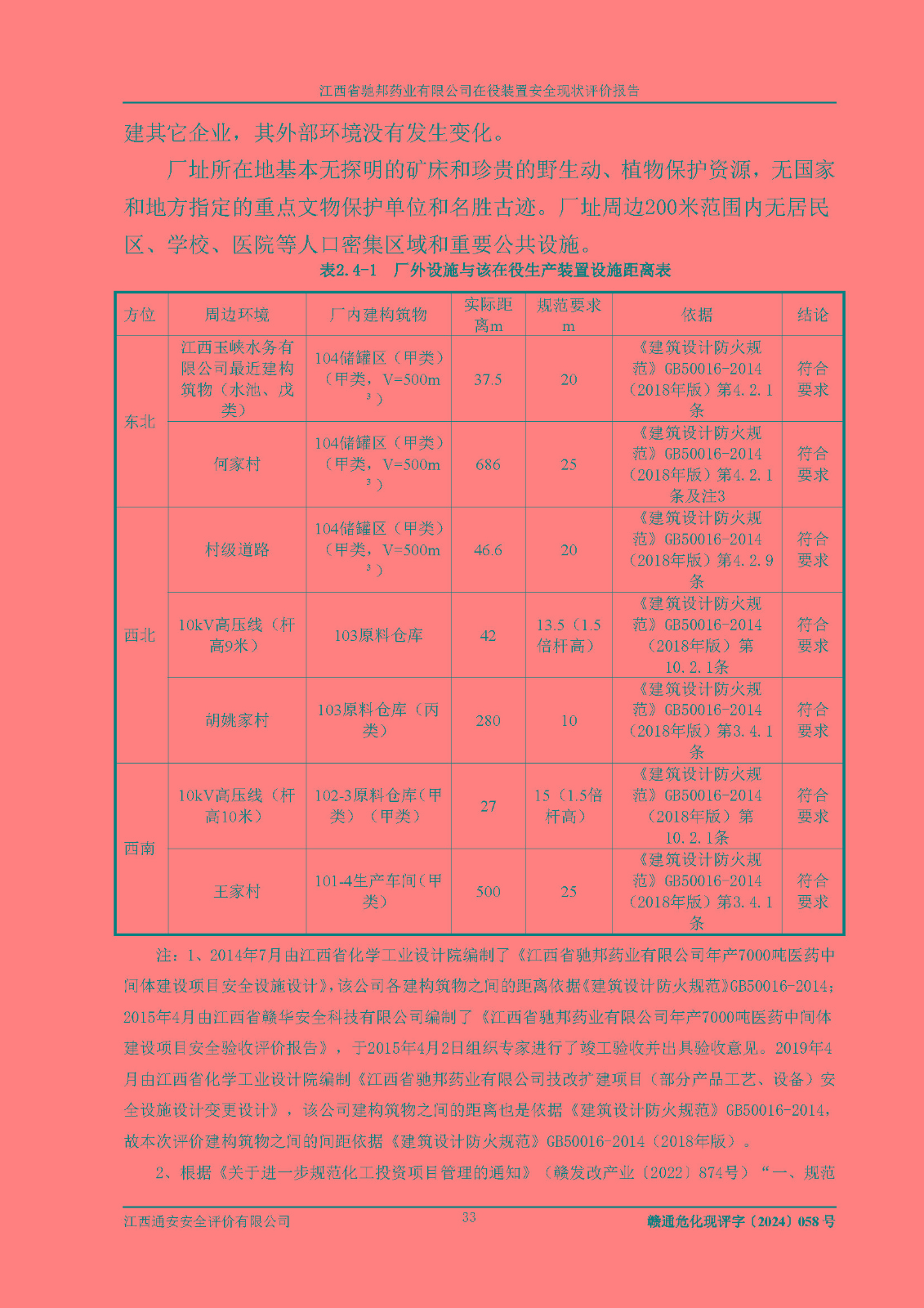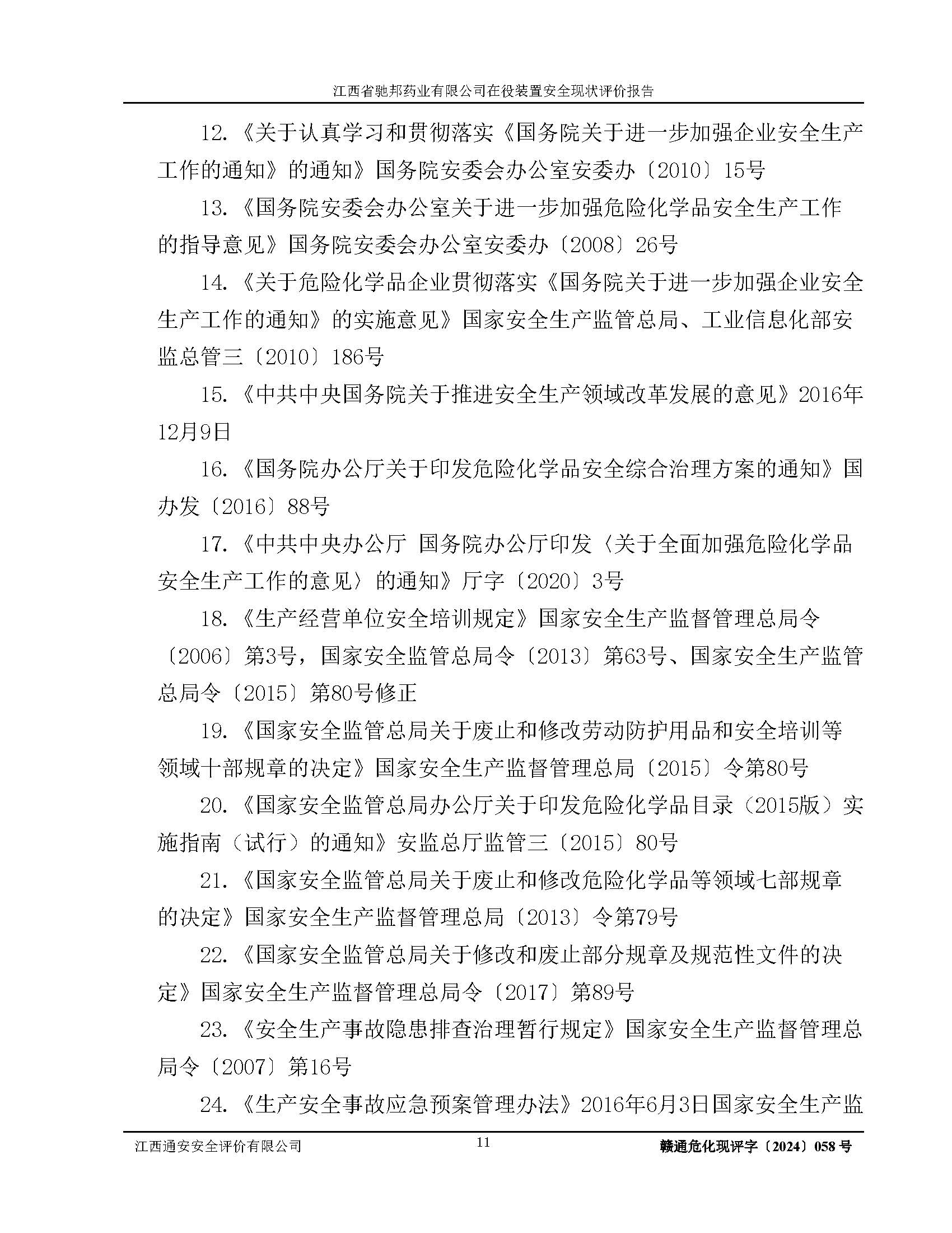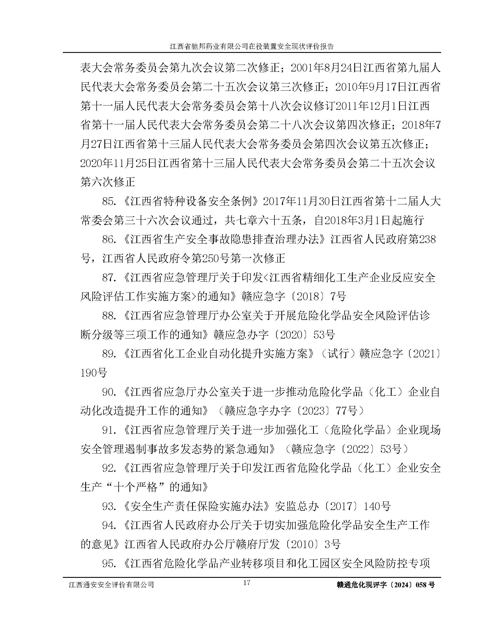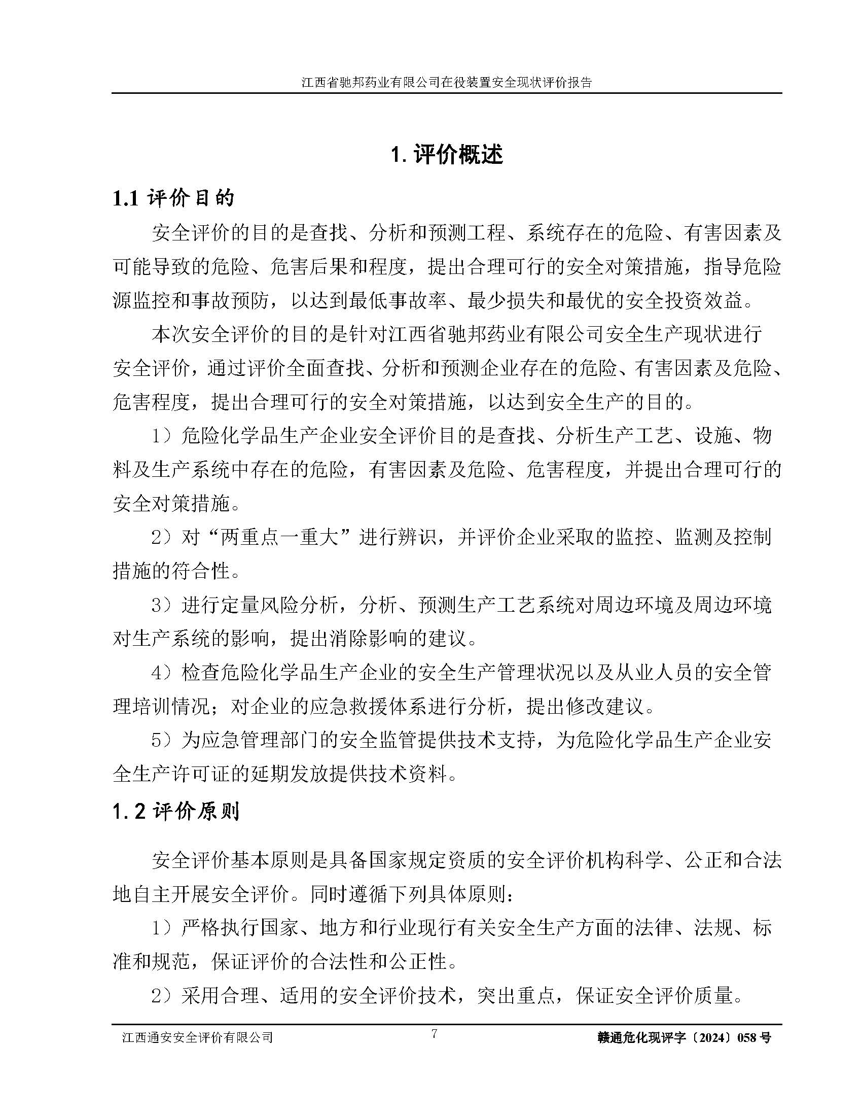 評價報告名稱 | 江西省馳邦藥業(yè)有限公司在役裝置安全現(xiàn)狀評價報告 | |||