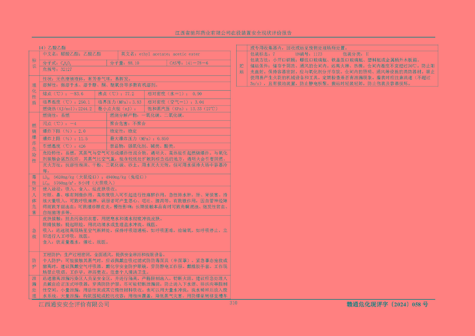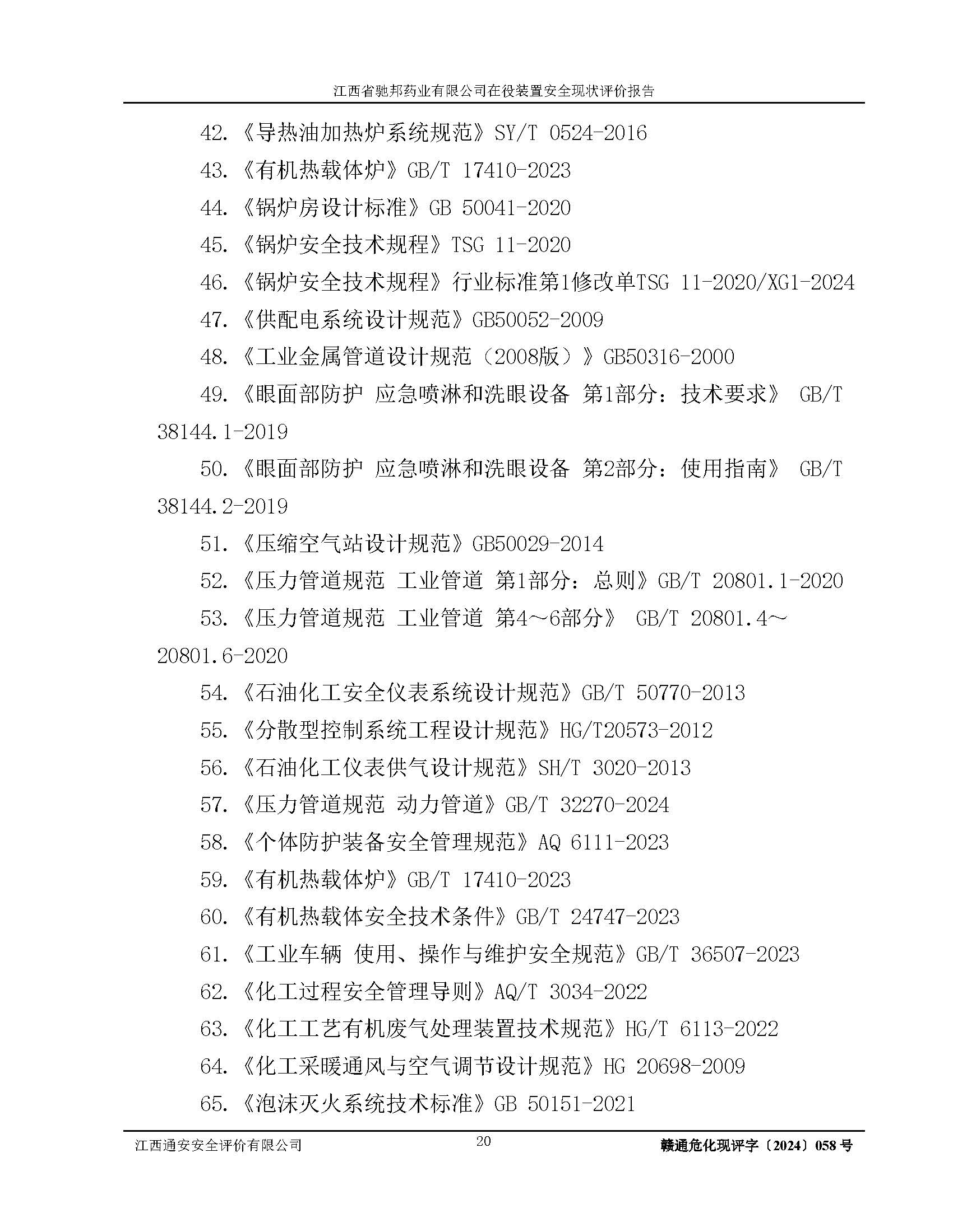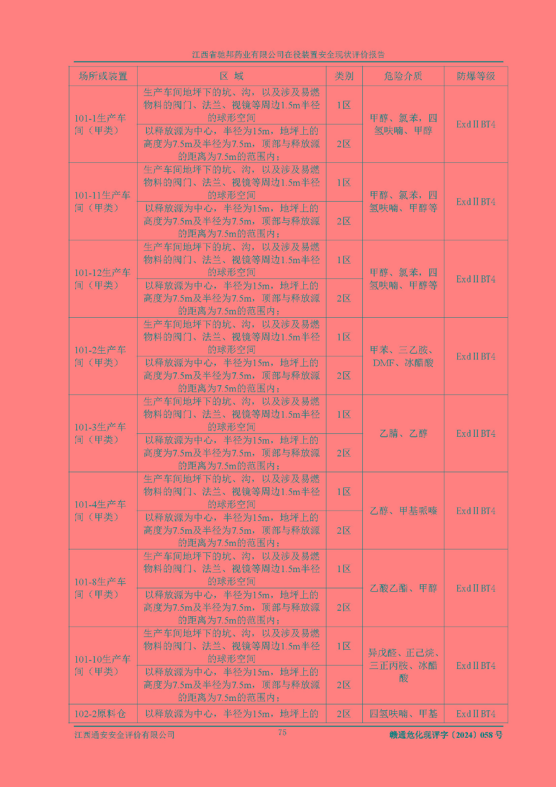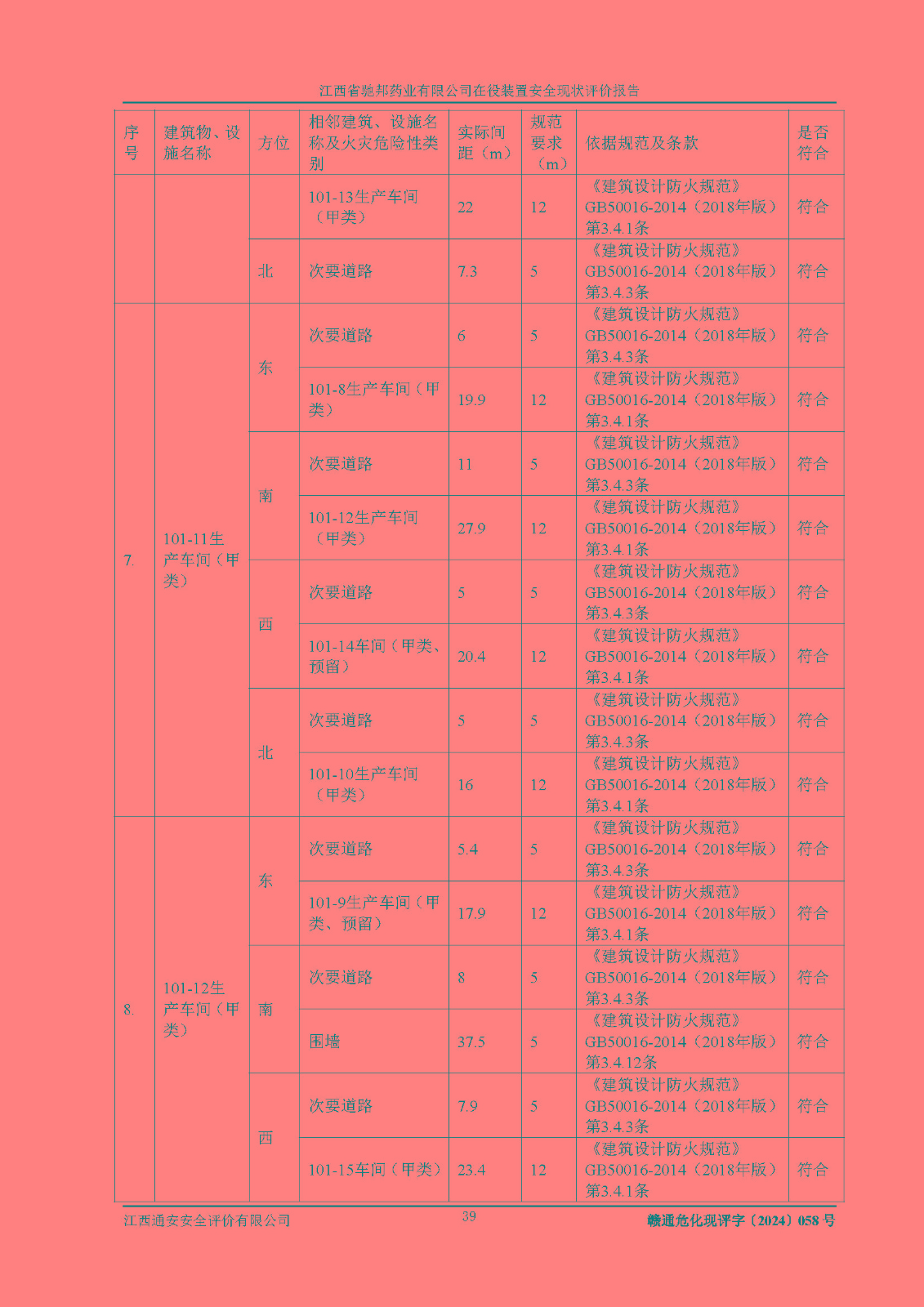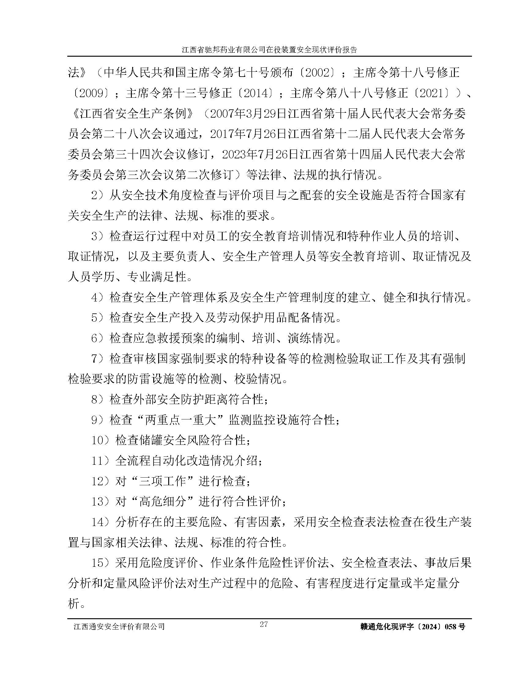 評價報告名稱 | 江西省馳邦藥業(yè)有限公司在役裝置安全現(xiàn)狀評價報告 | |||