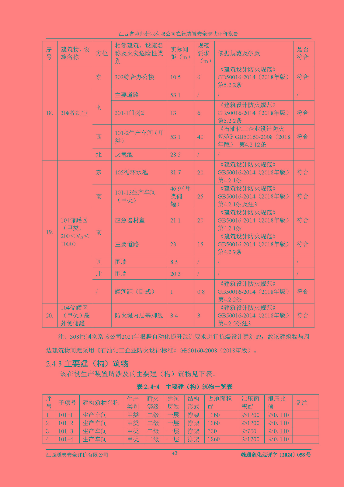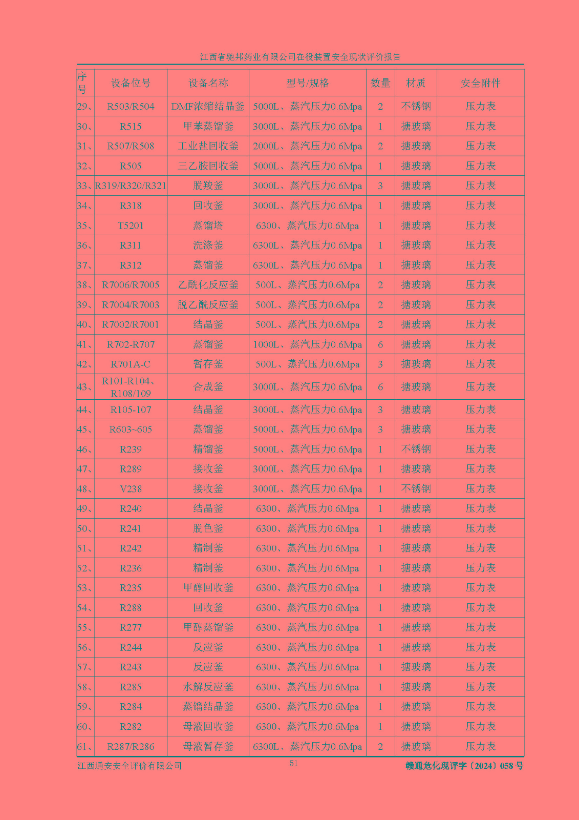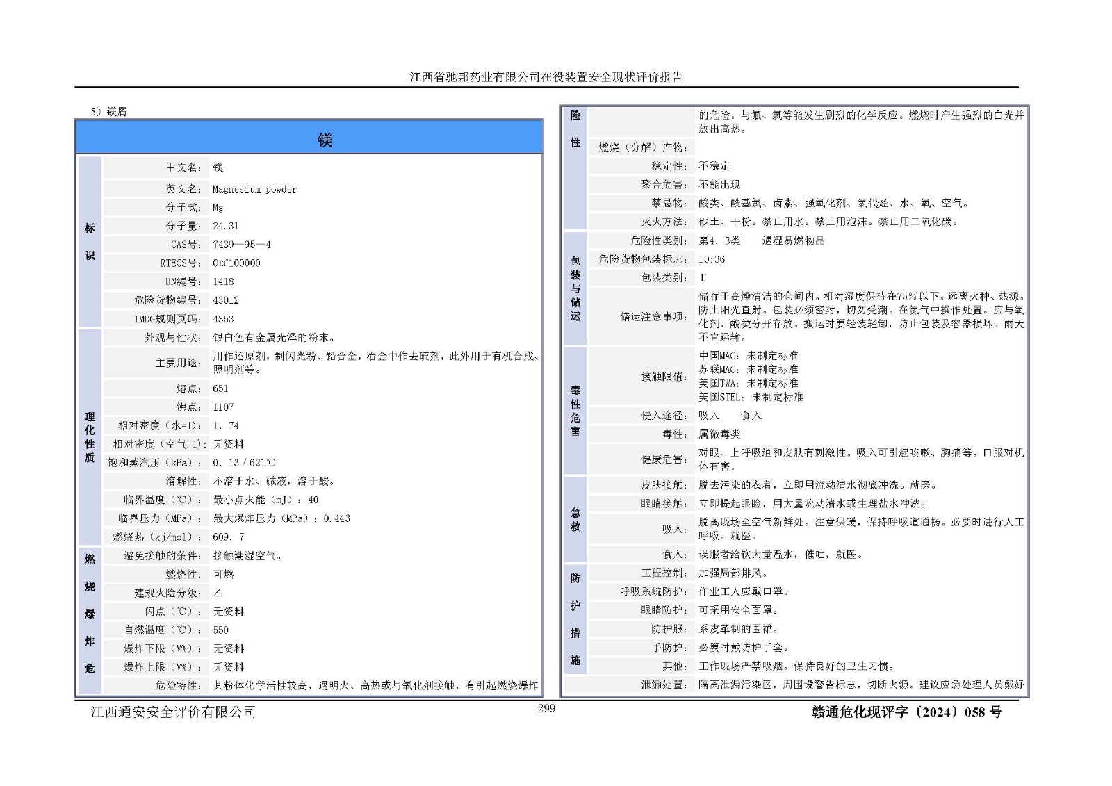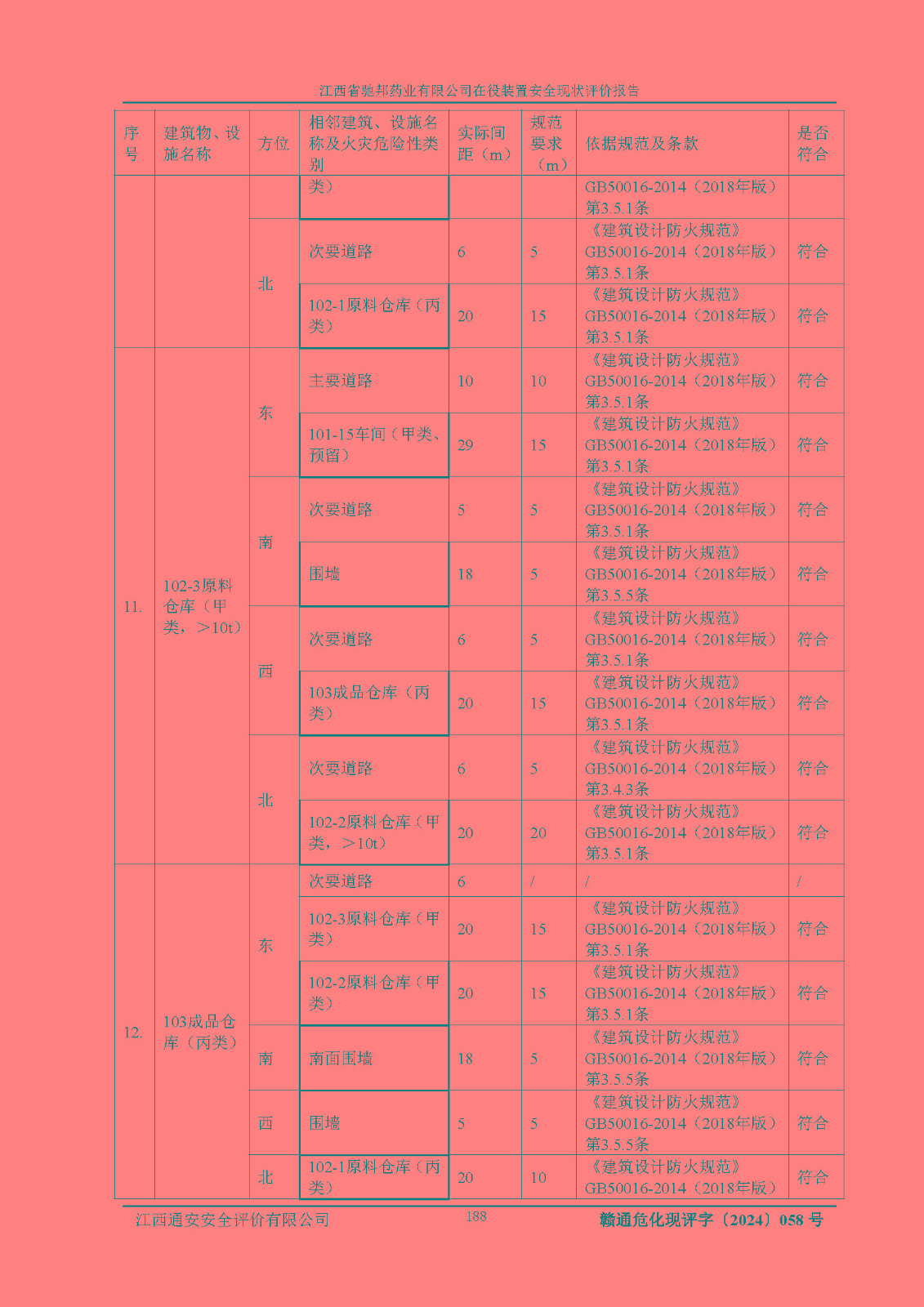 評價報告名稱 | 江西省馳邦藥業(yè)有限公司在役裝置安全現(xiàn)狀評價報告 | |||