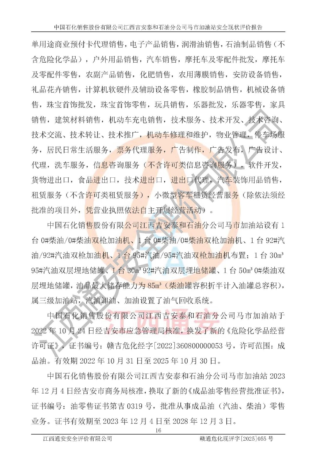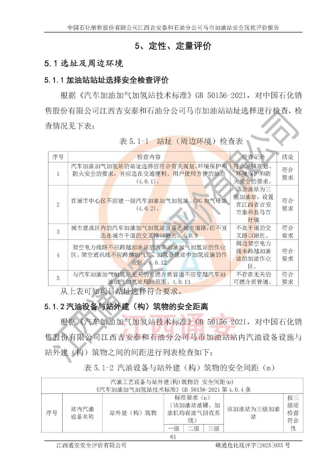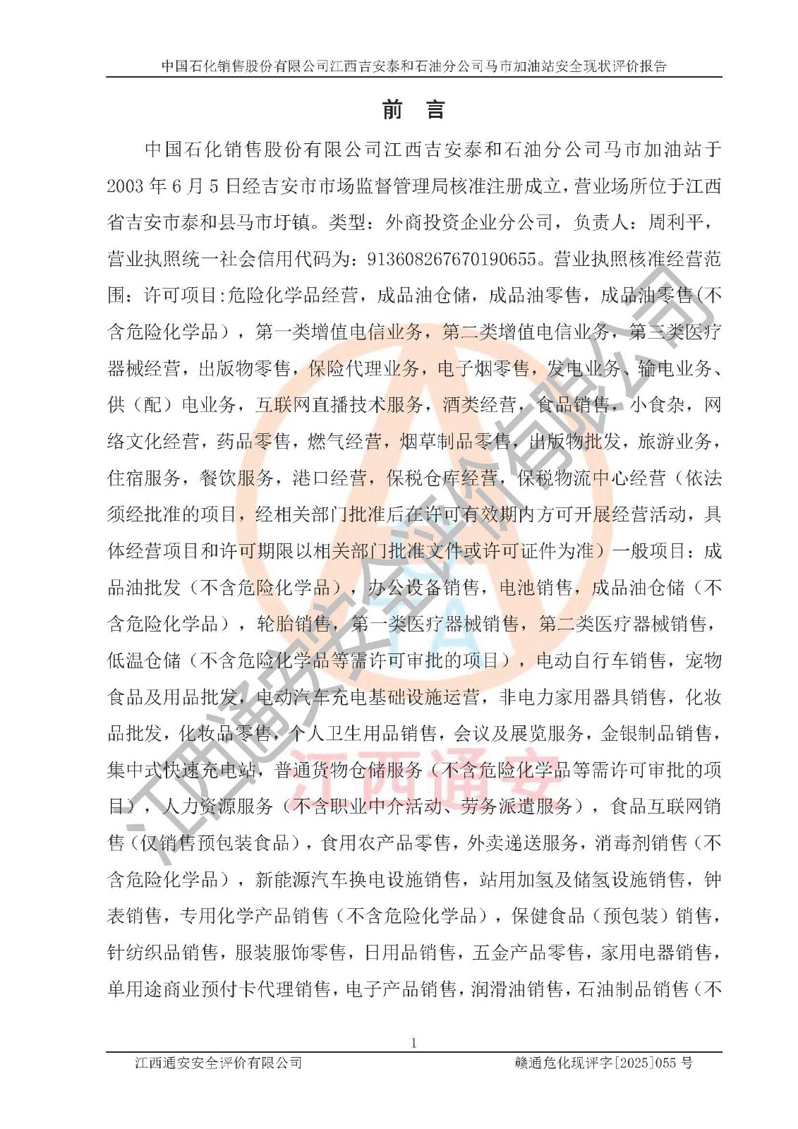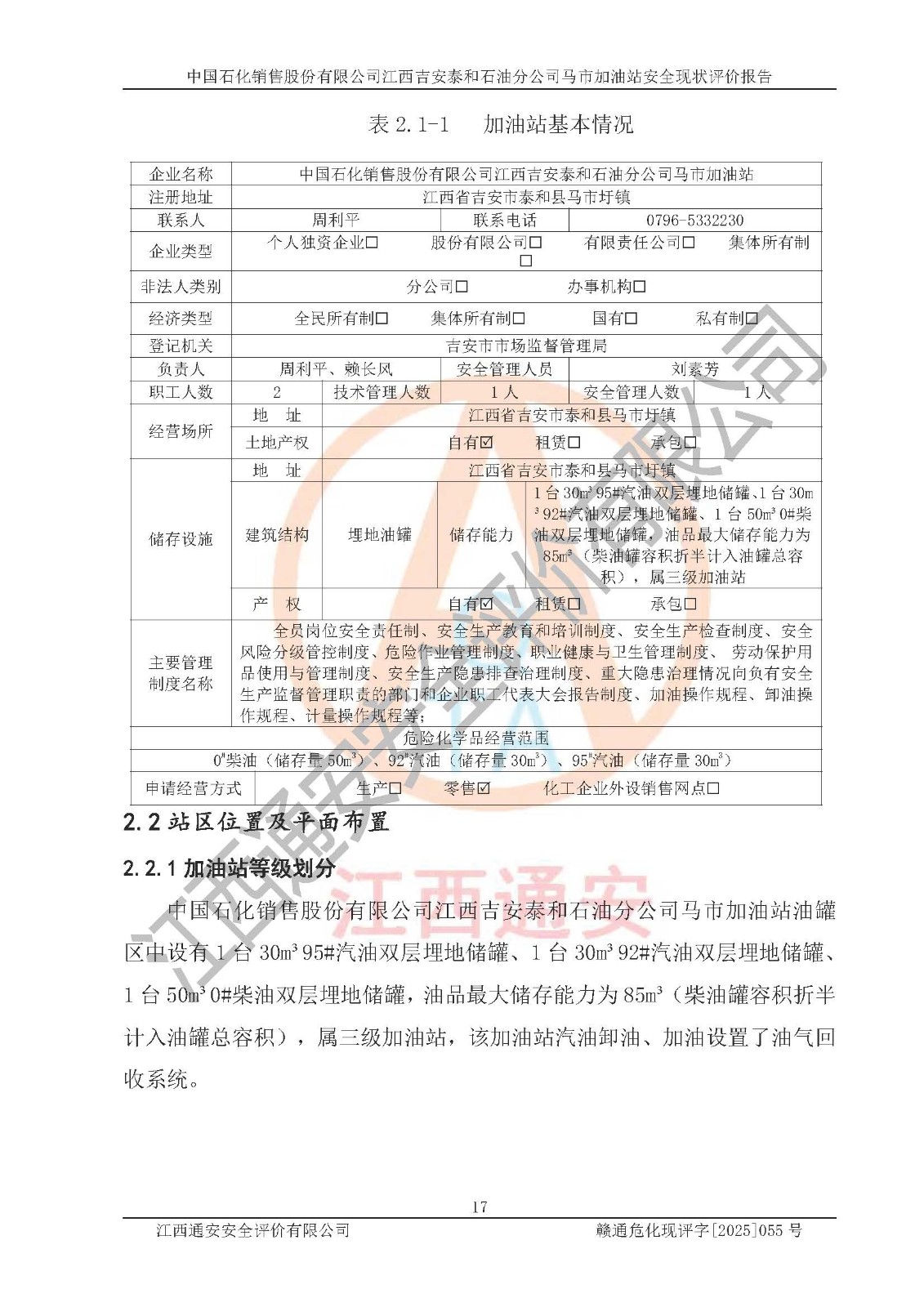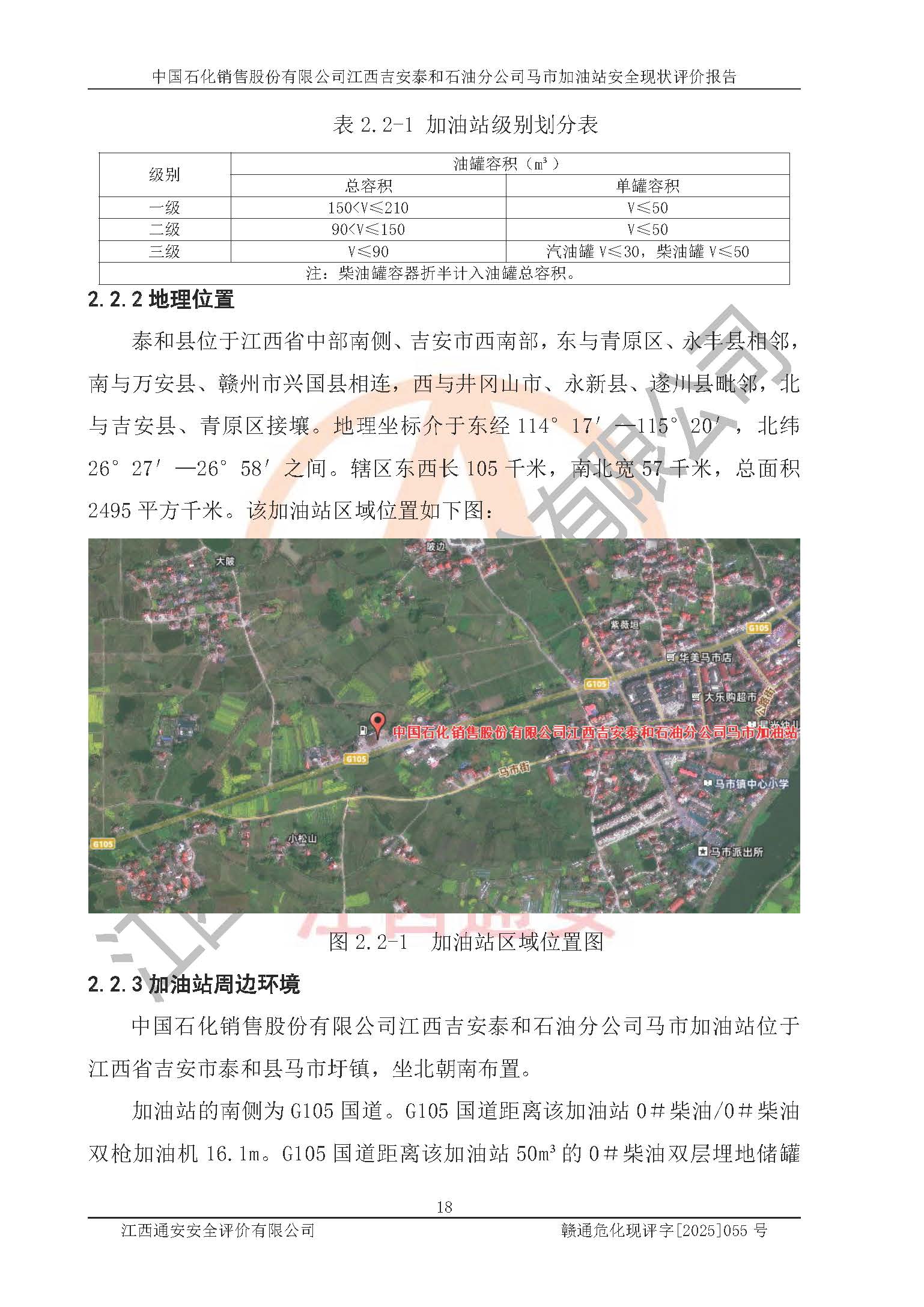 項(xiàng)目名稱(chēng) | 中國(guó)石化銷(xiāo)售股份有限公司江西吉安泰和石油分公司馬市加油站 安全現(xiàn)狀評(píng)價(jià)報(bào)告 | ||||