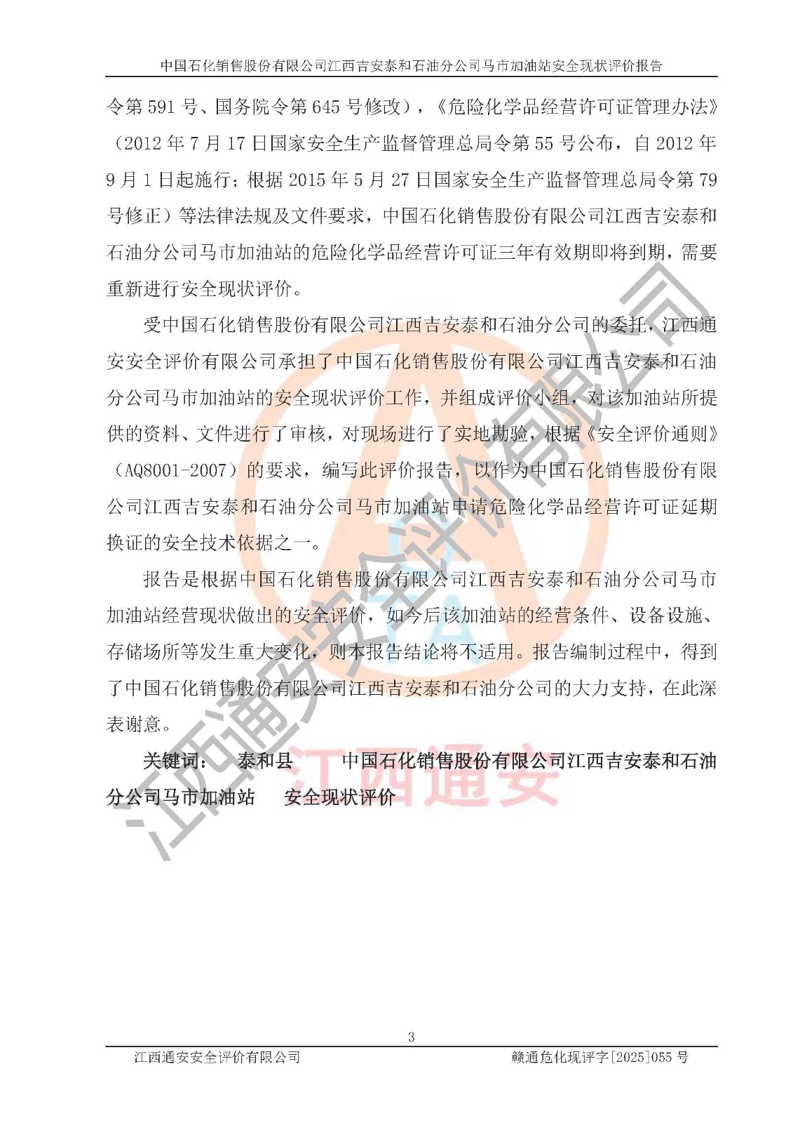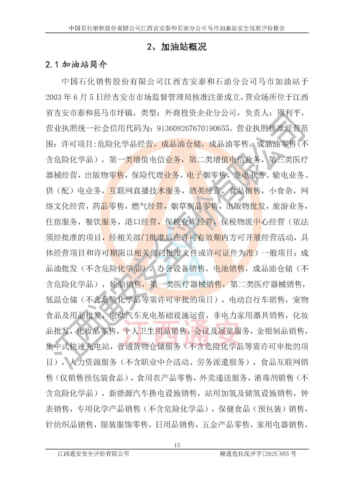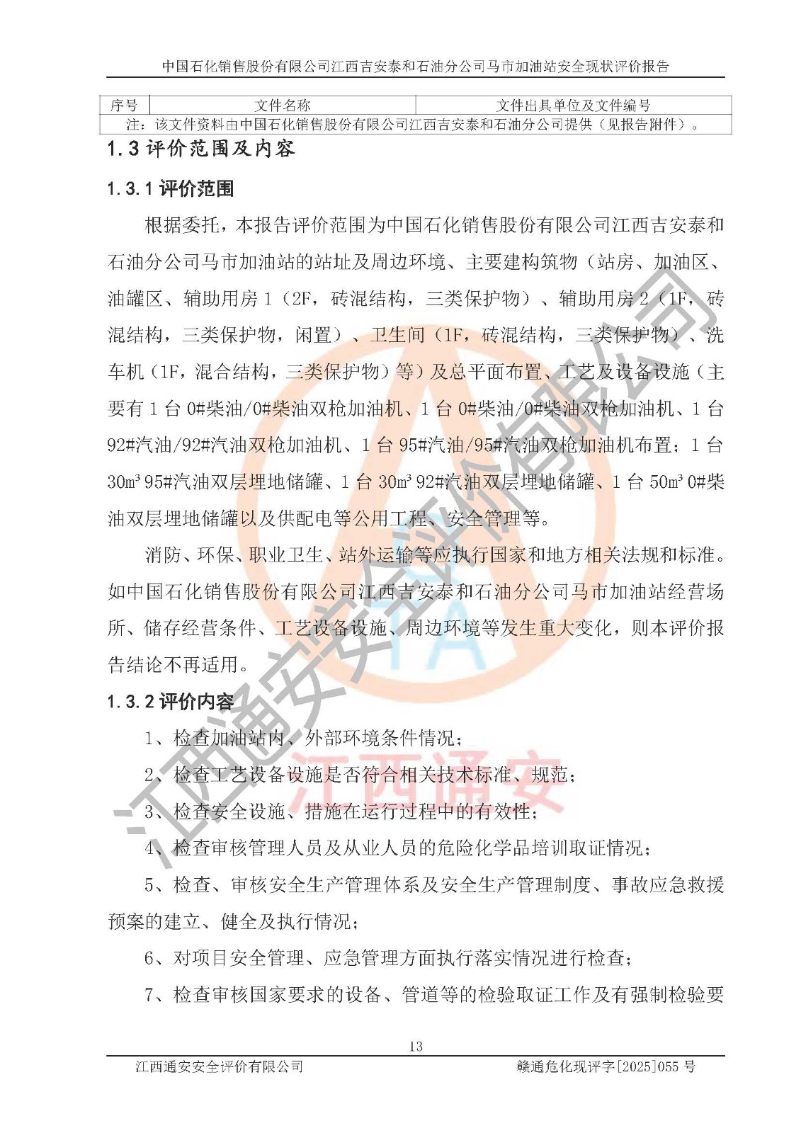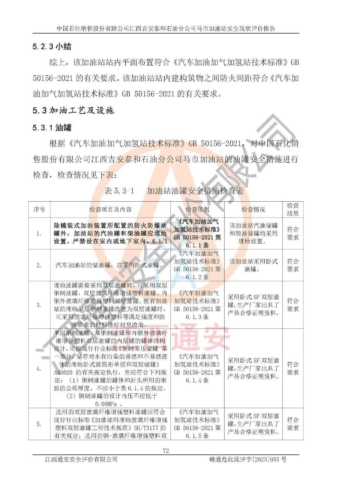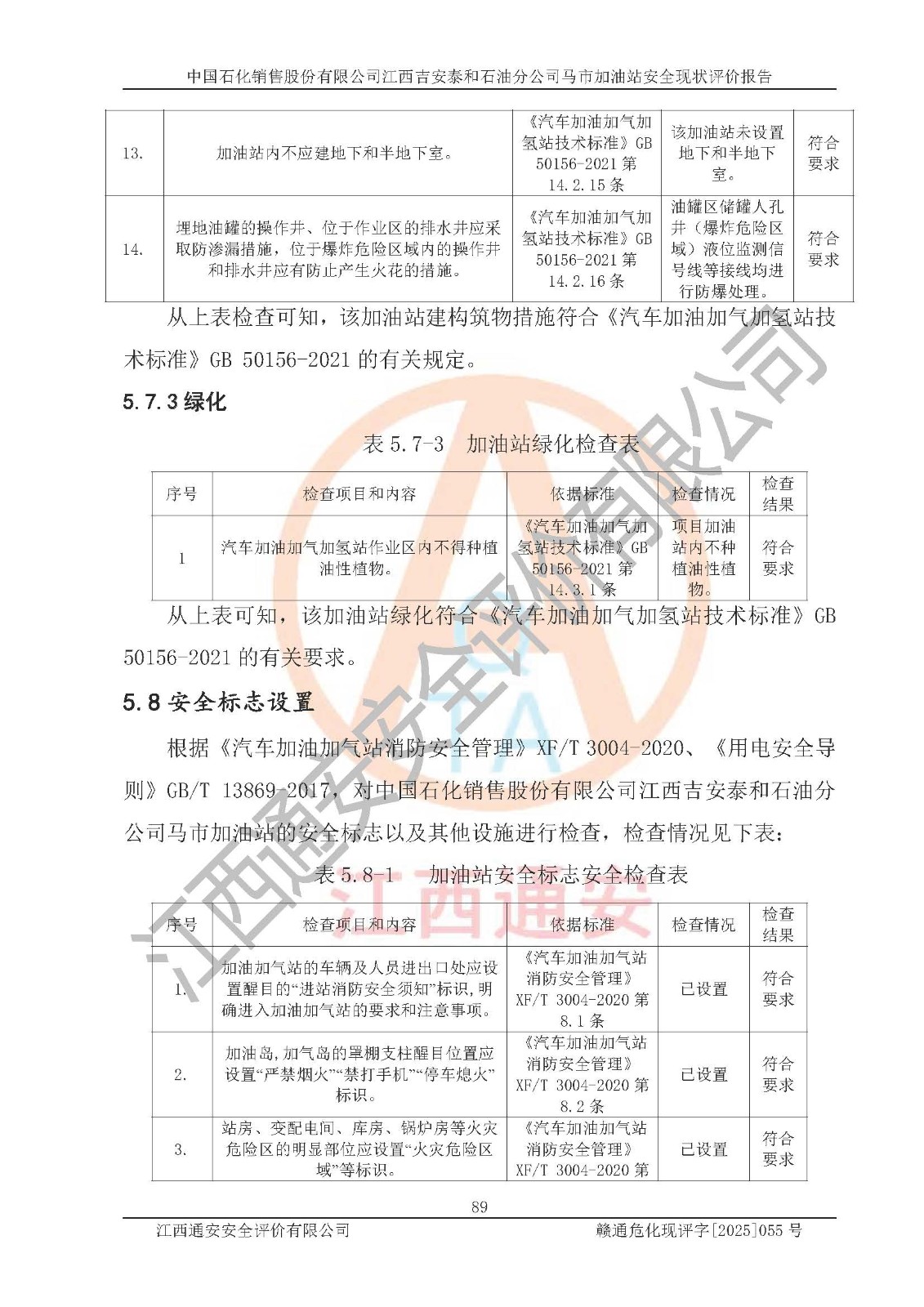 項(xiàng)目名稱(chēng) | 中國(guó)石化銷(xiāo)售股份有限公司江西吉安泰和石油分公司馬市加油站 安全現(xiàn)狀評(píng)價(jià)報(bào)告 | ||||