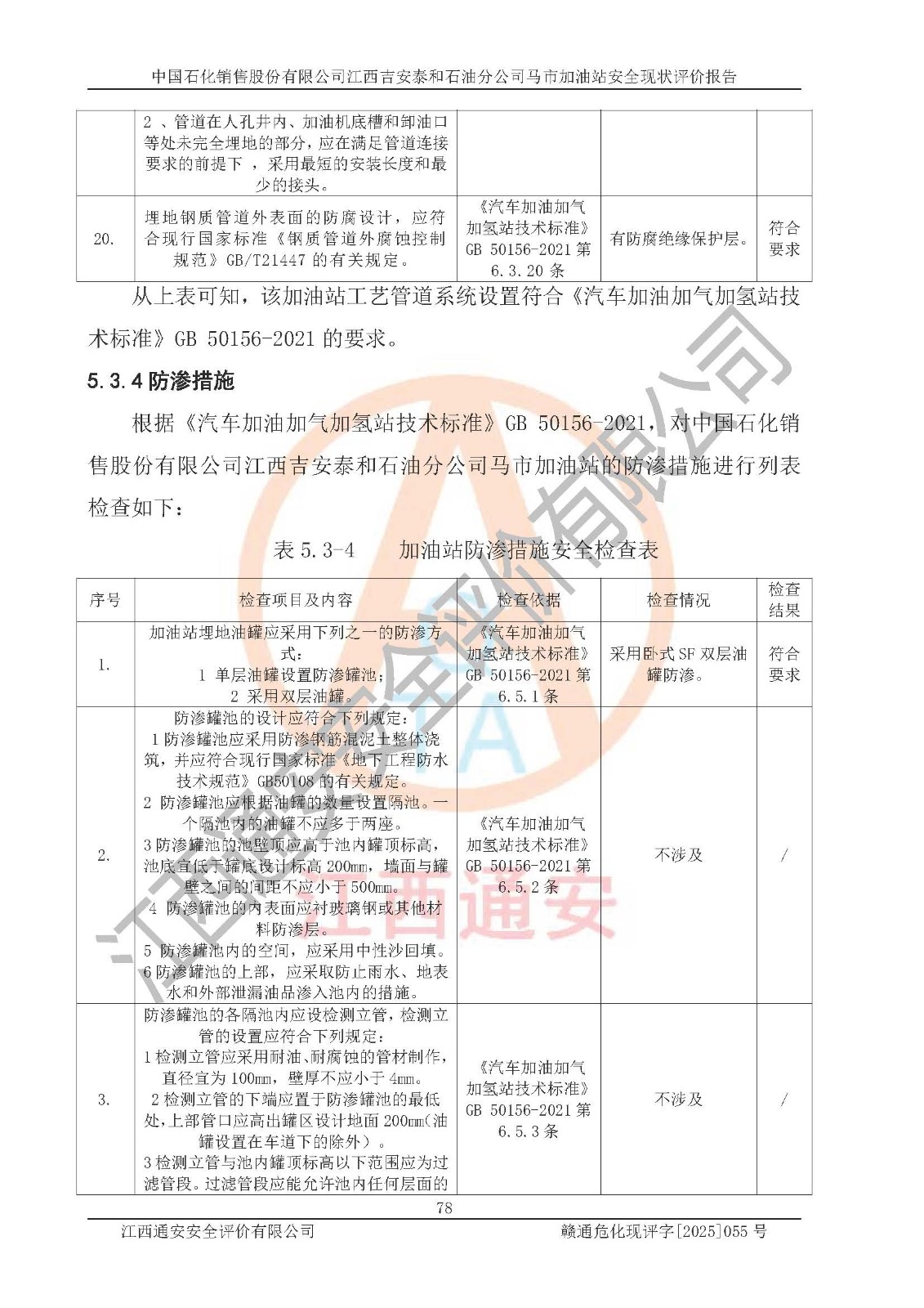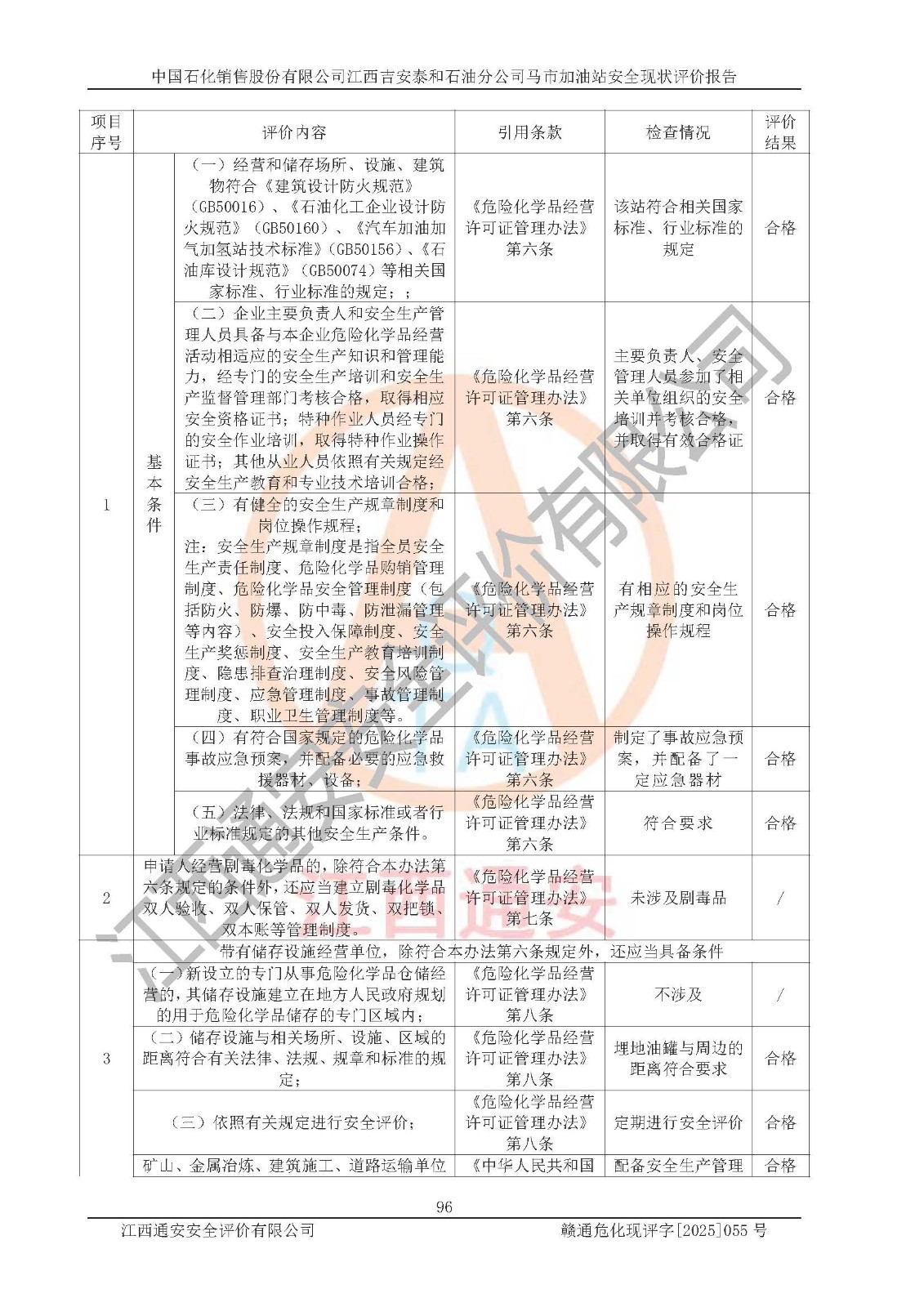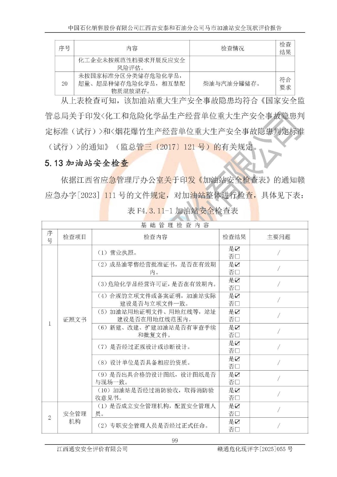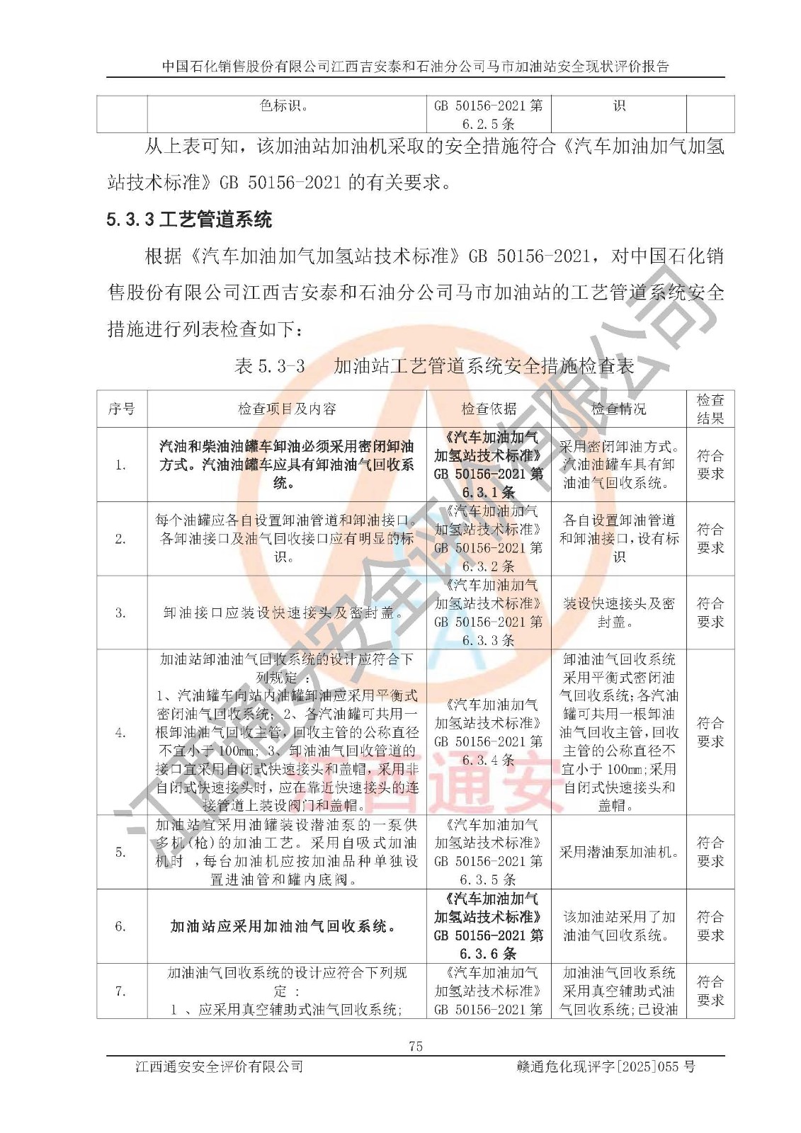 項(xiàng)目名稱(chēng) | 中國(guó)石化銷(xiāo)售股份有限公司江西吉安泰和石油分公司馬市加油站 安全現(xiàn)狀評(píng)價(jià)報(bào)告 | ||||