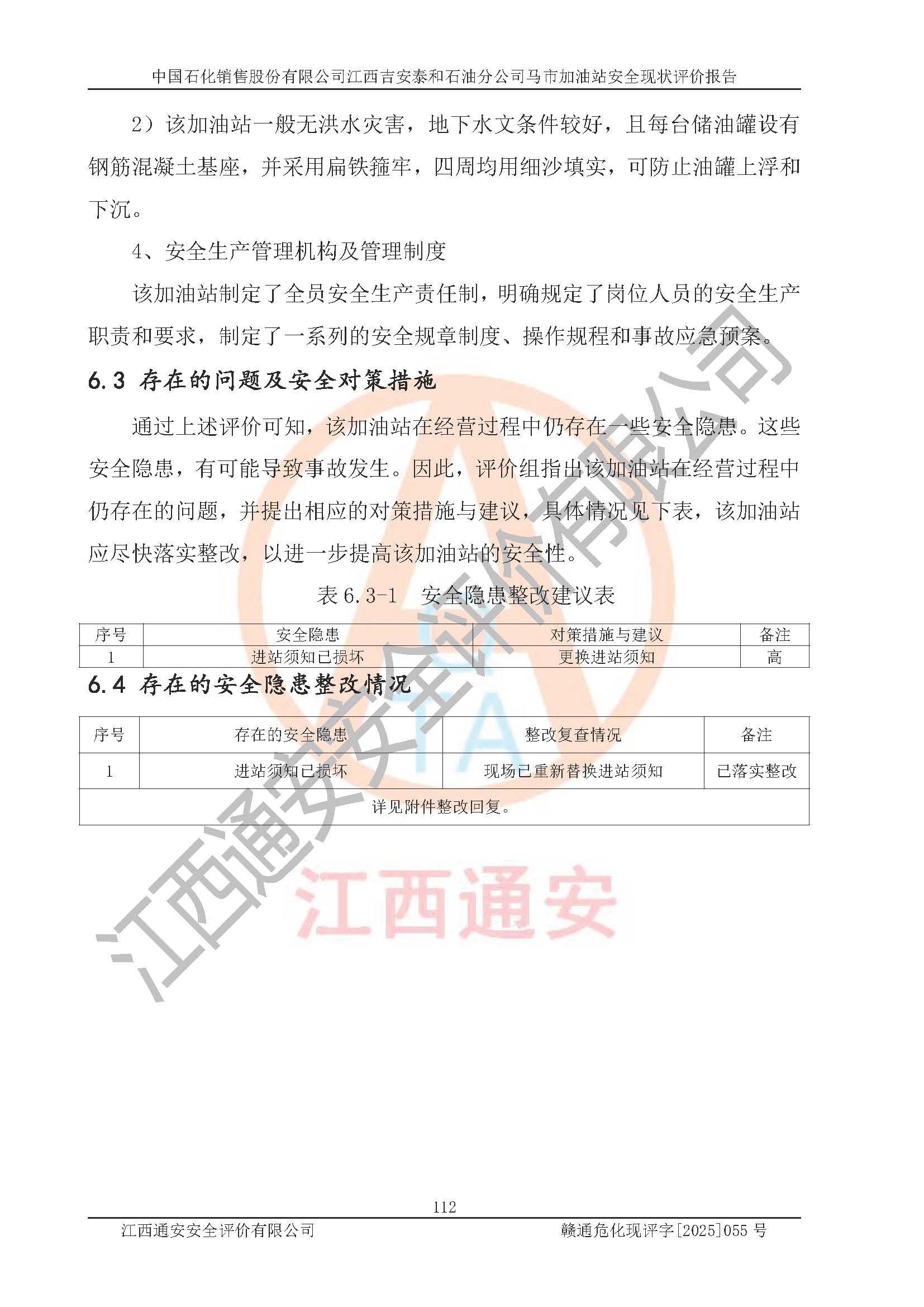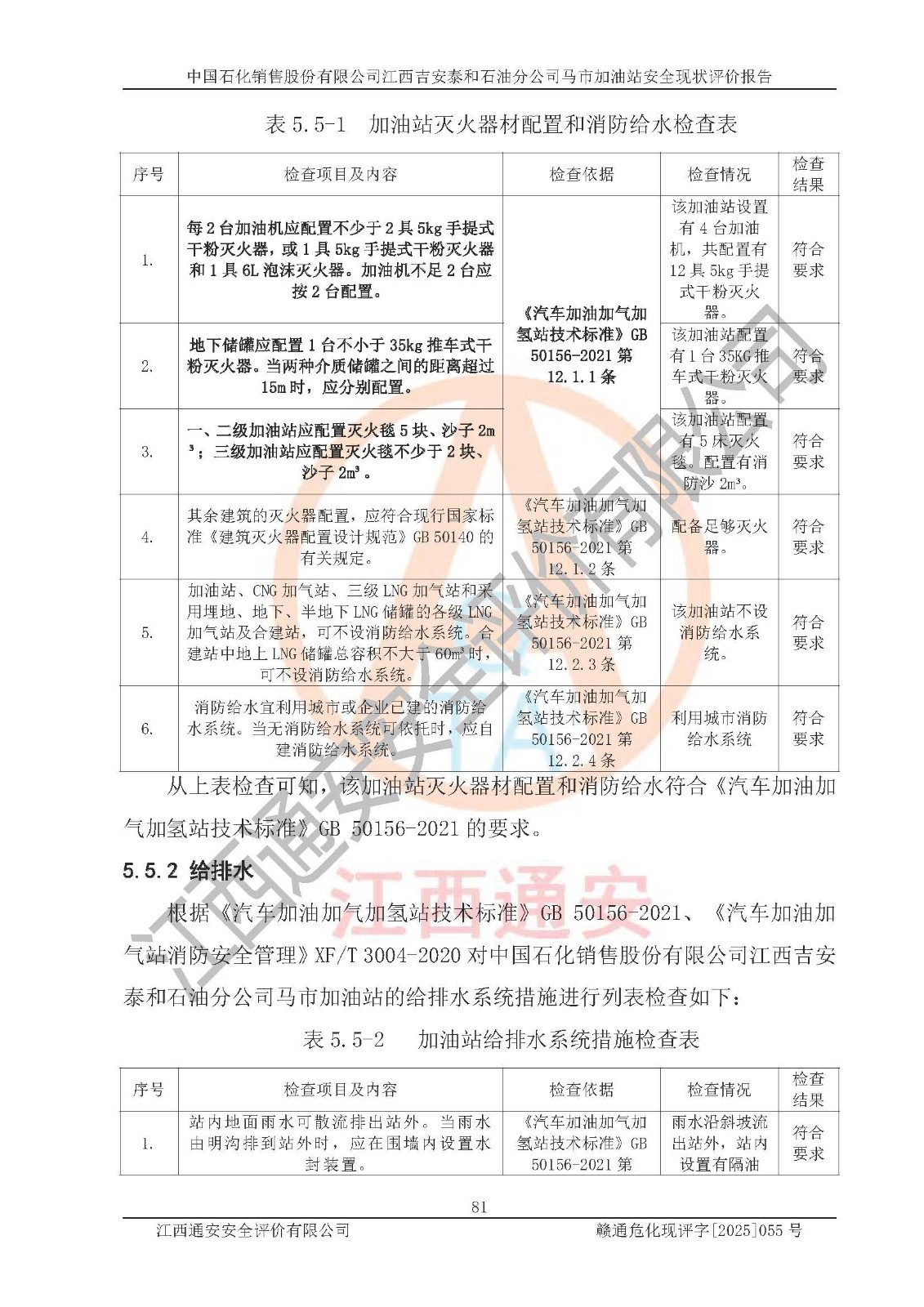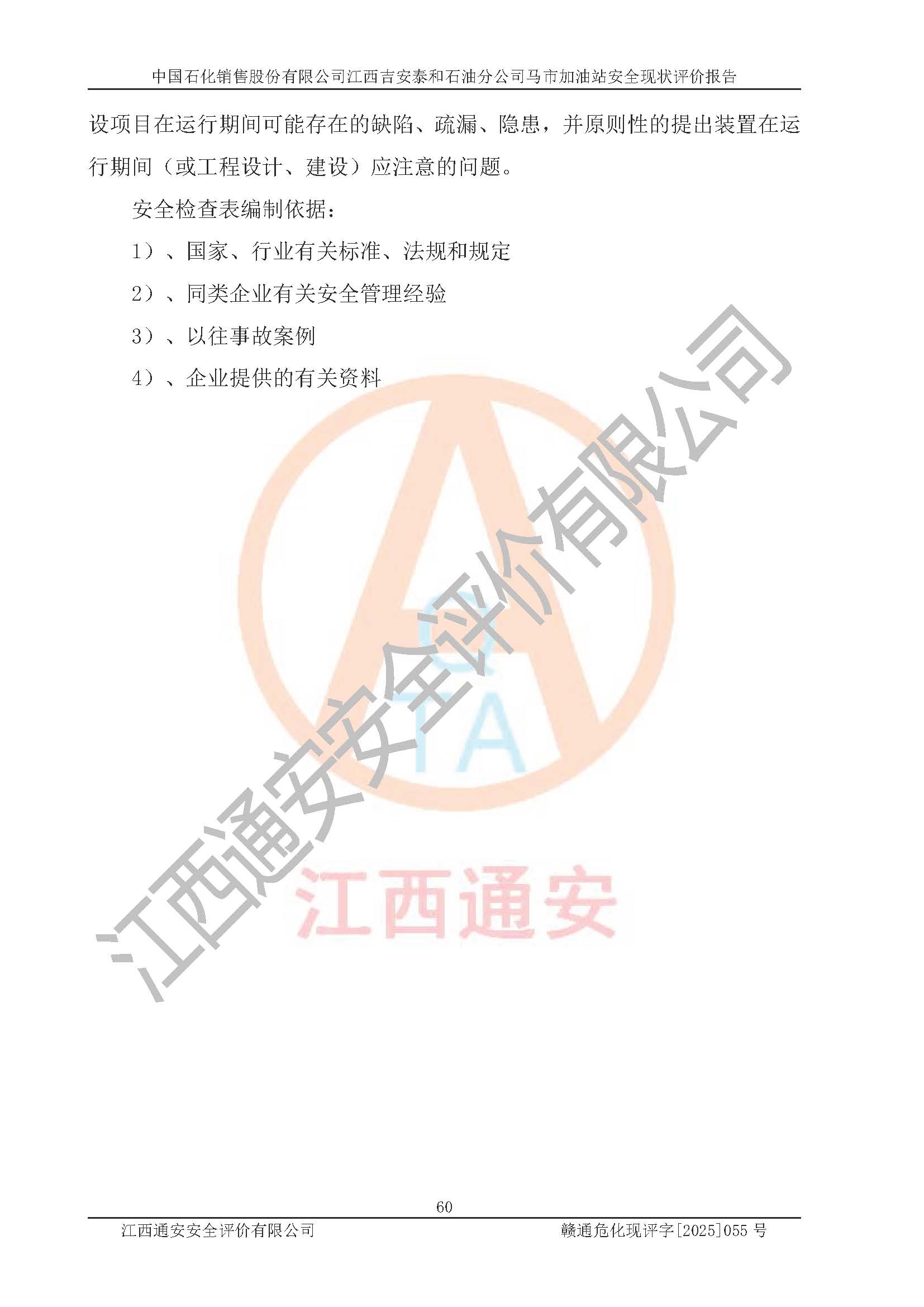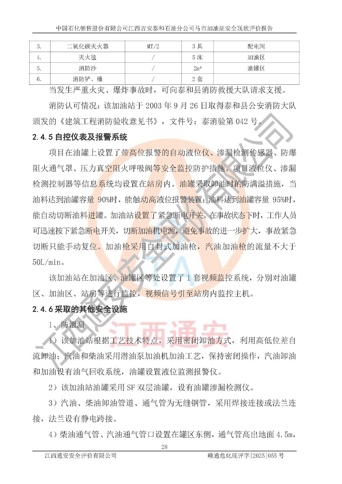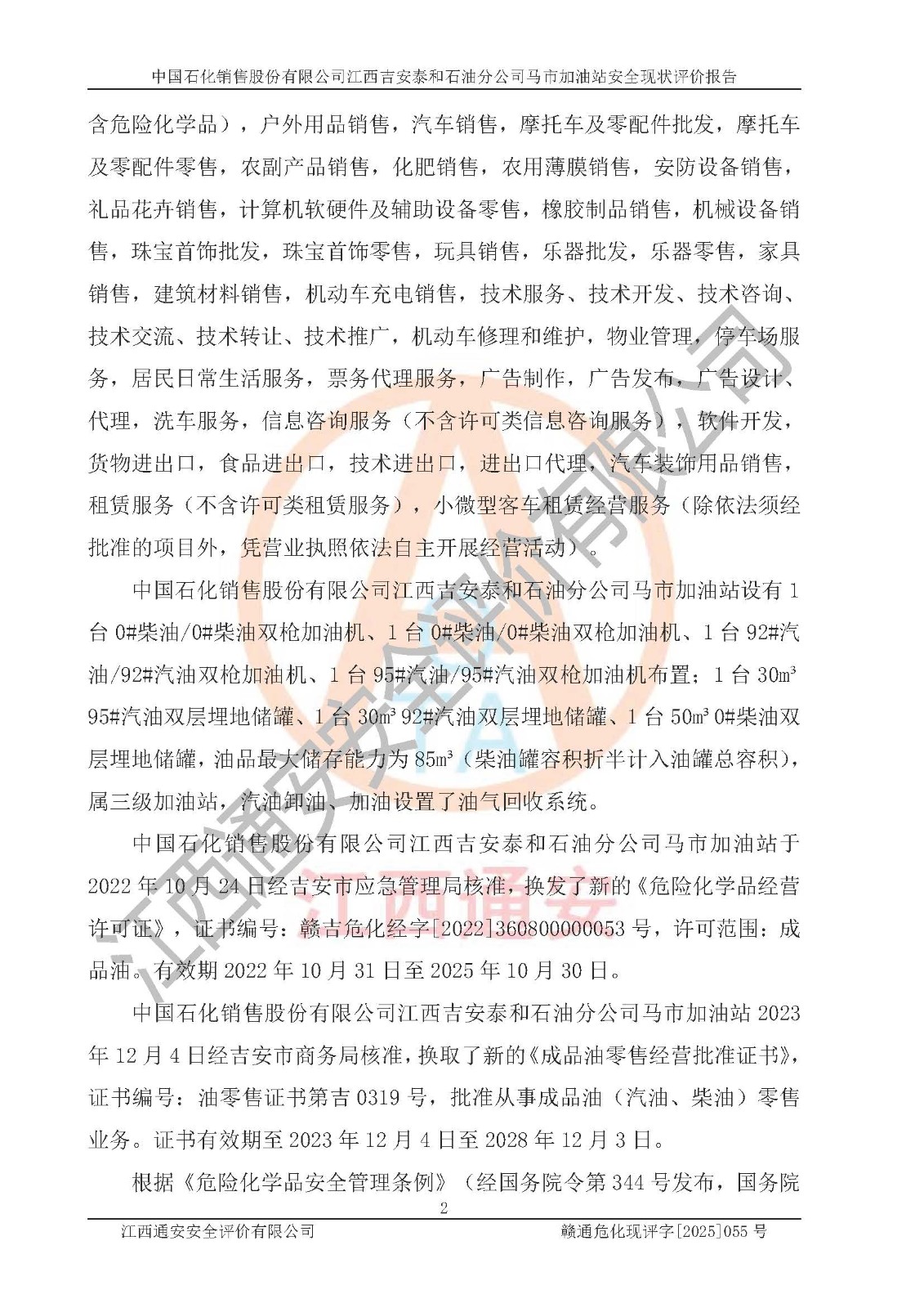 項(xiàng)目名稱(chēng) | 中國(guó)石化銷(xiāo)售股份有限公司江西吉安泰和石油分公司馬市加油站 安全現(xiàn)狀評(píng)價(jià)報(bào)告 | ||||