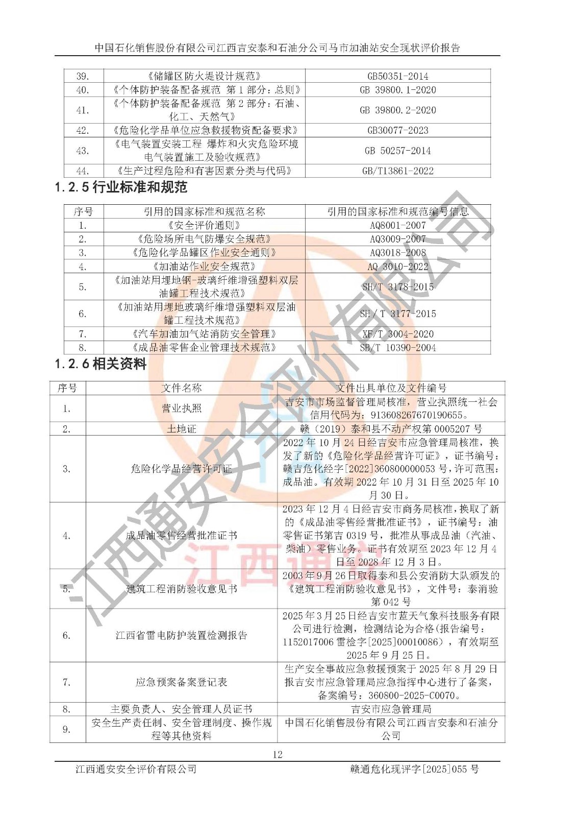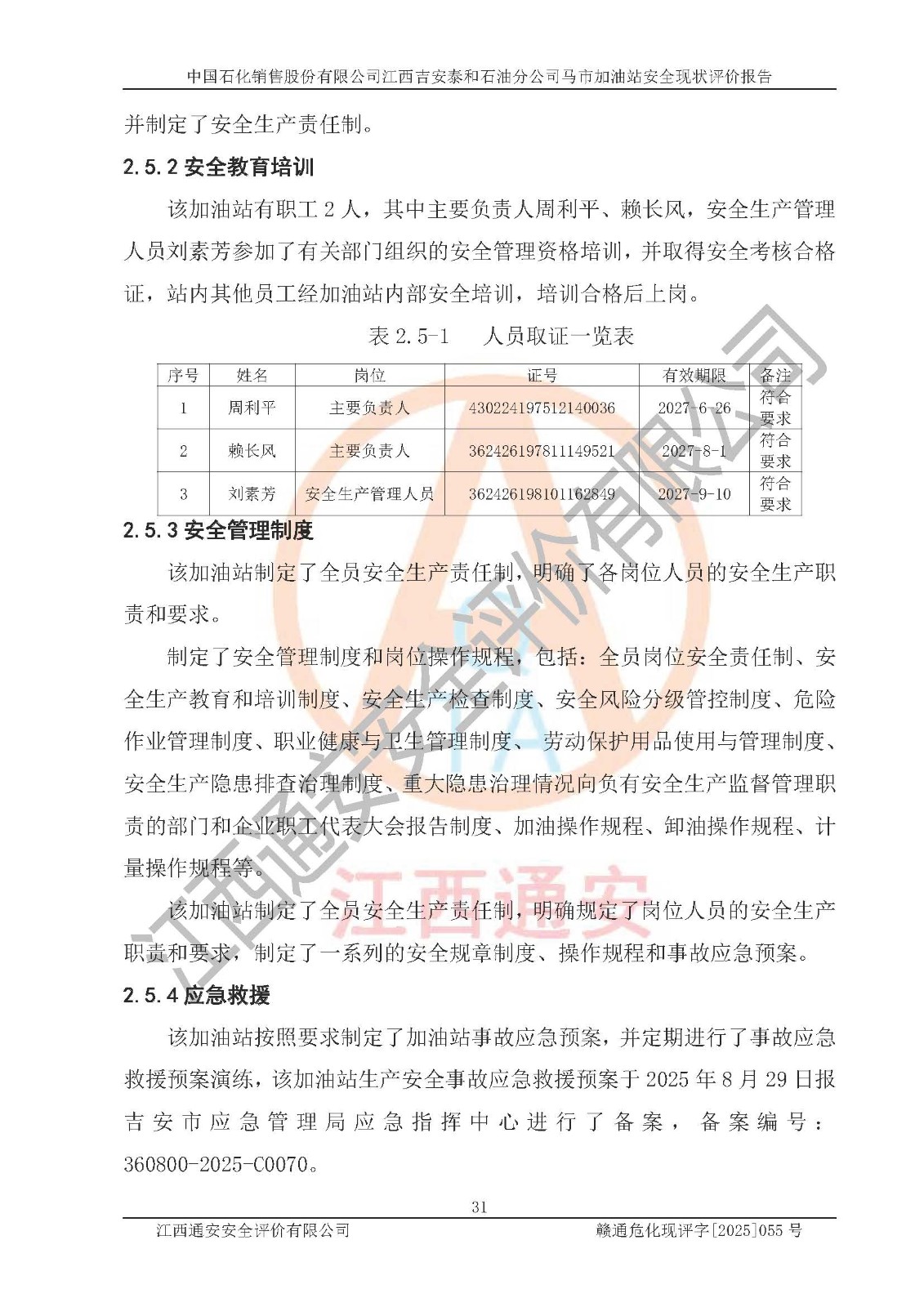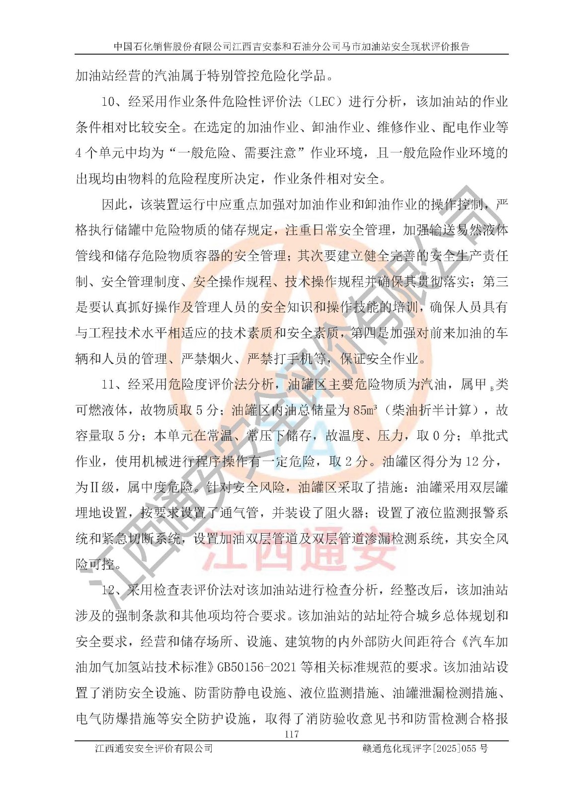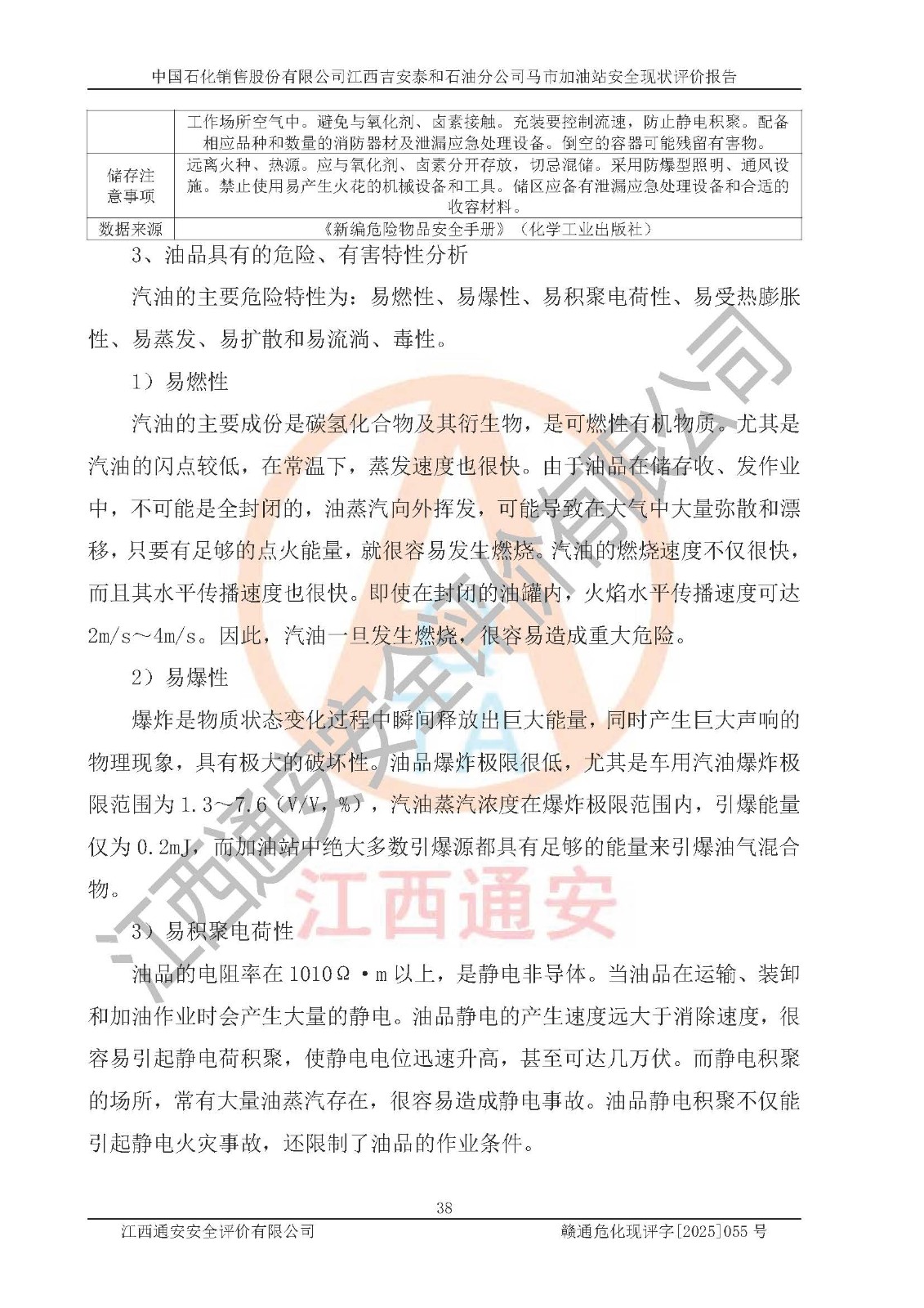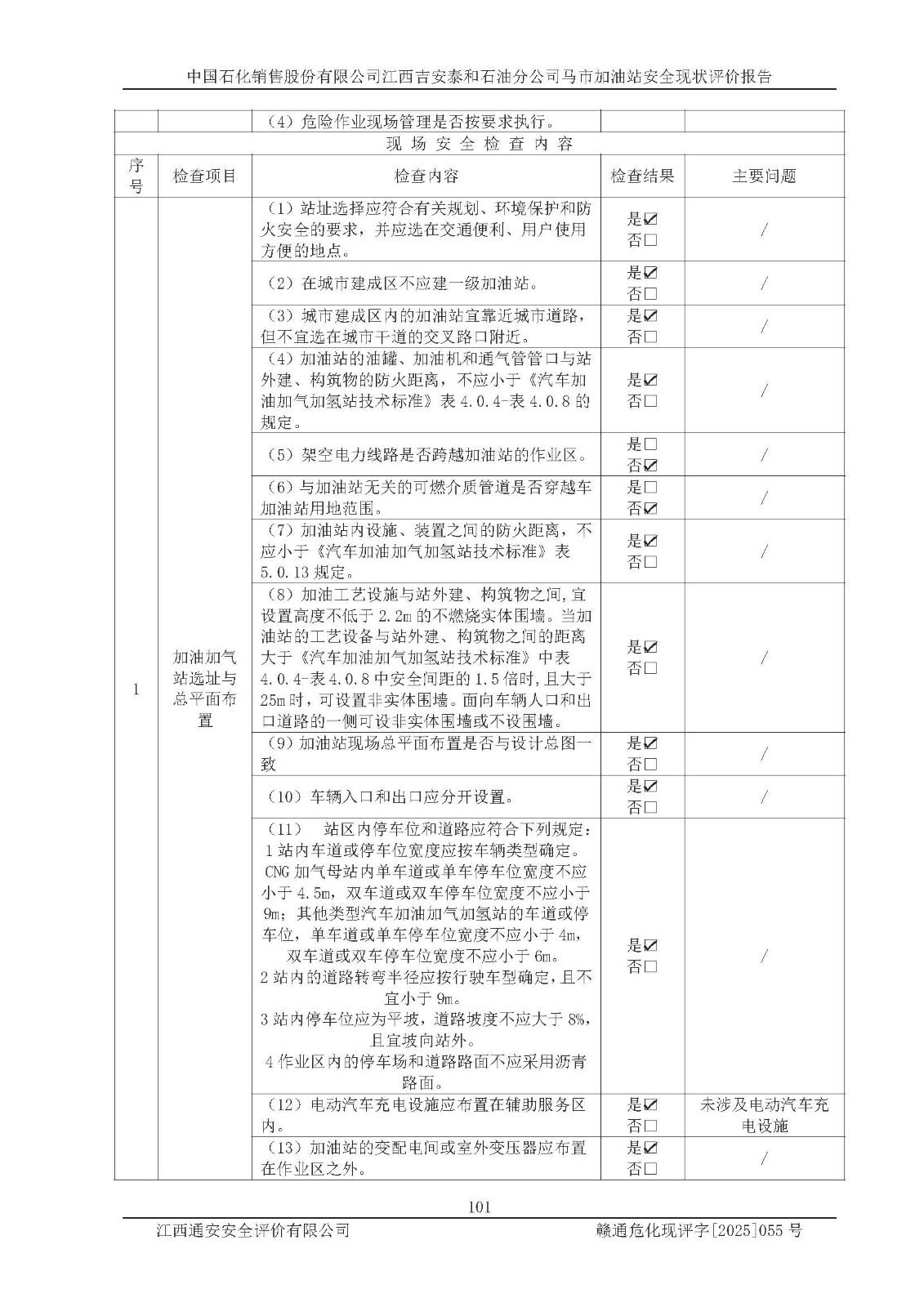 項(xiàng)目名稱(chēng) | 中國(guó)石化銷(xiāo)售股份有限公司江西吉安泰和石油分公司馬市加油站 安全現(xiàn)狀評(píng)價(jià)報(bào)告 | ||||