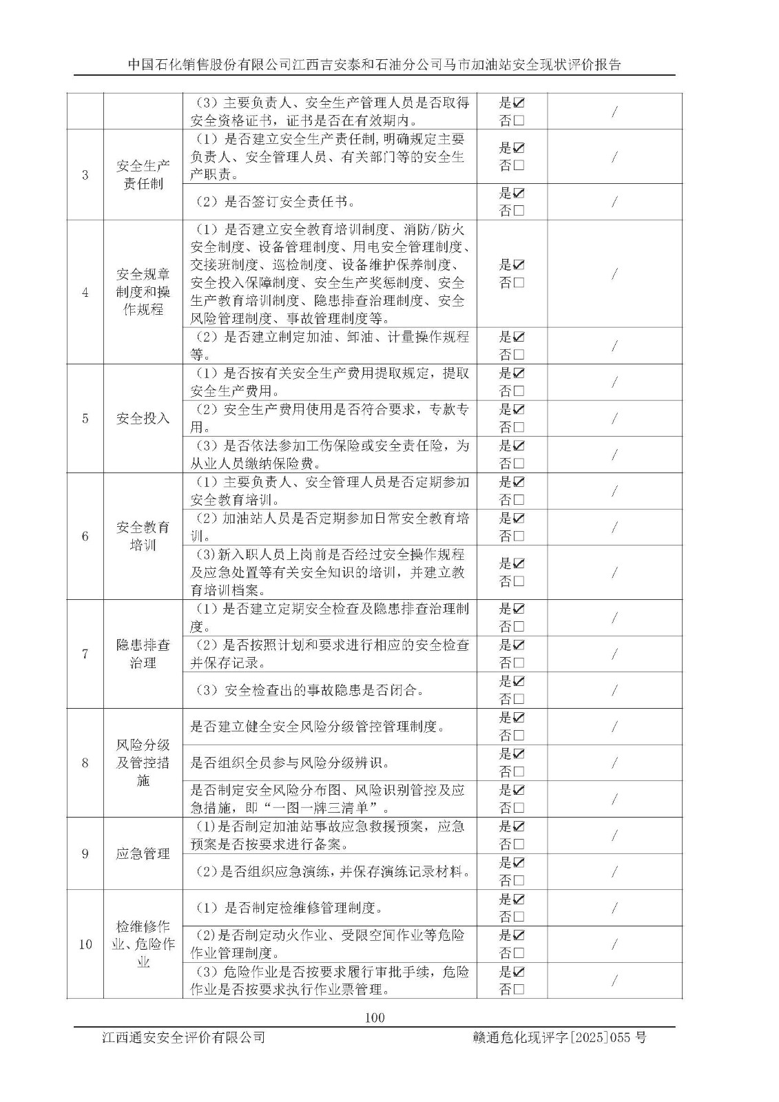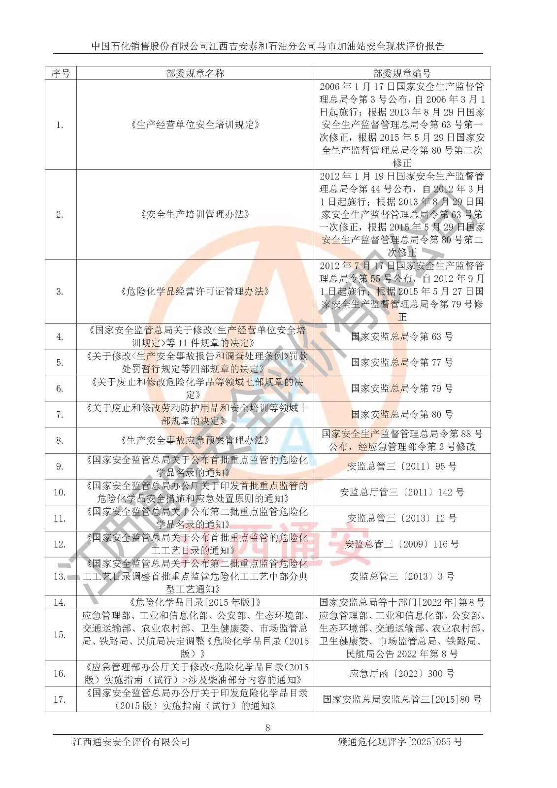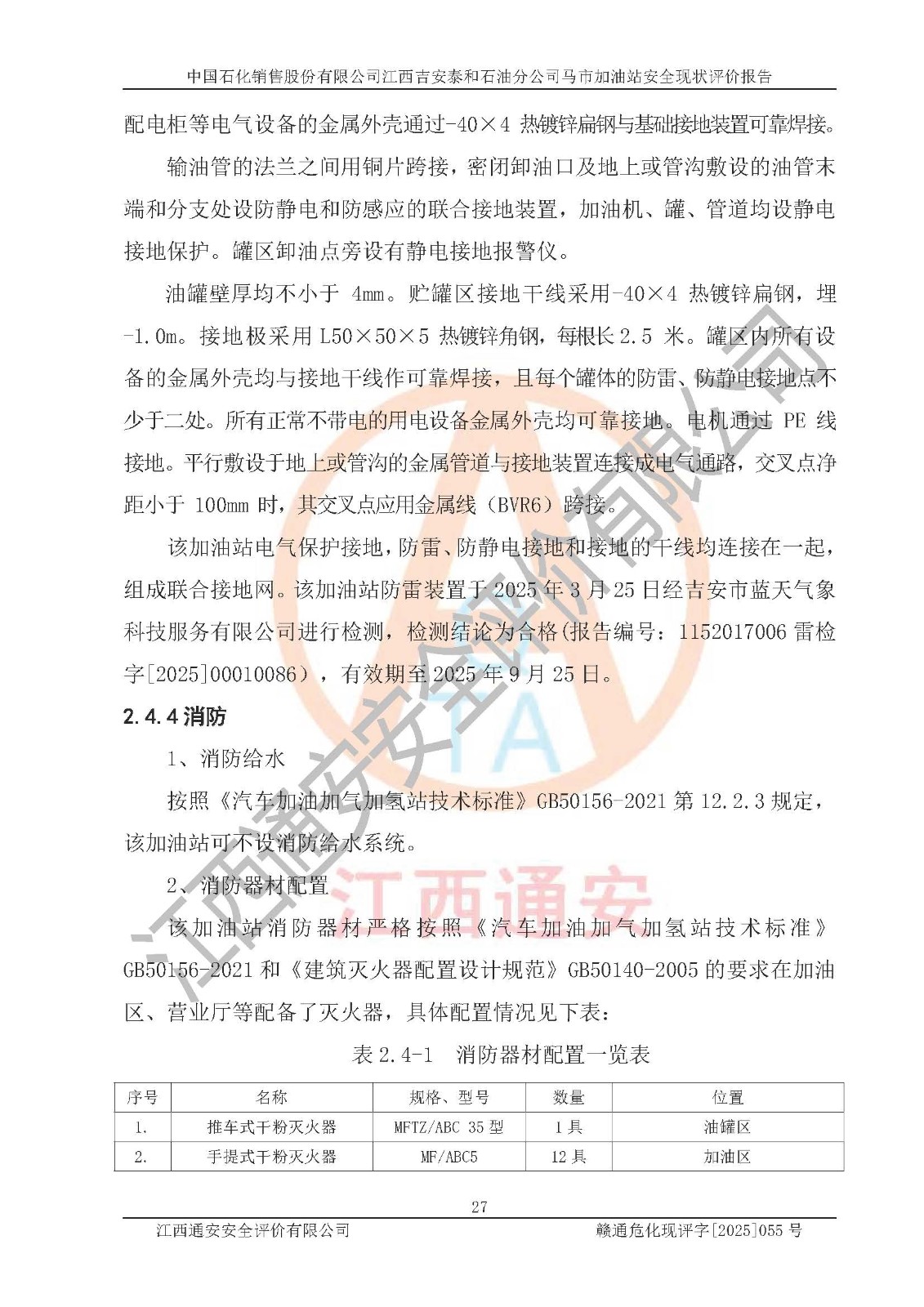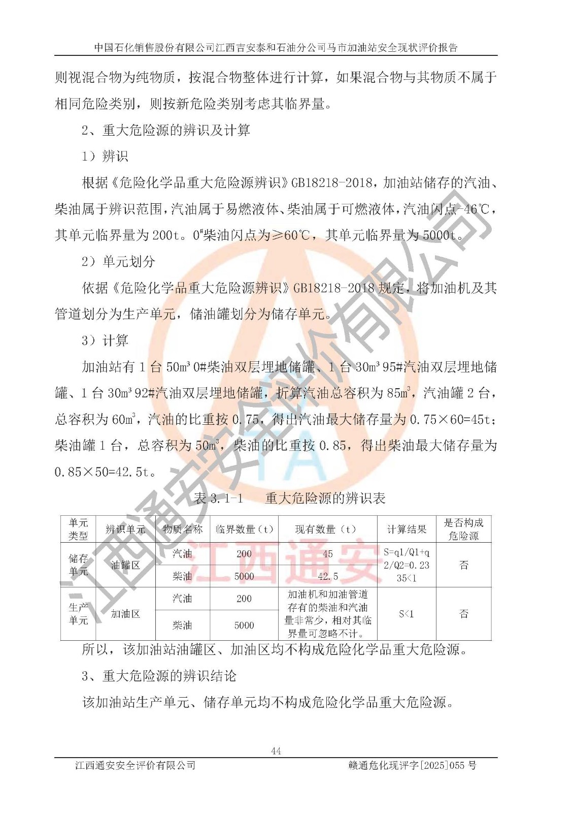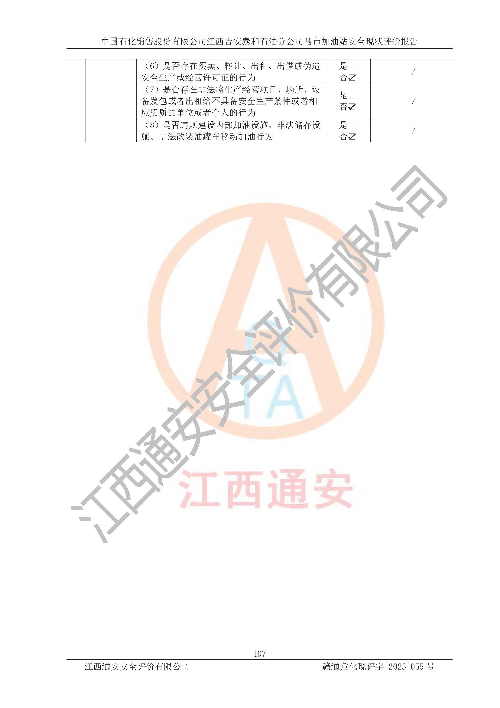 項(xiàng)目名稱(chēng) | 中國(guó)石化銷(xiāo)售股份有限公司江西吉安泰和石油分公司馬市加油站 安全現(xiàn)狀評(píng)價(jià)報(bào)告 | ||||