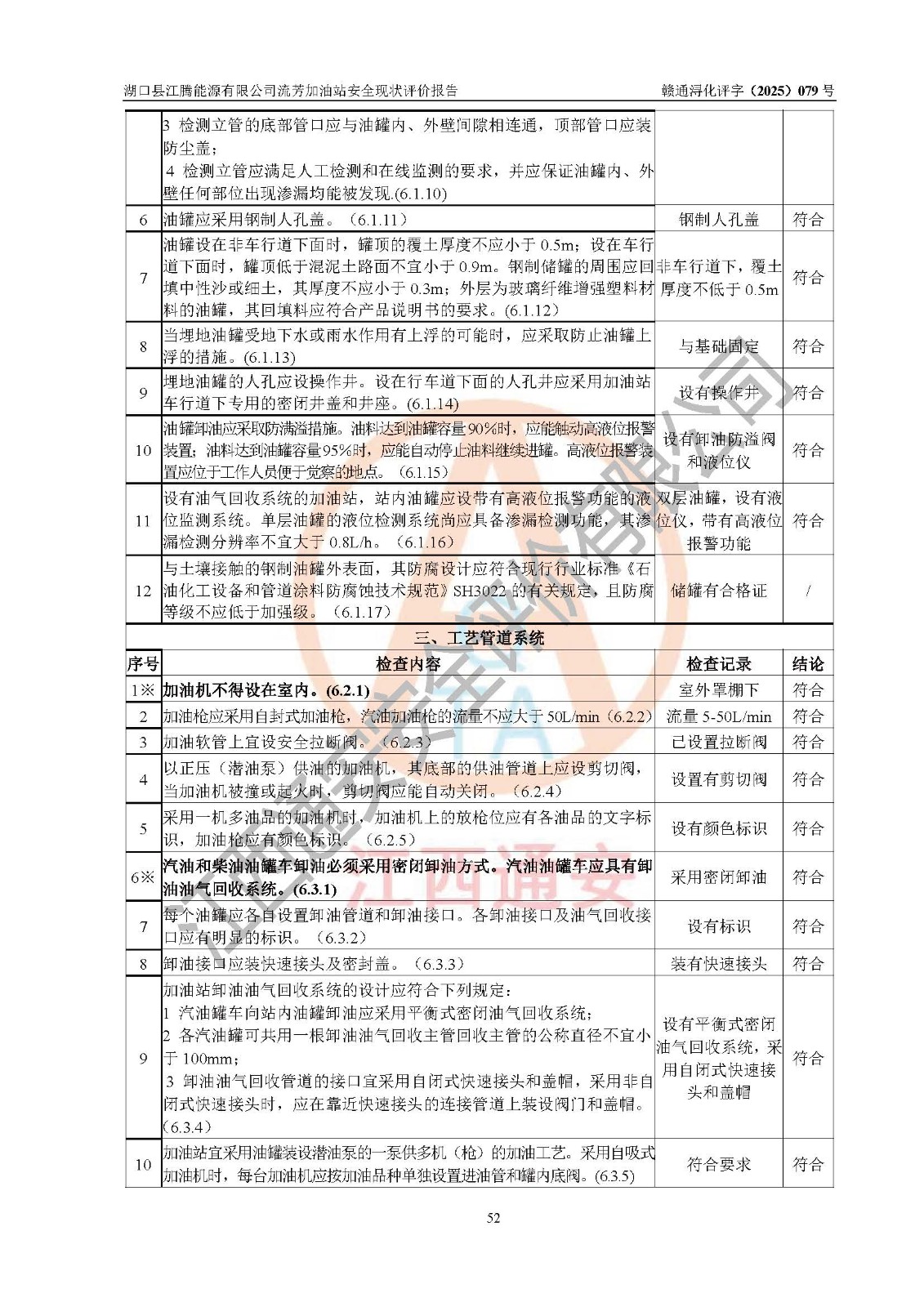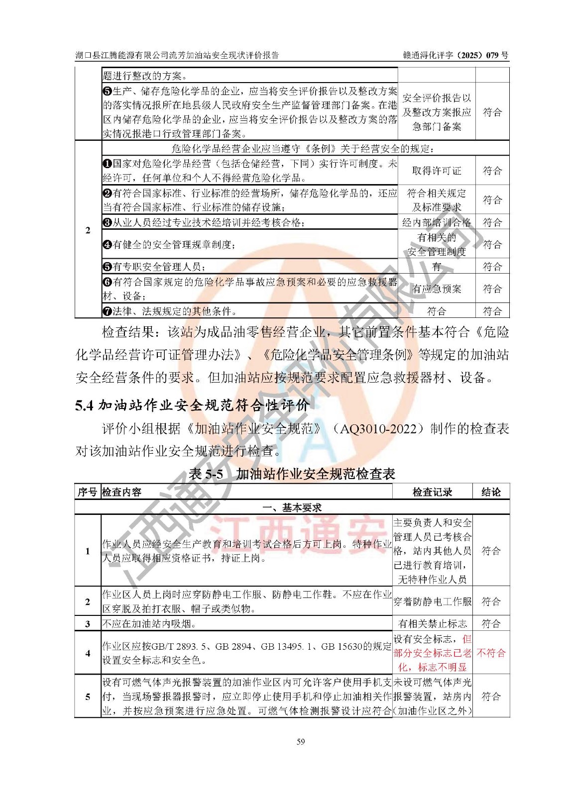 評(píng)價(jià)結(jié)論 | 湖口縣江騰能源有限公司流芳加油站涉及的安全條件、安全經(jīng)營(yíng)條件、安全生產(chǎn)管理符合《危險(xiǎn)化學(xué)品經(jīng)營(yíng)許可證管理辦法》、《汽車(chē)加油加氣加氫站技術(shù)標(biāo)準(zhǔn)》等**有關(guān)法規(guī)、標(biāo)準(zhǔn)、規(guī)范要求,能滿足危險(xiǎn)化學(xué)品經(jīng)營(yíng)安全條件。 | |||